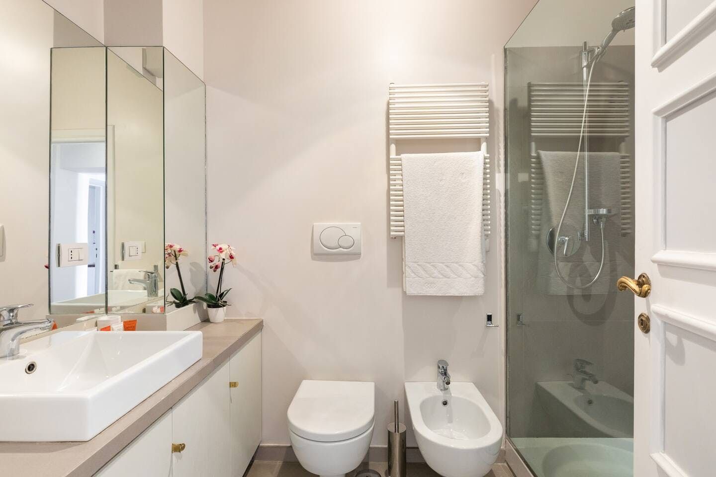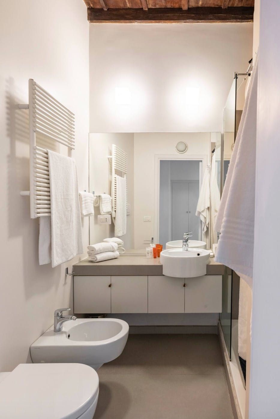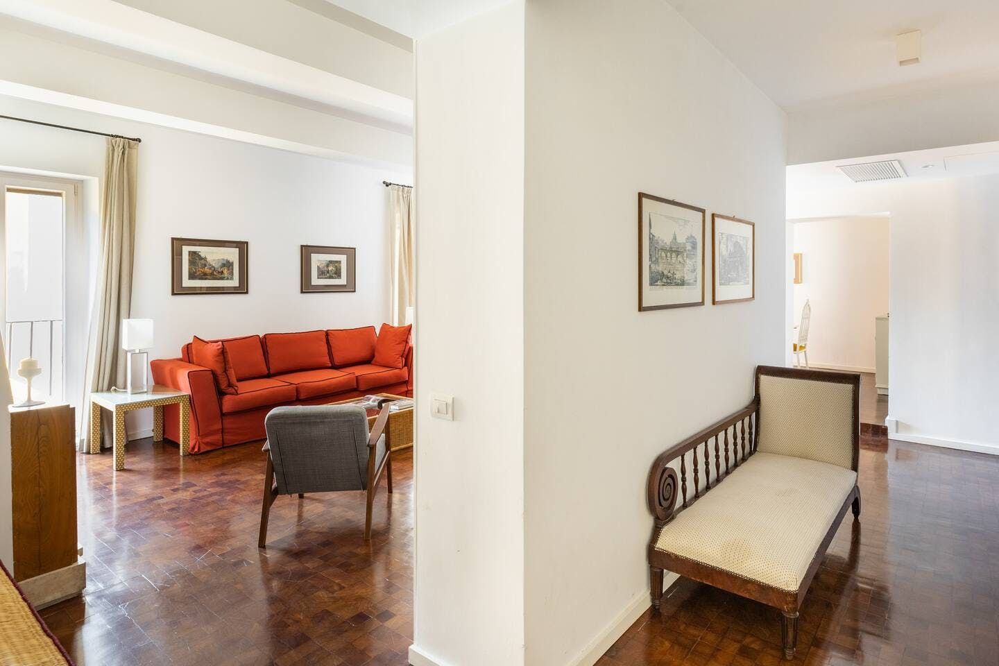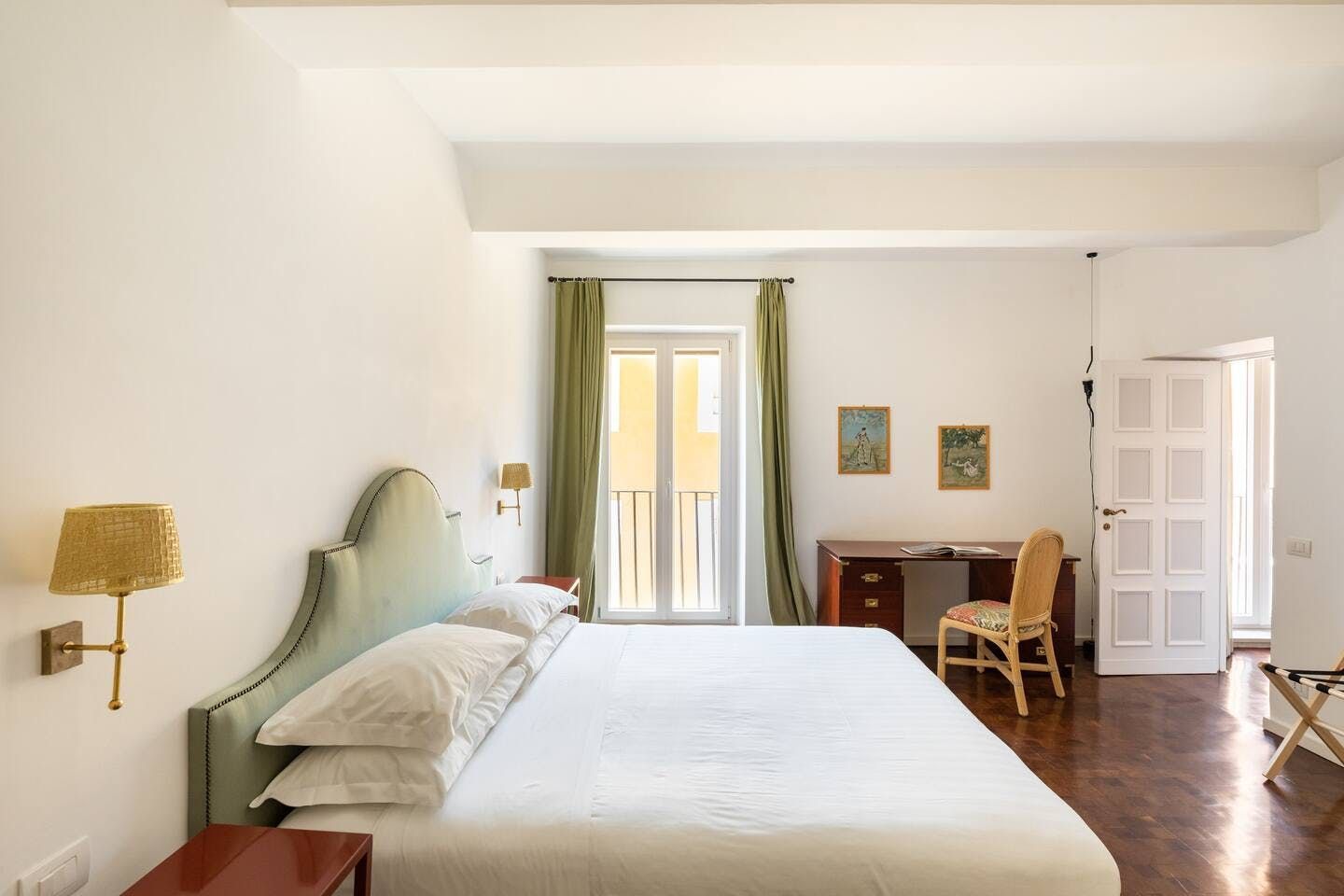Horse-Drawn feels like a real home. It’s bright and welcoming, and as it’s been designed as a place to live, rather than one to rent, you don’t get the glitches that sometimes pop up in the latter. It also means that the kitchen is really well equipped – it's easy enough to whip up a decent meal to be enjoyed as a group in the charming, light-filled dining room. There are a few signs of age on the walls and floor, but these don’t detract in any way from the overall environment. In fact, we think that's what makes this 17th-century home – take in the original features from the get-go. Whether you're enjoying a good book by the fireplace or eating lunch under the exposed beams, you'll feel immersed in the heart of the world's most ancient city. We love how the pops of purple and green, abstract artwork and book-filled shelves make this spot so cosy and inviting after a day spent sightseeing. With the Castel Sant'Angelo and Piazza Navona right around the corner, as well as Trevi Fountain and the Spanish Steps under a twenty-minute walk away, the delights of Rome are right at your doorstep.