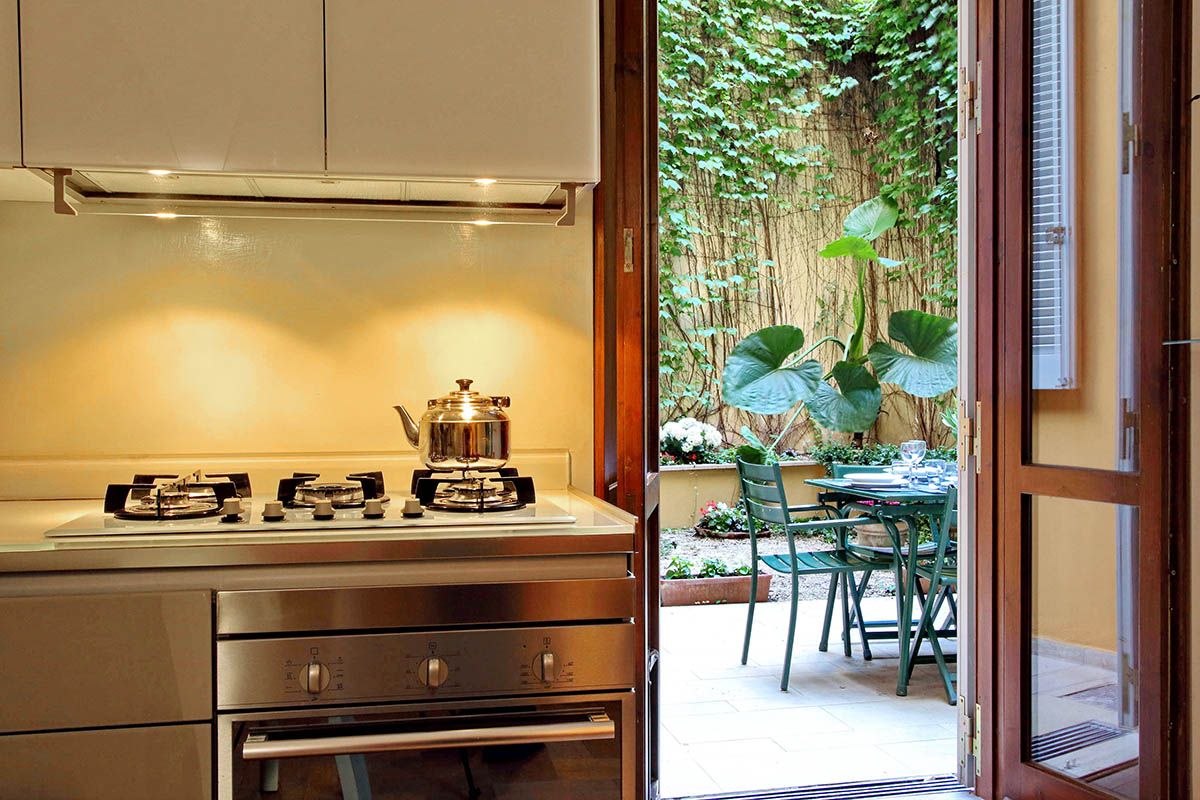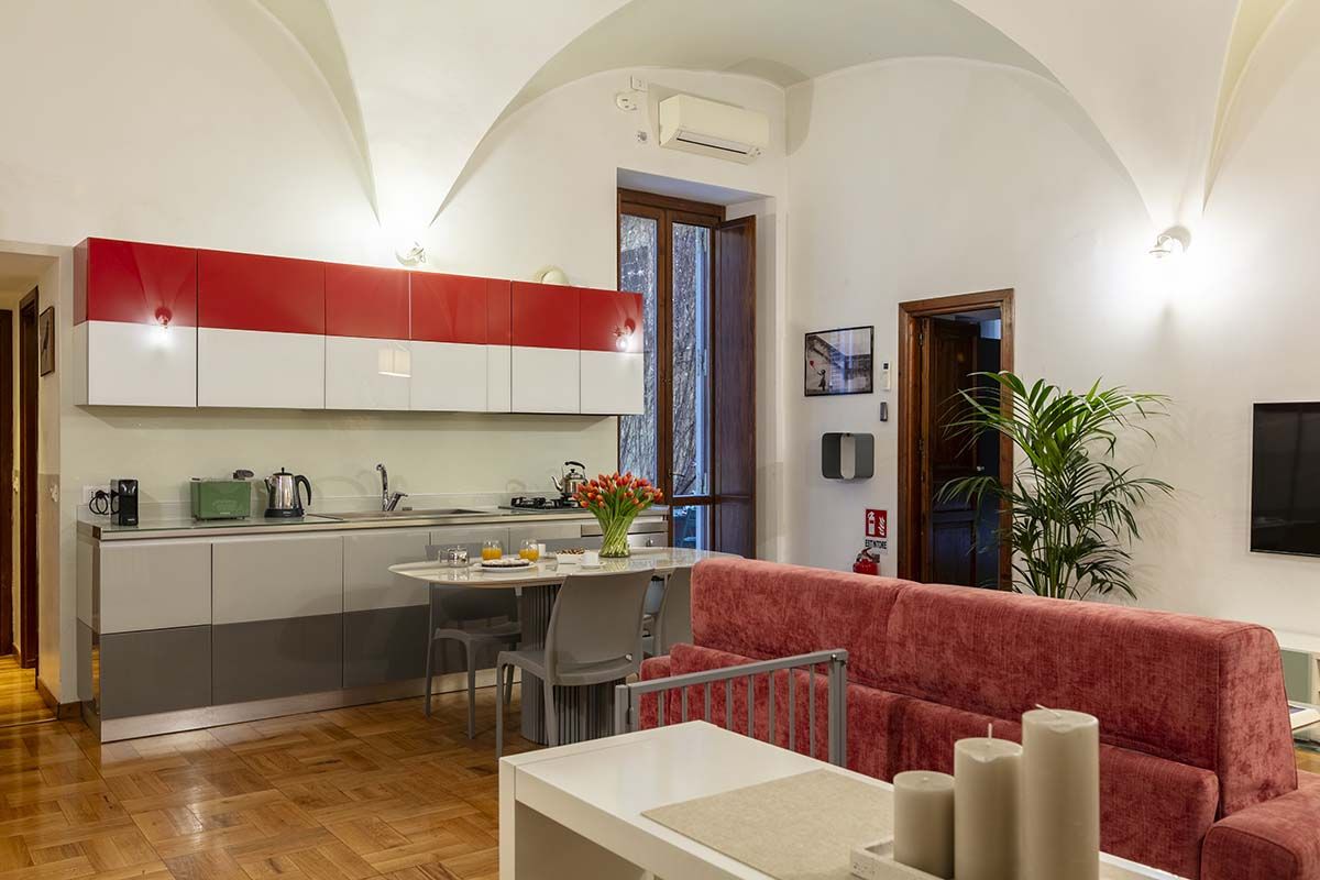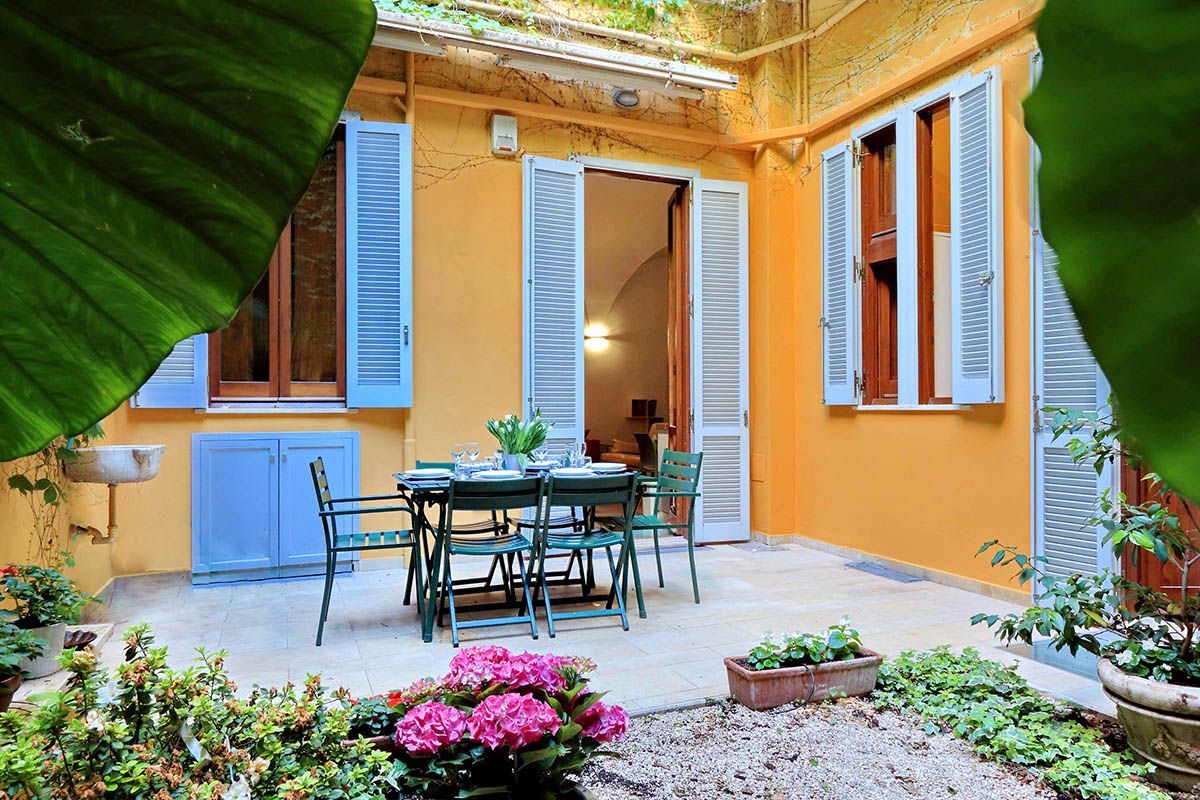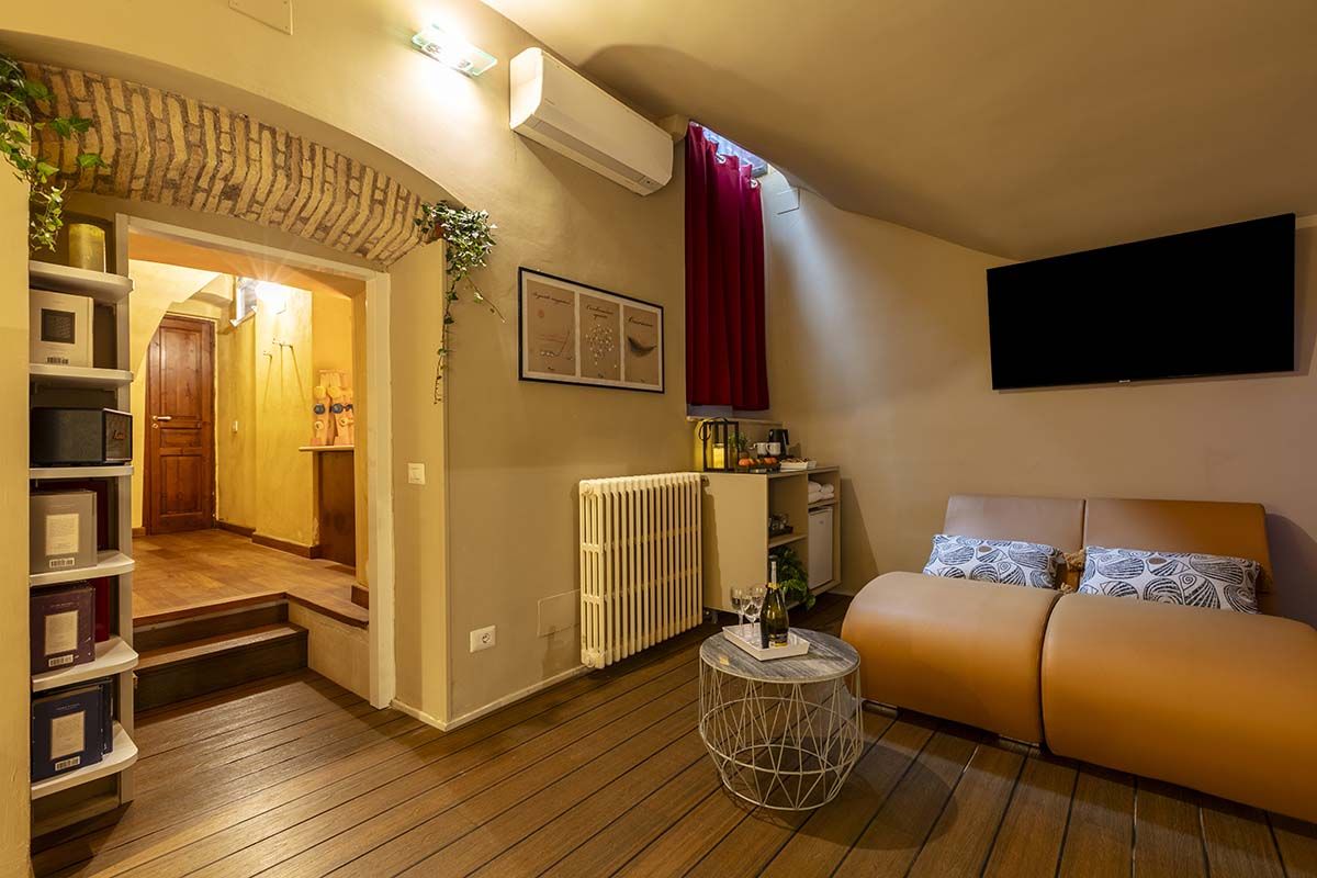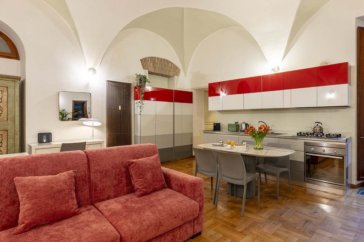 Though this roomy apartment is based in a seventeenth-century palazzo, rustic charm is not the only thing on offer. While there are plenty of characterful touches here (think vaulted ceilings, arched doorways, even an original spiral staircase made of Roman brick), what makes this home stand out are the twenty-first-century updates. We're talking a lofted glass mezzanine, a two-seater sauna in the downstairs bedroom (the perfect way to relax after a busy day exploring Rome), a separate fitness room with a treadmill for squeezing in workouts and a contemporary kitchen that makes cooking a breeze. There's even a shady patio – whether you're sipping espresso in the mornings or enjoying an alfresco dinner in the Italian sunshine, it's an excellent spot to unwind. And you couldn't ask for a better location to take it all in. Piazza Navona is just a three-minute stroll away, and other world-famous landmarks like the Trevi Fountain and the Pantheon are also within walking distance. Plus, you're surrounded by cafes, restaurants and a lively atmosphere, making this apartment a top-notch place to call home.