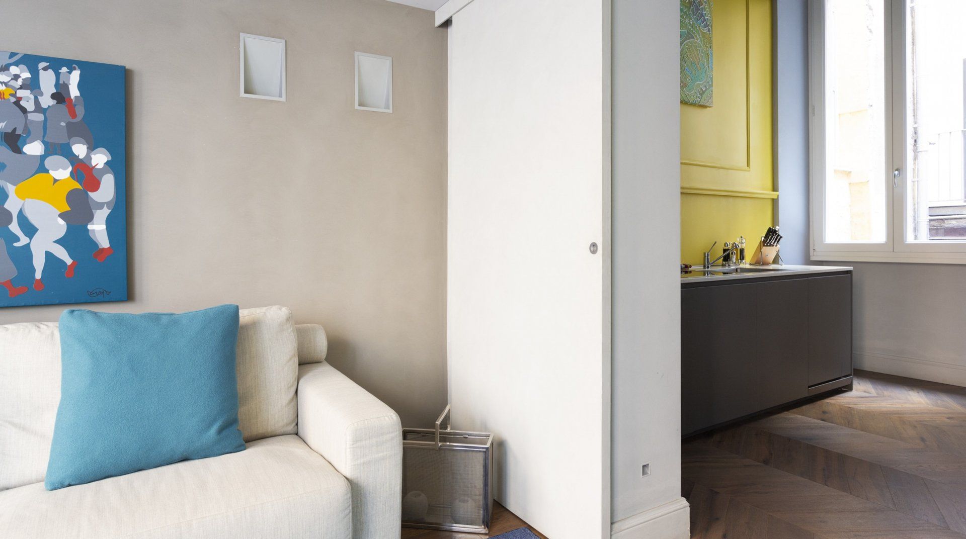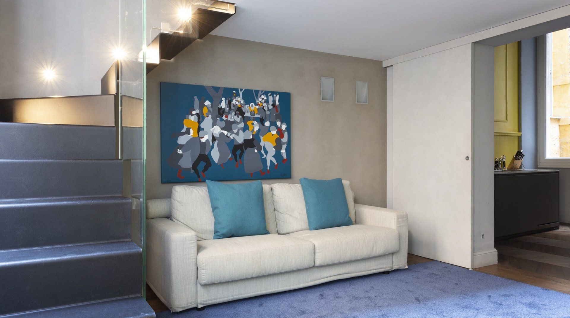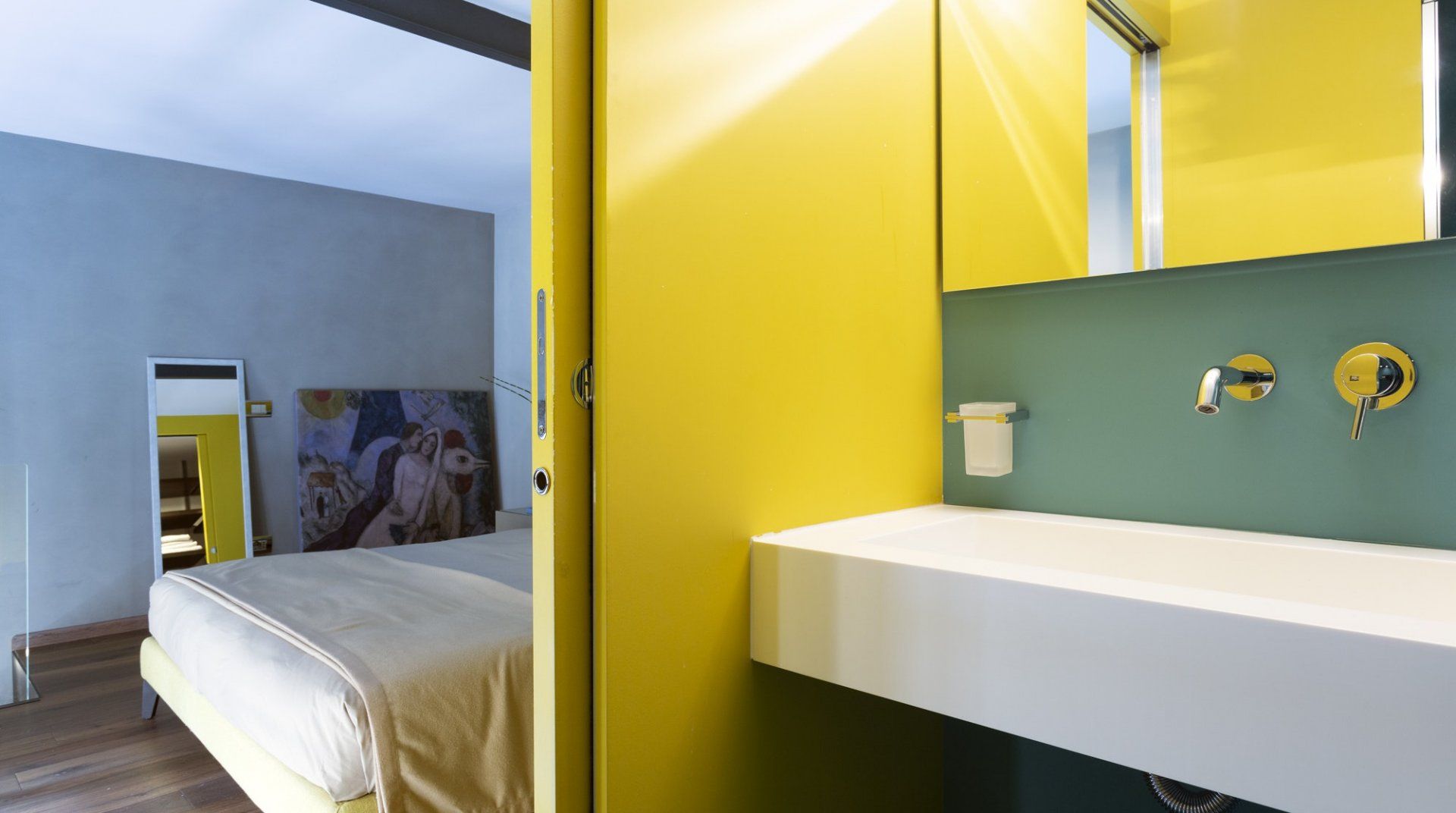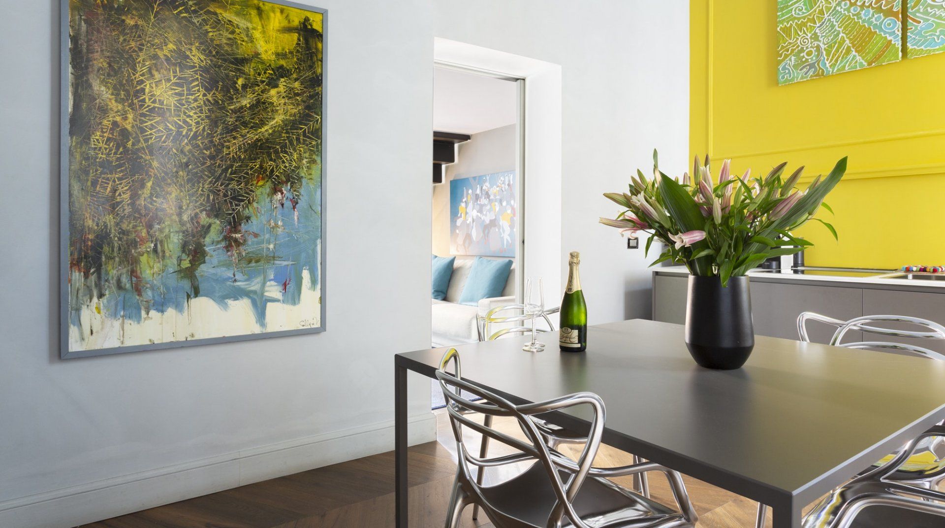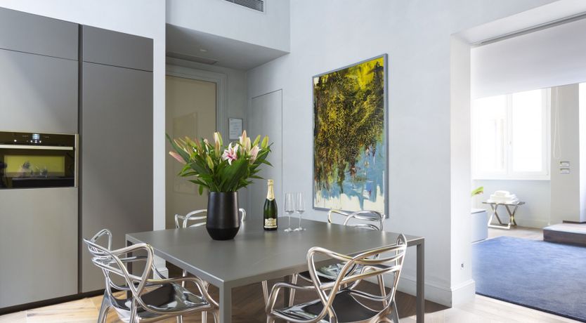 Part of a nineteenth-century palazzo building constructed in neoclassical style, this duplex apartment is actually way more modern than the exterior suggests. Large pieces of bold artwork and bright bursts of colour make the interior feel fresh and vibrant, while the minimalist staircase leading up to the cosy mezzanine bedroom is stylish as they come. It's immediately clear that the host has opted for quality when putting the space together, The yellow kitchen area was designed by Italian design firm Mudulnnova and is stocked with silverware and crockery from Villeroy & Boch. All this, and the location in the Centro Storico is outstanding, too. From the building's front door, look left and you'll see the sixteenth-century Chiesa del Gesù, while in the other direction, there's the ancient site of Largo di Torre Argentina where Julius Caesar was assassinated. The Pantheon only takes six minutes to reach on foot, too.