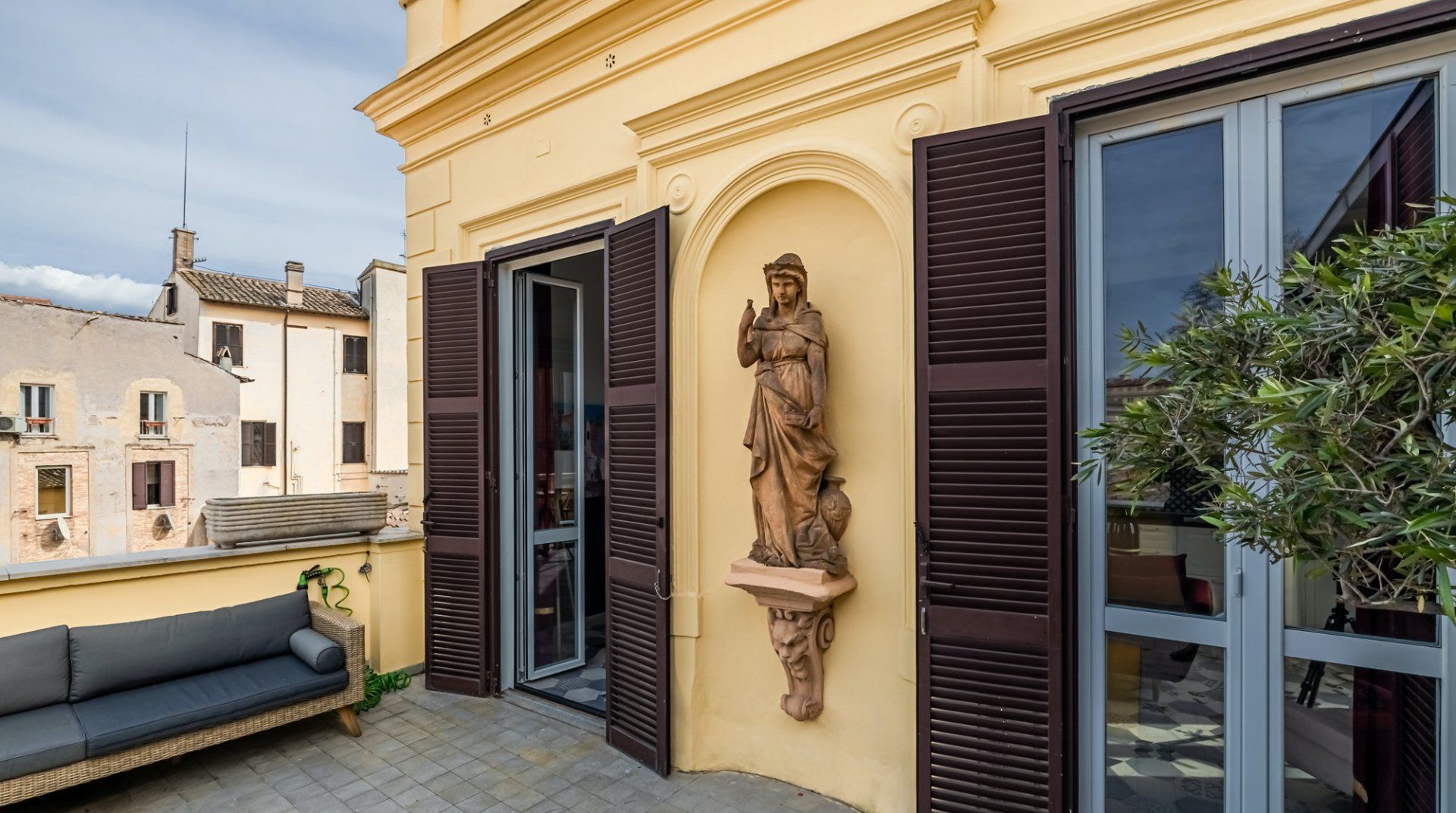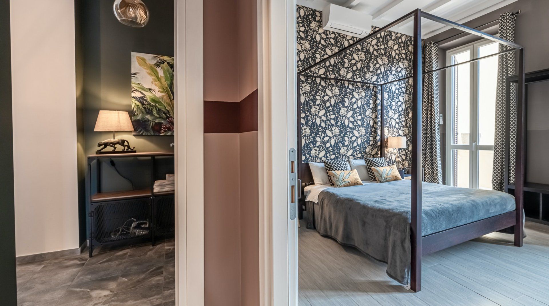It’s clear that this penthouse is a special place as soon as you open the front door. Every feature of the home has been carefully curated, resulting in an eclectic, yet stylish aesthetic. There's a traditional air here, thanks to the sumptuous velvet sofa and the rustic wooden shutters, but there’s a real sense of fun to be found in the whimsical animal lamps and pretty patterned wallpaper. The annexe gives you some extra space to enjoy, and the roof terrace is an unusual but very welcome feature in the centre of the city. You'll love admiring the gorgeous views across the rooftops as you sip your morning coffee and nibble a croissant kindly provided by your host. They will provide basic cooking ingredients, such as oil and spices, but you'd rather eat out, then you are spoilt for choice in this pocket of Rome, with all the pizza and pasta restaurants you could dream of. The Piazza Navona is just a few steps away, while the Pantheon and Trevi Fountain are both within a ten-minute walk. And, when you're finished exploring the eternal city, a luxurious four-poster bed awaits – it doesn't get much better than this.