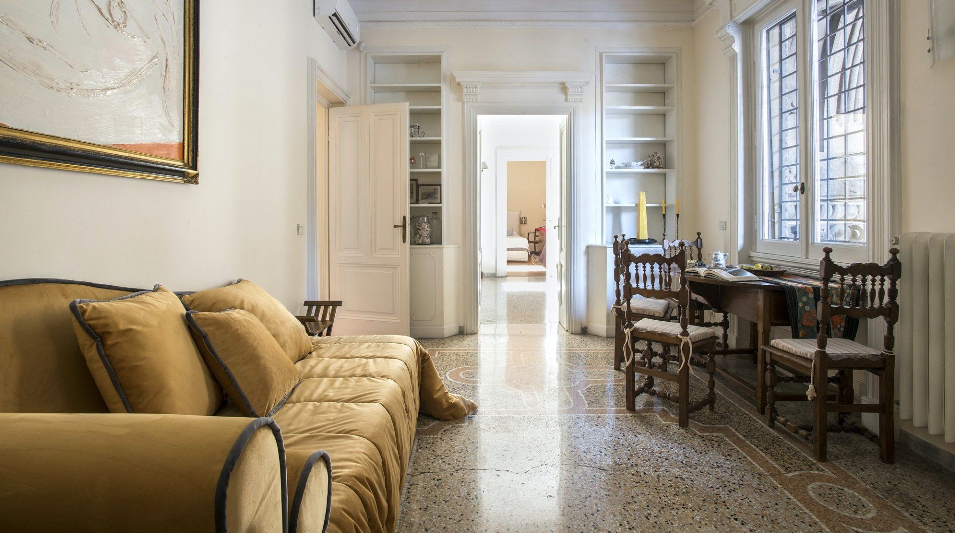 Coppedè isn’t the best-known quarter of the city, but it’s something of an undiscovered gem. The buildings, an enthralling mix of art nouveau, Greek classicism, medieval and baroque, were all built around the same time, and designed by the eponymous architect. As a flat, L'Esploratrice lives up to the area’s reputation for upmarket homes. It’s set over two floors, and retains many of the original, early-twentieth-century features – like the granite floors and carved wooden door frames.
