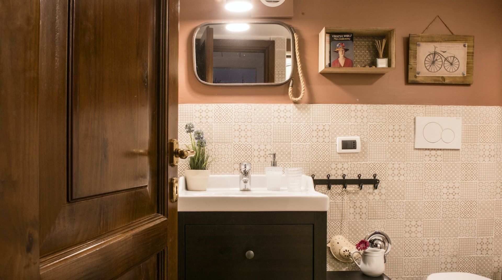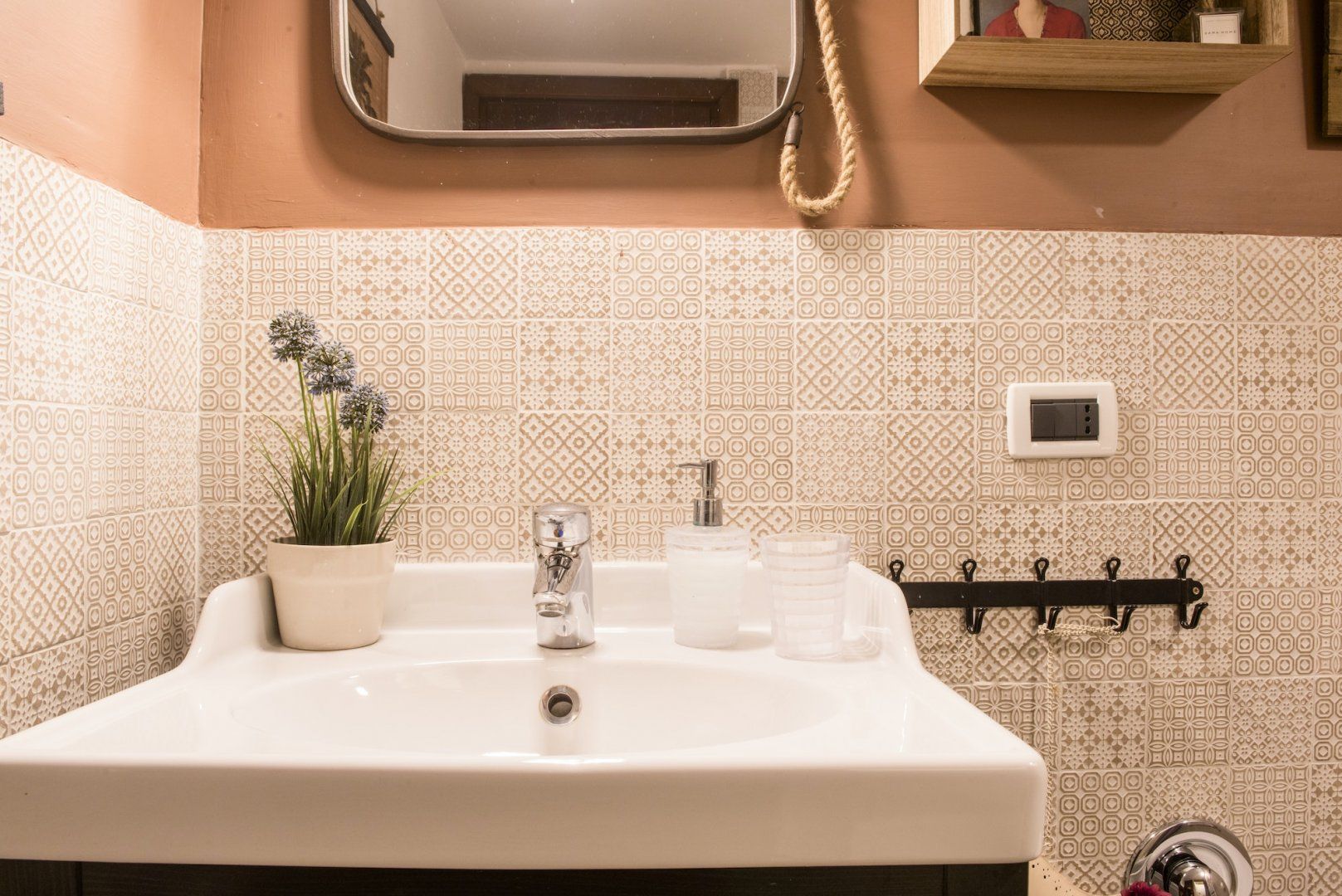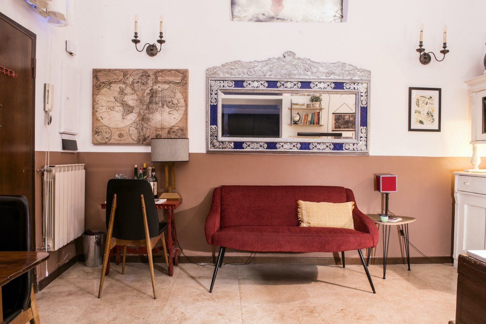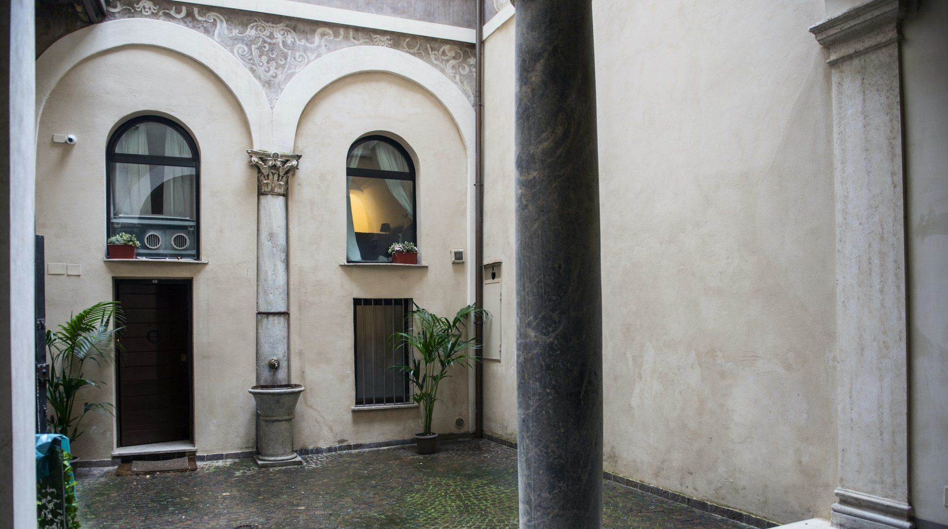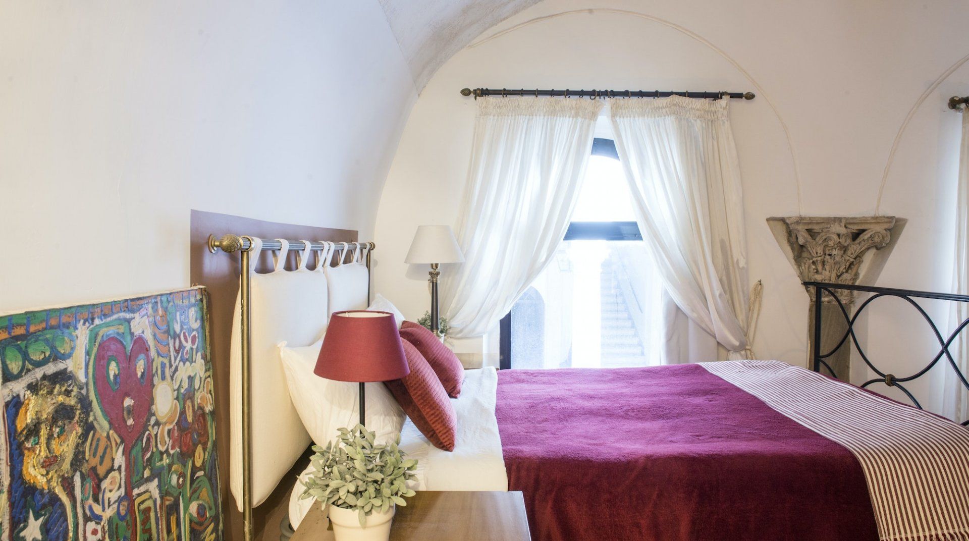 Housed in a former church in Rome’s scenic Jewish Quarter, this home is full of characterful details and historic charm, as well as being just a ten-minute stroll from picturesque Piazza Navona. Enter through the building’s grand outer door and step into an ornate courtyard where you’ll find this apartment quietly tucked away. Inside, rustic traditionalism meets quirky stylings, with a good dose of classic elegance thrown in for good measure. We love the arched windows here and the old Roman column with its elegant capital along the wall. There’s a definite air of romance in the mezzanine bedroom, framed by a wrought-iron balcony, while the pops of red in the draped curtains and sofa give the whole space a sumptuous, intimate feel. When you’re ready to explore, you've got the city's best sights within easy reach. Piazza Navona and the Pantheon are a mere ten-minute stroll away, while the Trevi Fountain and the Colosseum are a twenty-minute walk from your door. After a day of sightseeing, come back home for a glass of wine and an intimate meal at home, or discover the countless delicious trattorias right on your doorstep.