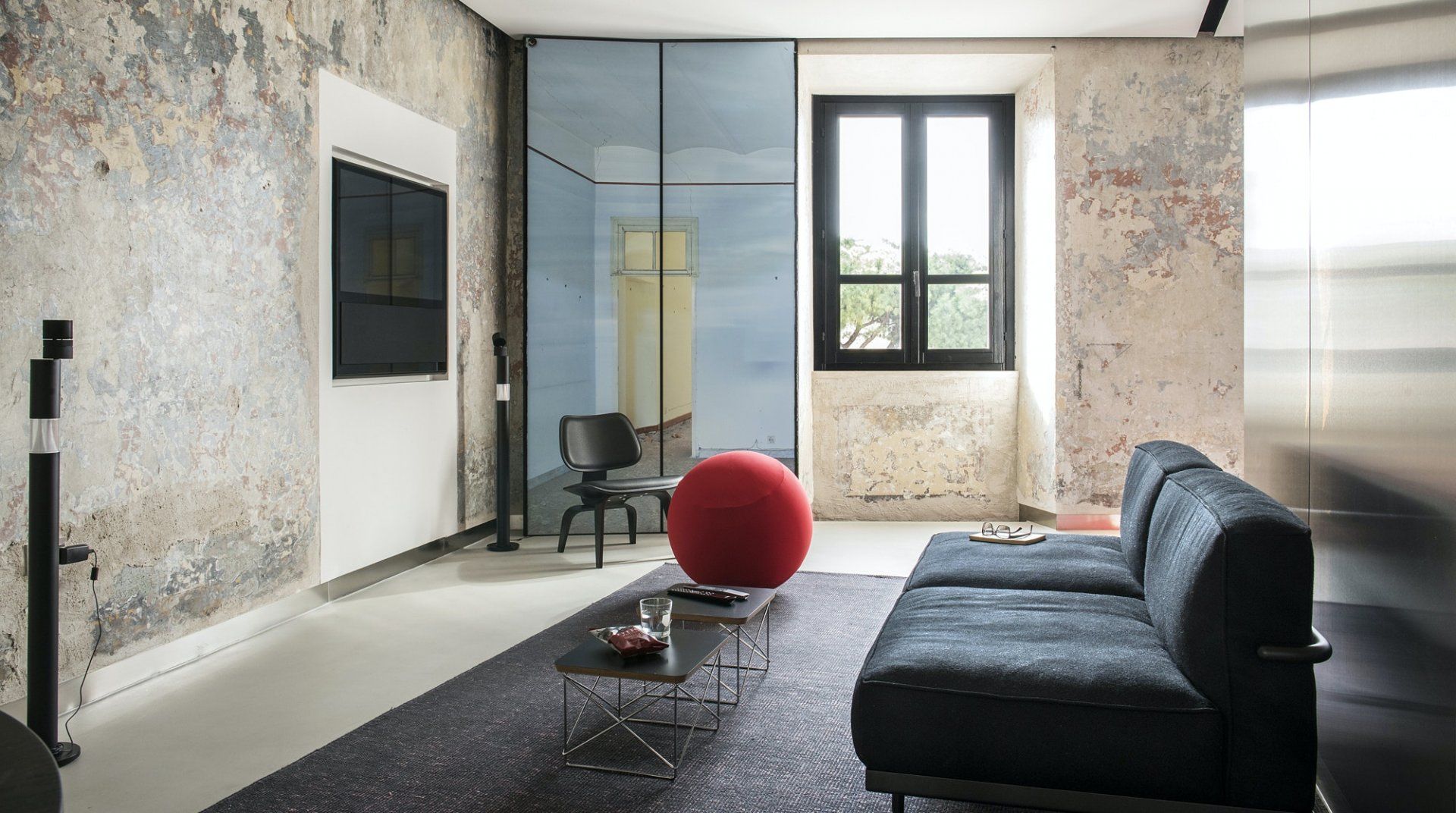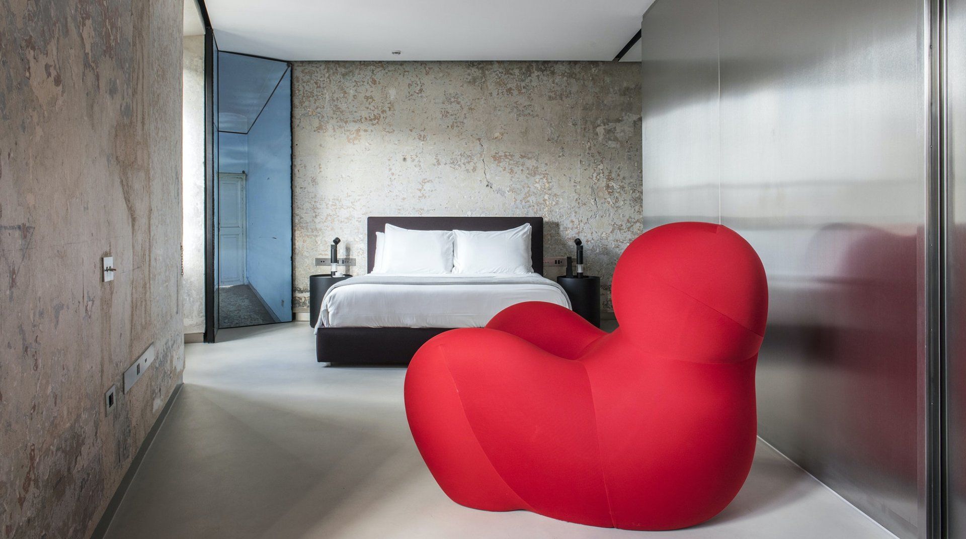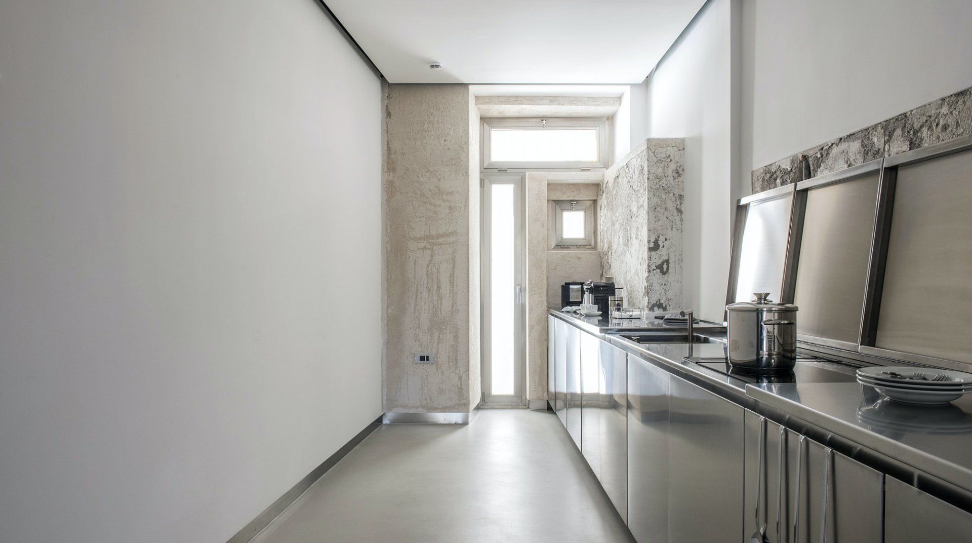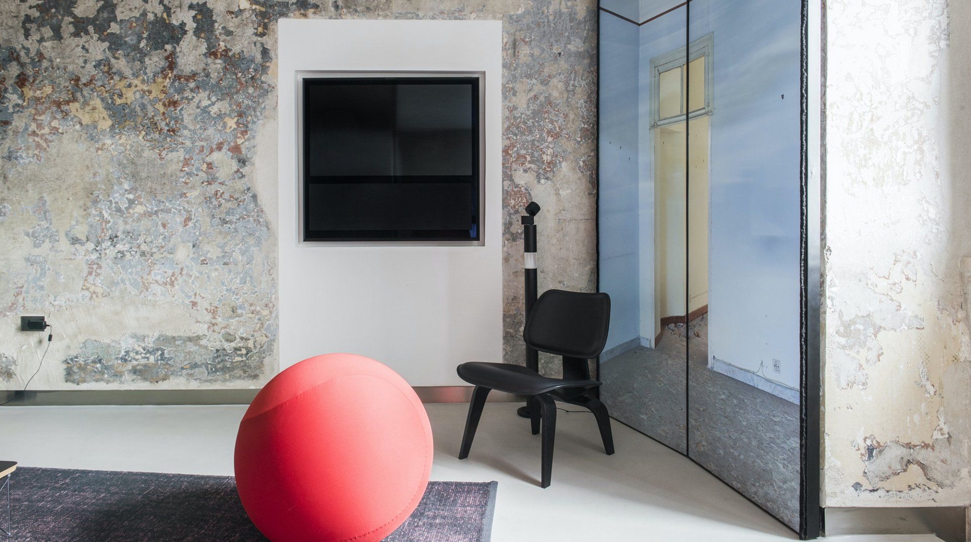 The contrast between the old structure, with its plaster and ceiling beams, and the Koons-esque furniture in Mirror Sky is striking, even more so in the flesh than on a screen. It’s a bold move, but no less than you’d expect from a flat in the Alda Fendi Foundation. Rather than a traditionally autonomous apartment, here you get the benefits you’d normally associate with a five-star hotel, without losing any independence. There’s a 24/7 reception, a roof terrace, daily cleaning, even the option to choose the pillow best suited to you from a ‘menu’.
