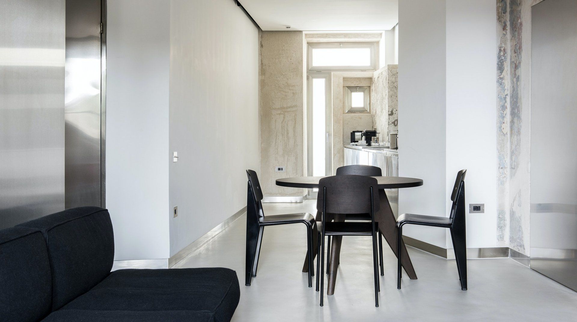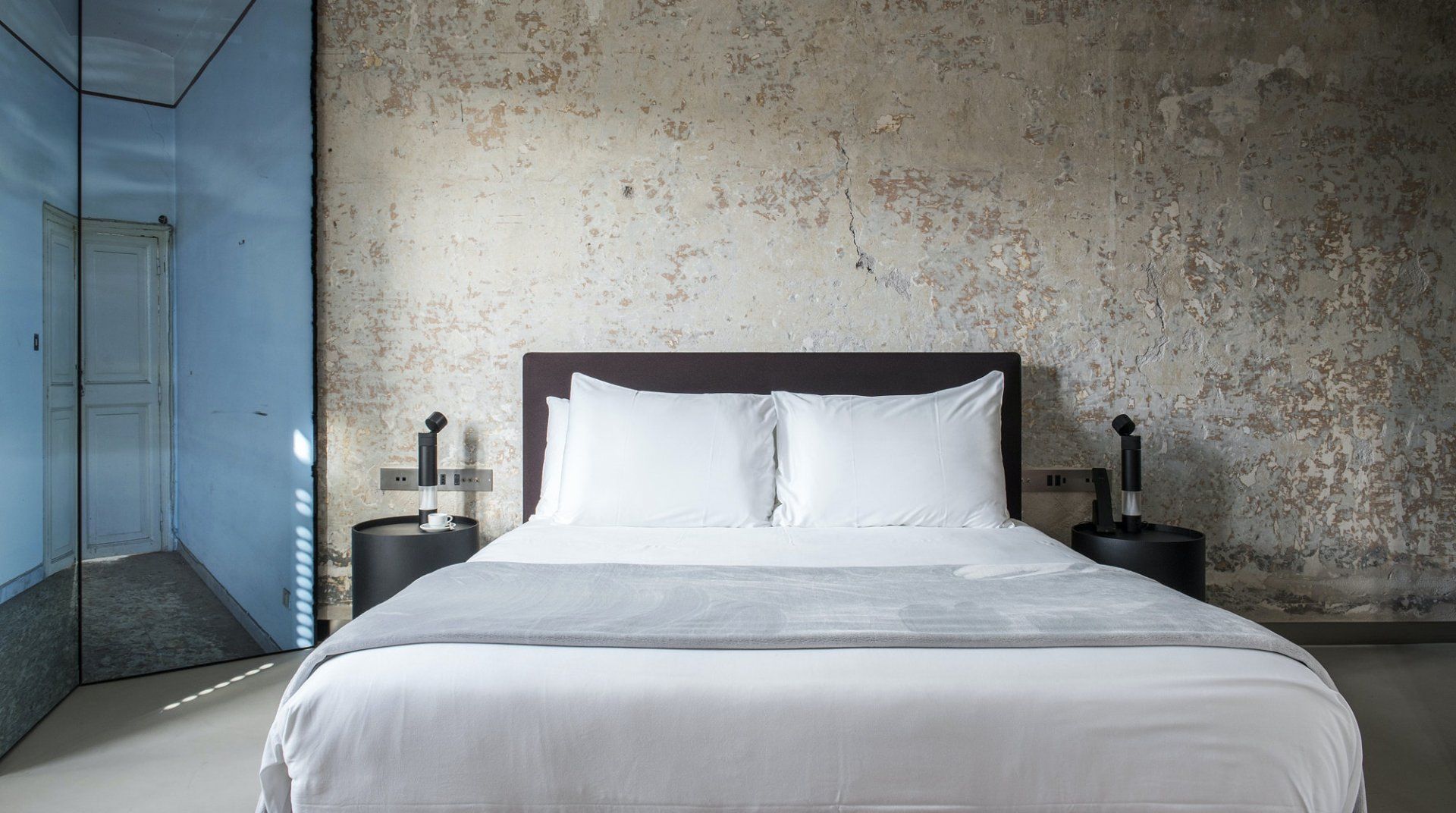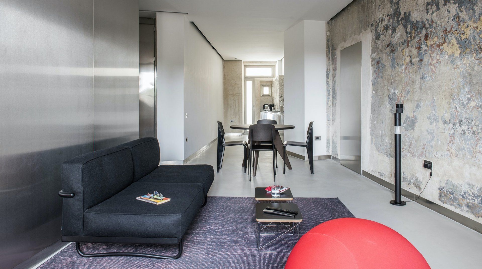 The contrast between the old structure, with its plaster and ceiling beams, and the Koons-esque furniture in Mirror Sky is striking, even more so in the flesh than on a screen. It’s a bold move, but no less than you’d expect from a flat in the Alda Fendi Foundation. Rather than a traditionally autonomous apartment, here you get the benefits you’d normally associate with a five-star hotel, without losing any independence. There’s a 24/7 reception, a roof terrace, daily cleaning, even the option to choose the pillow best suited to you from a ‘menu’.