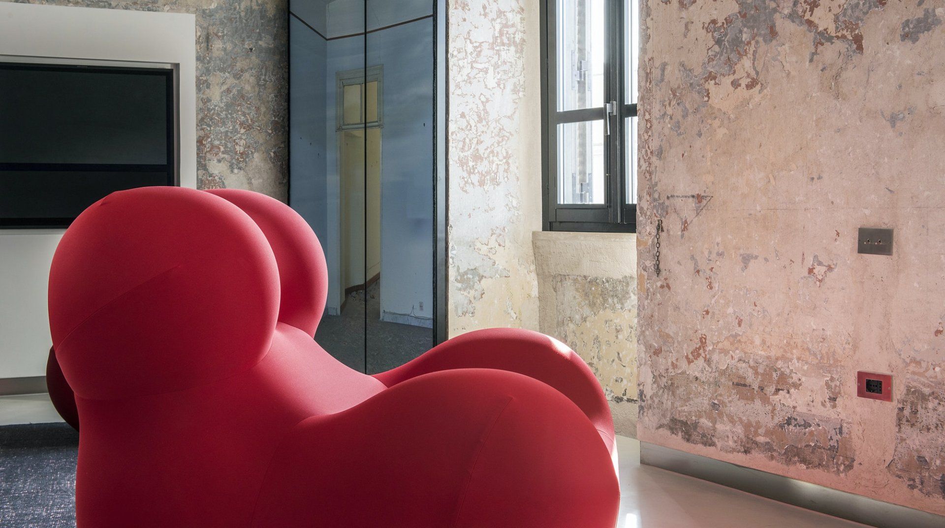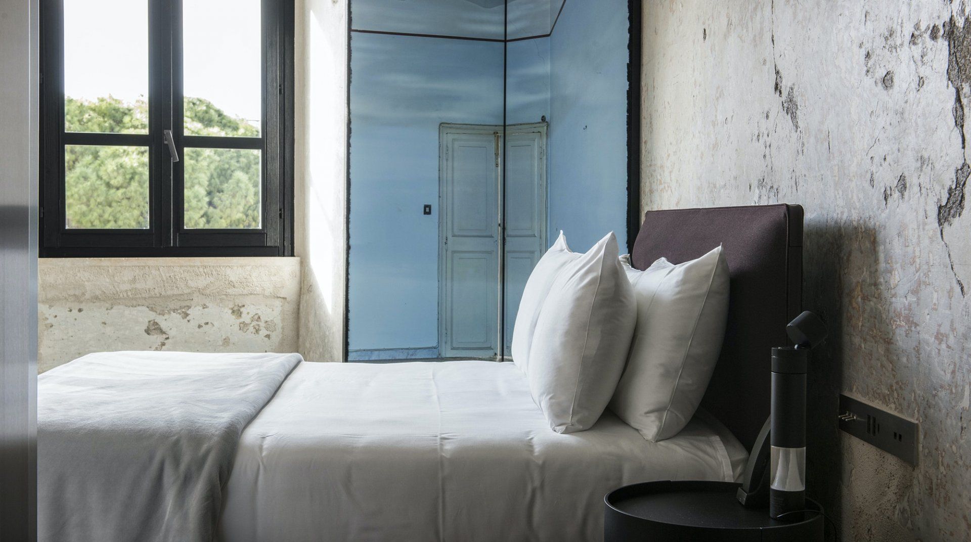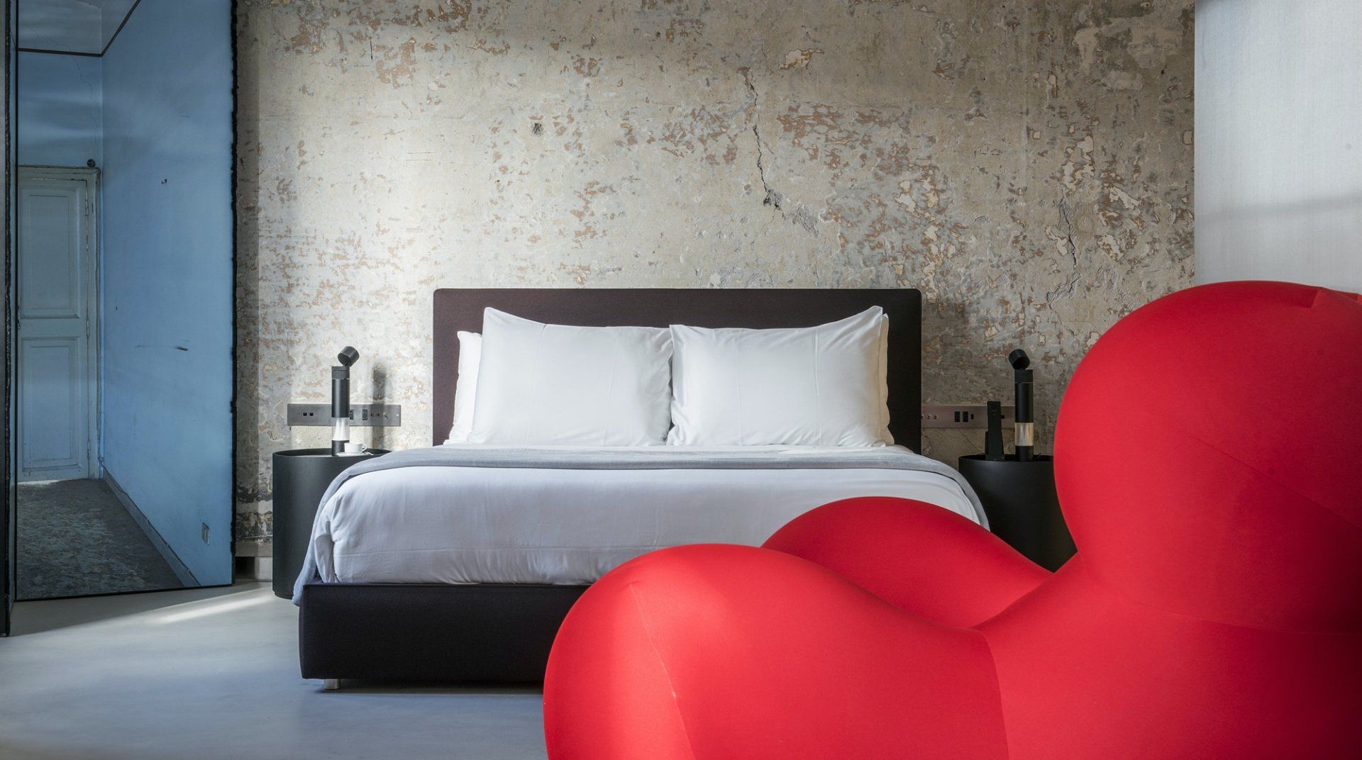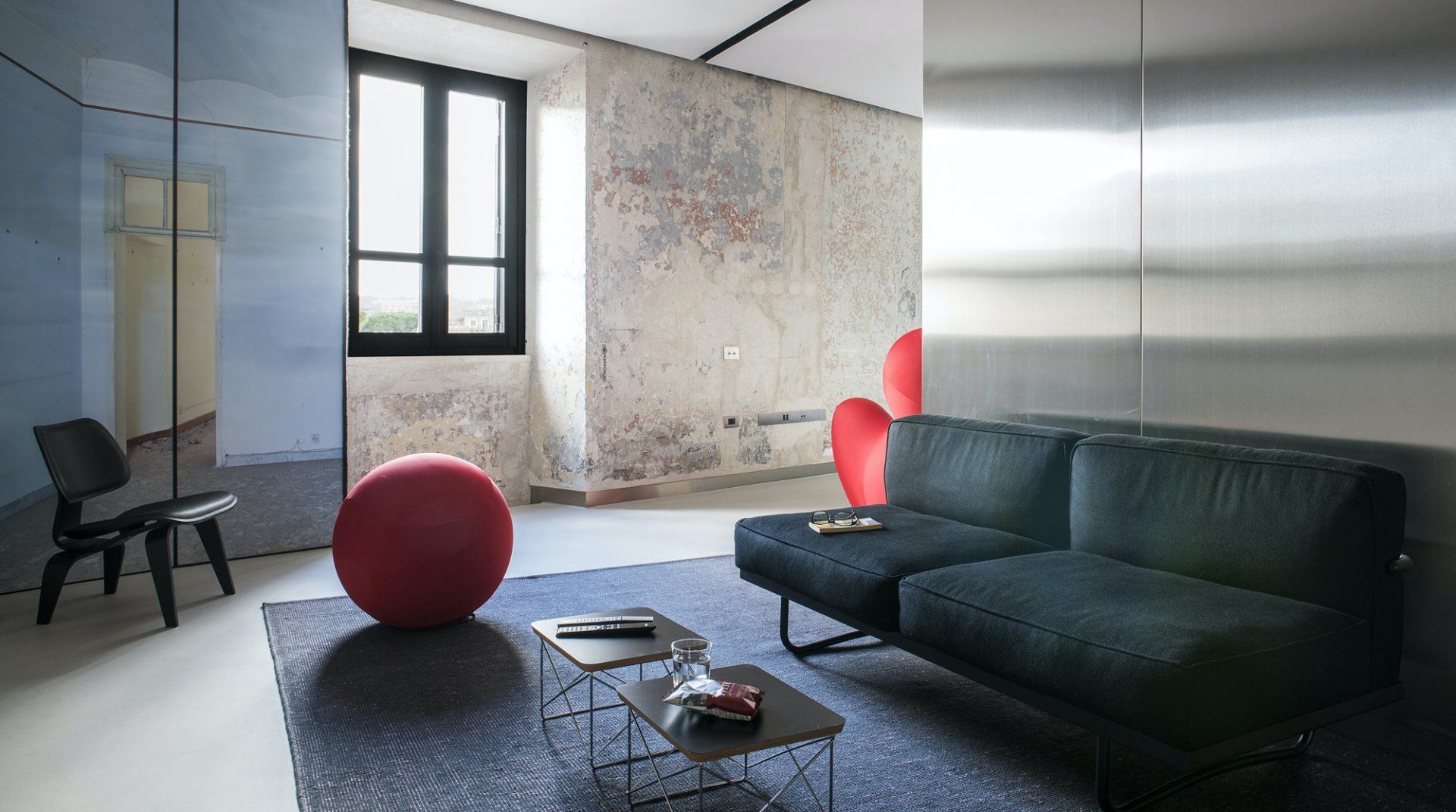 The contrast between the old structure, with its plaster and ceiling beams, and the Koons-esque furniture in Mirror Sky is striking, even more so in the flesh than on a screen. It’s a bold move, but no less than you’d expect from a flat in the Alda Fendi Foundation. Rather than a traditionally autonomous apartment, here you get the benefits you’d normally associate with a five-star hotel, without losing any independence. There’s a 24/7 reception, a roof terrace, daily cleaning, even the option to choose the pillow best suited to you from a ‘menu’.