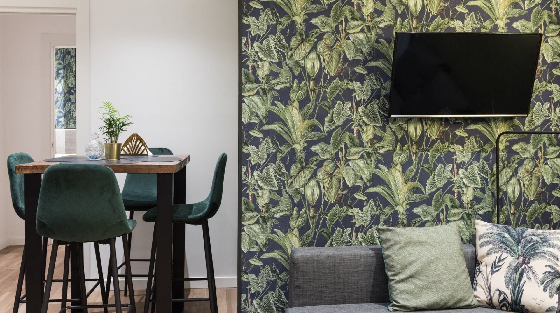 The interior is perfectly pieced together and designed with your needs in mind. We were big fans of the interior design, particularly the accent wallpaper that makes the green theme pop.