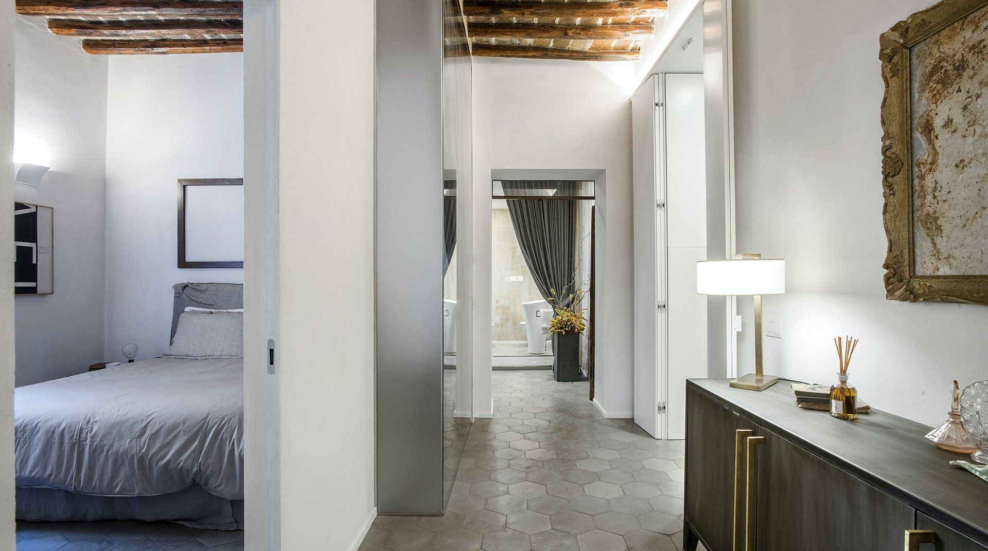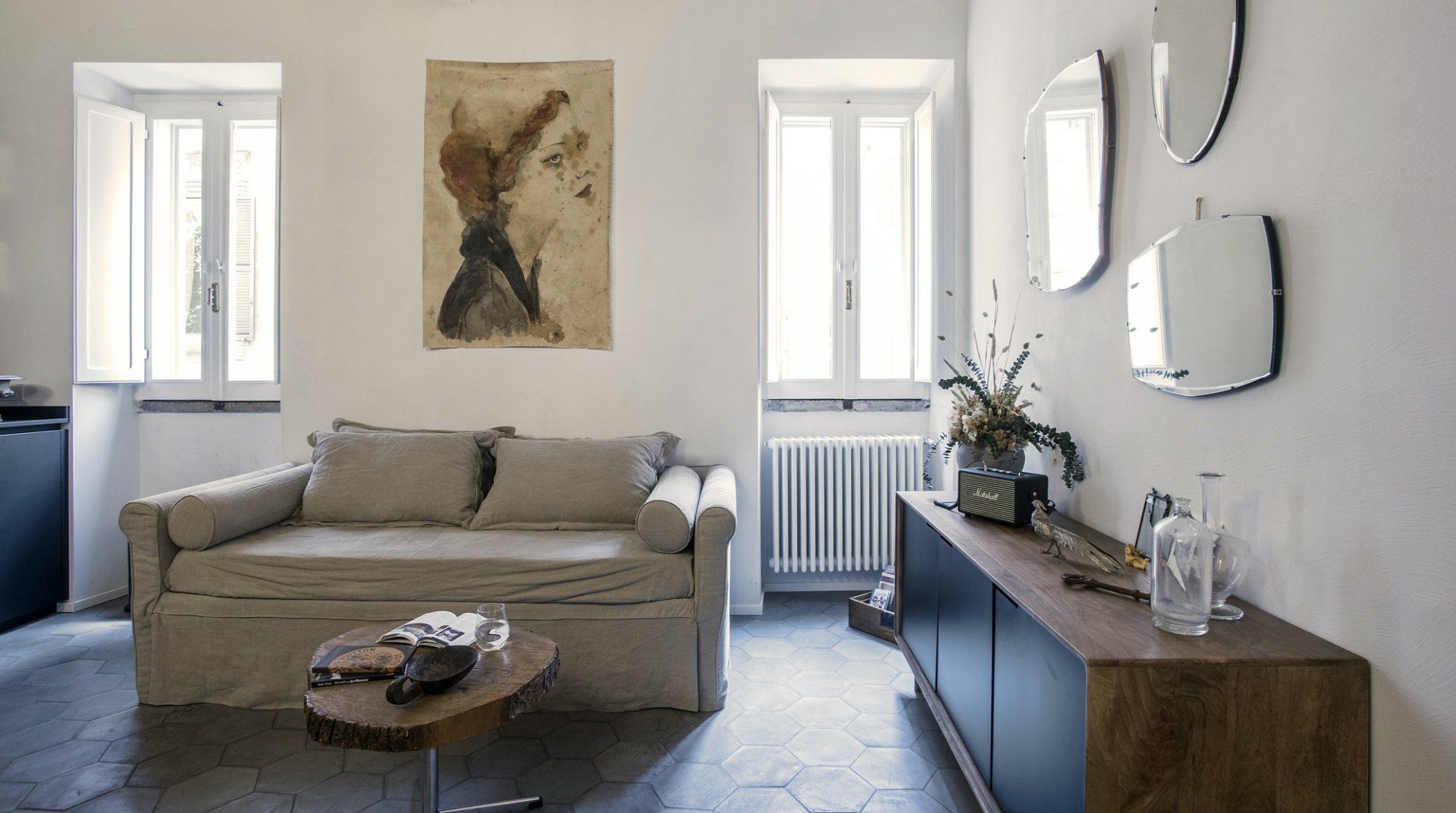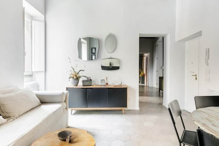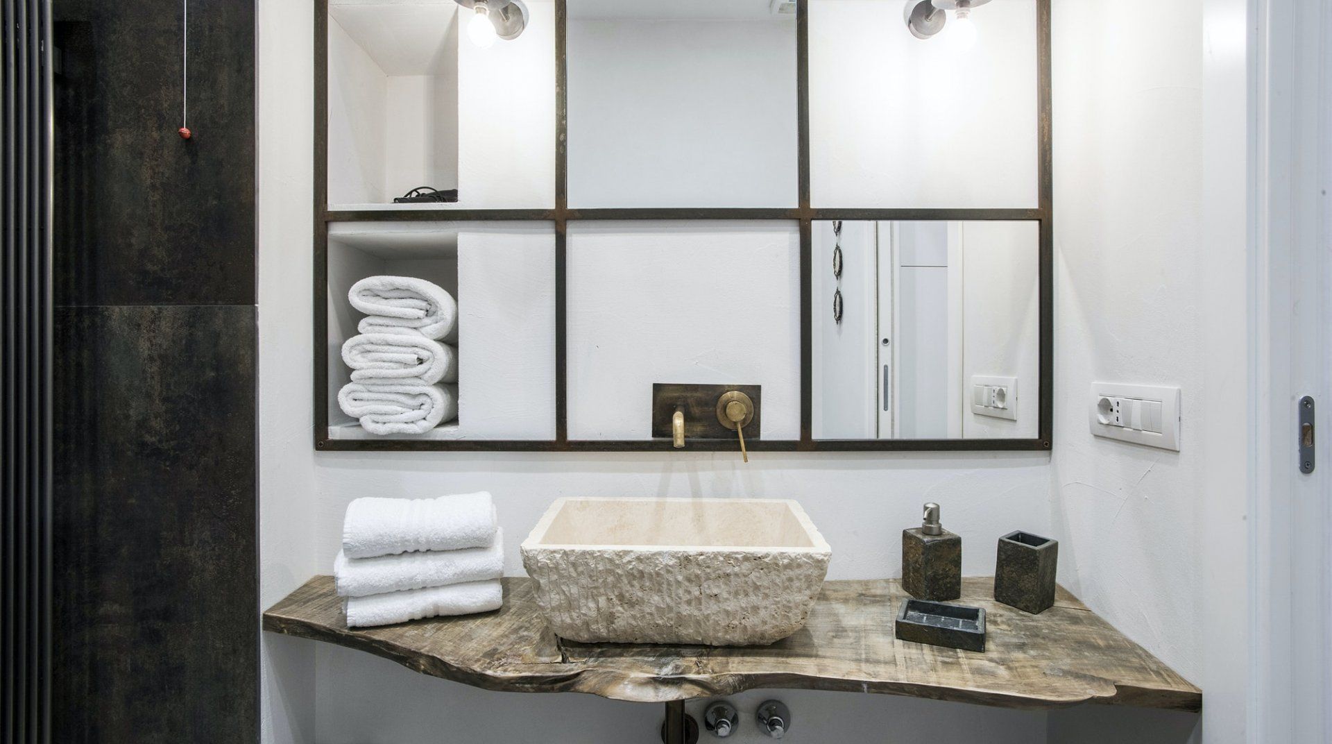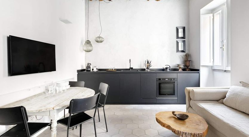 Obsidian & Cream is a quietly stylish home located in the South West of Rome in the heart of Trastevere, renowned for its narrow streets and authentic Italian feel. Here, the city's busiest sights are left behind for charming backstreets, lined by cosy cafes and shops. You'll be able to stroll along the River Tiber, take a trip to the Basilica Di Santa Maria (a two-minute walk away), and come back to relax in this welcoming apartment all in an afternoon's escapades. With sleek bathrooms and two truly comfortable bedrooms as well as extra space on the sofa bed, this humble abode would suit a group of friends in Rome for a few days perfectly. While there may be lots of sights to tick off around the city, the home invites guests to unwind in pure comfort as the warm, earthy tones and rustic charm throughout, makes for a laid-back ambience worth writing home about. We particularly love dark wooden doors and beams that run across the ceilings – as well as the beautiful stone sink in the master bathroom. Trust us when we say, you won't want to leave the relaxed way of living here, let alone the feeling of zen that flows freely around this apartment.