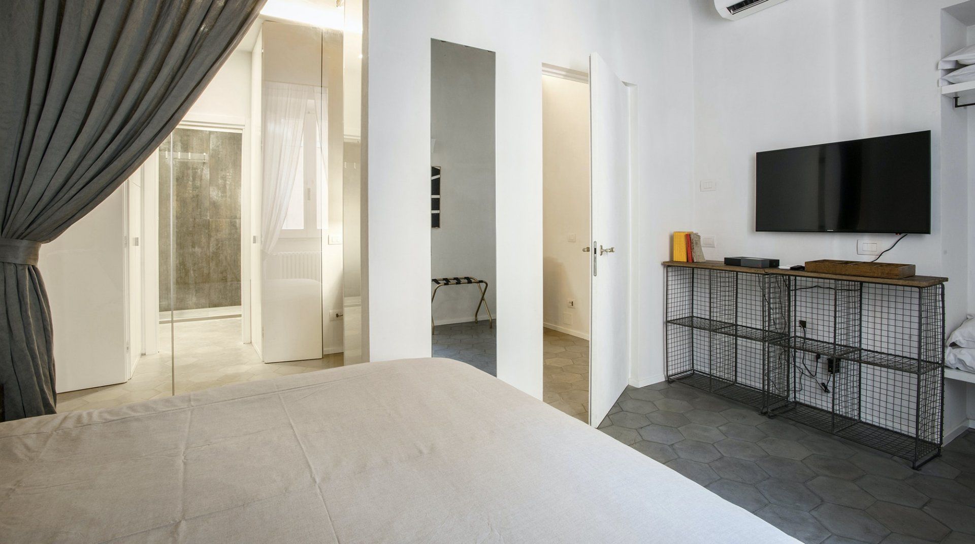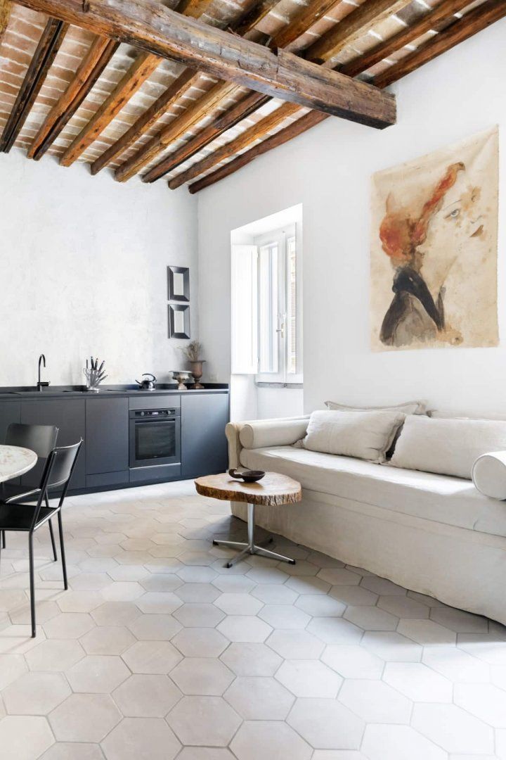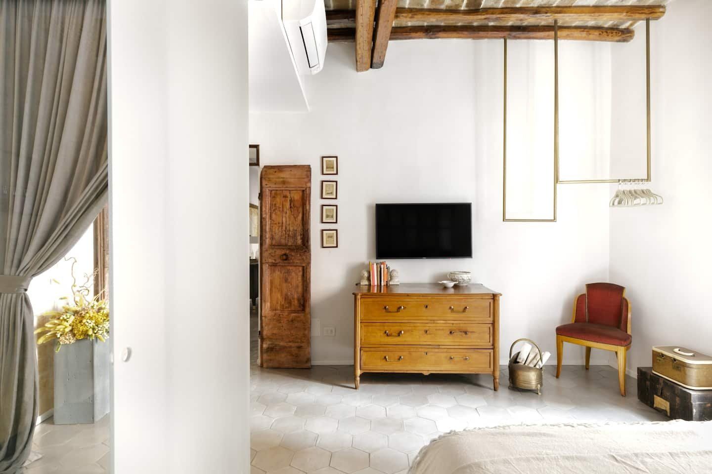 Obsidian & Cream is a quietly stylish home located in the South West of Rome in the heart of Trastevere, renowned for its narrow streets and authentic Italian feel. Here, the city's busiest sights are left behind for charming backstreets, lined by cosy cafes and shops. You'll be able to stroll along the River Tiber, take a trip to the Basilica Di Santa Maria (a two-minute walk away), and come back to relax in this welcoming apartment all in an afternoon's escapades. With sleek bathrooms and two truly comfortable bedrooms as well as extra space on the sofa bed, this humble abode would suit a group of friends in Rome for a few days perfectly. While there may be lots of sights to tick off around the city, the home invites guests to unwind in pure comfort as the warm, earthy tones and rustic charm throughout, makes for a laid-back ambience worth writing home about. We particularly love dark wooden doors and beams that run across the ceilings – as well as the beautiful stone sink in the master bathroom. Trust us when we say, you won't want to leave the relaxed way of living here, let alone the feeling of zen that flows freely around this apartment.