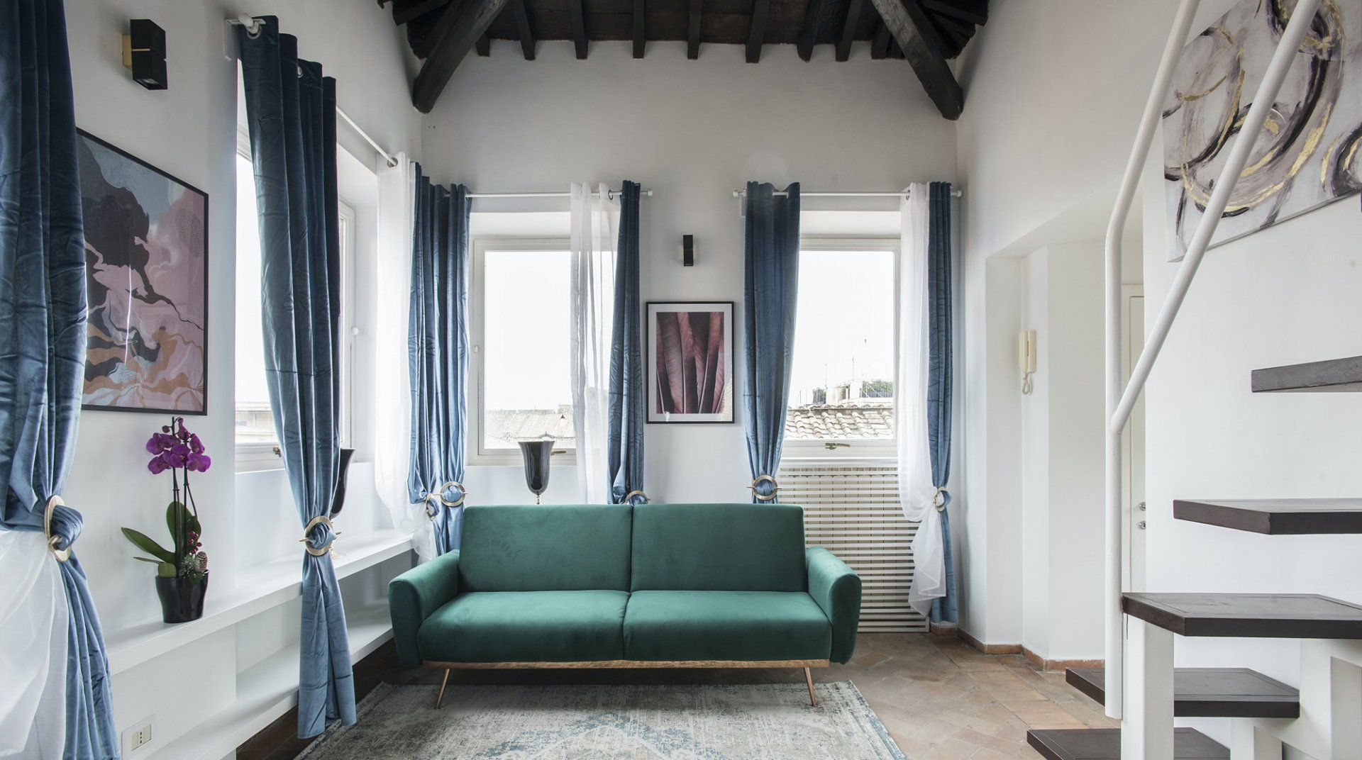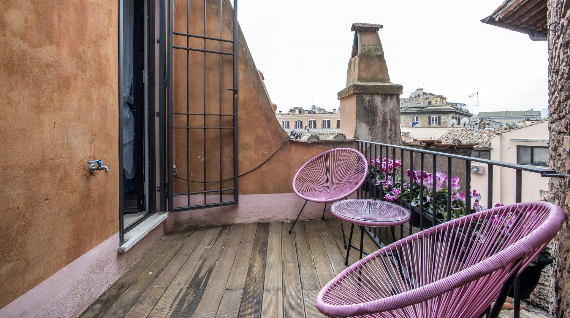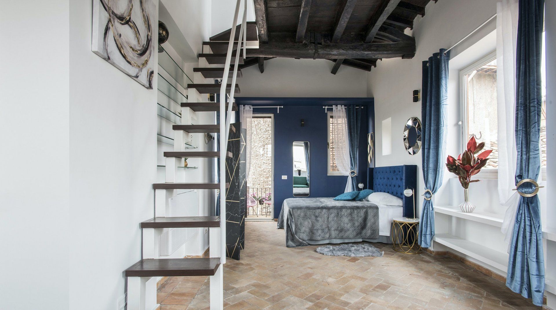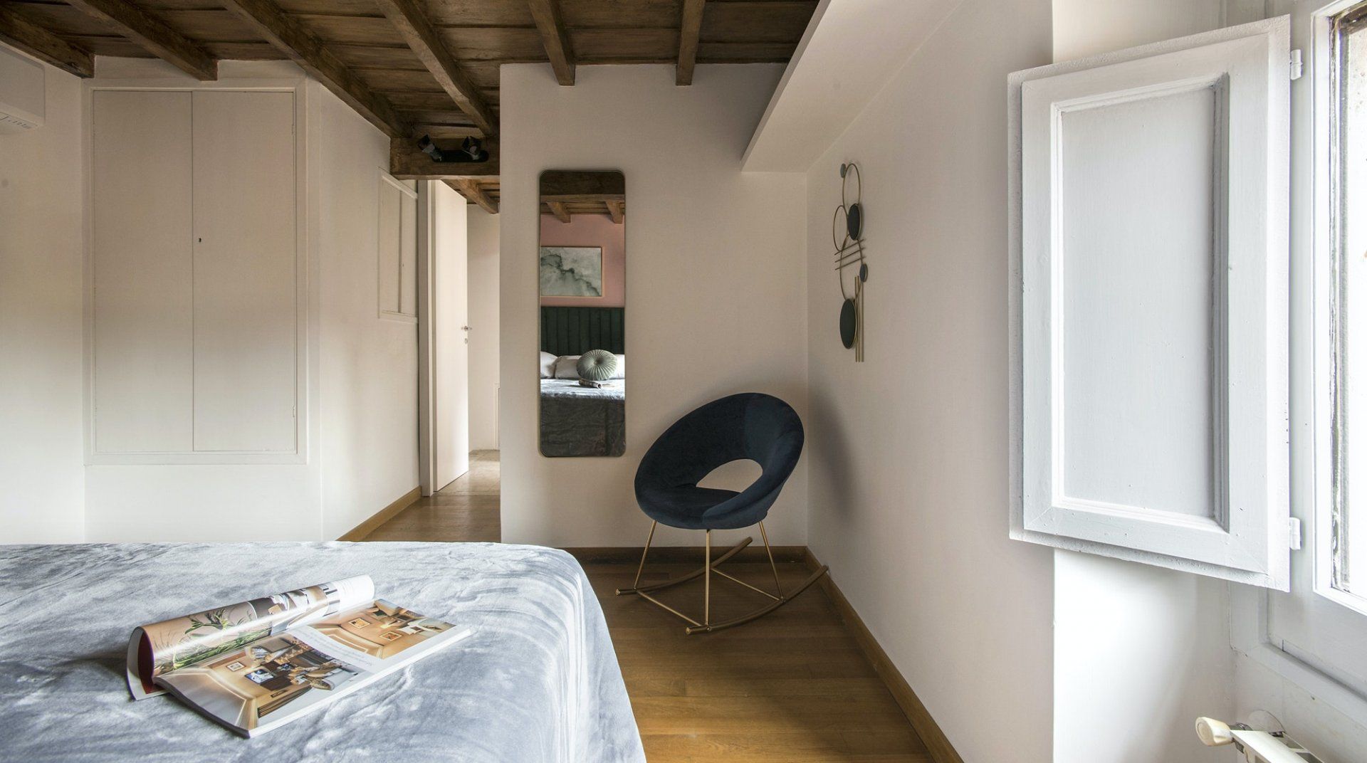 An apartment in the palace of one of Rome’s greatest aristocratic families – even if we set aside the location – it’s a special place. Four floors stacked on top of each other form the backbone of the flat. The bedrooms are all beautiful, done up to modern standards, but without losing their sense of history or many of their original features. There’s a balcony and a terrace, along with panoramic views from the shower that crowns the flat. It’s a stroke of genius, one of many that elevate this apartment above the rest. Once you've had your morning shower looking out over Rome's rooftops, it's time to hit the streets. The apartment is neatly sandwiched between the stunning baroque beauty of Piazza Navona and the bustling Campo de' Fiori market – with both within a couple of minutes' walk – and close to a host of other Roman sights. Cross over Ponte Garibaldi, and you'll find yourself in trendy Trastevere in a little over ten minutes, while Vatican City lies twenty-five minutes in the opposite direction.