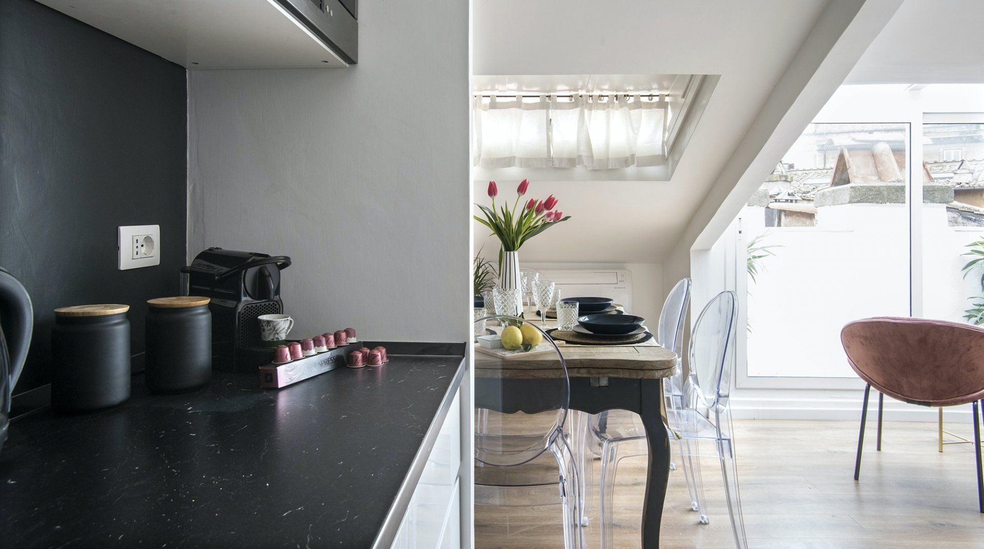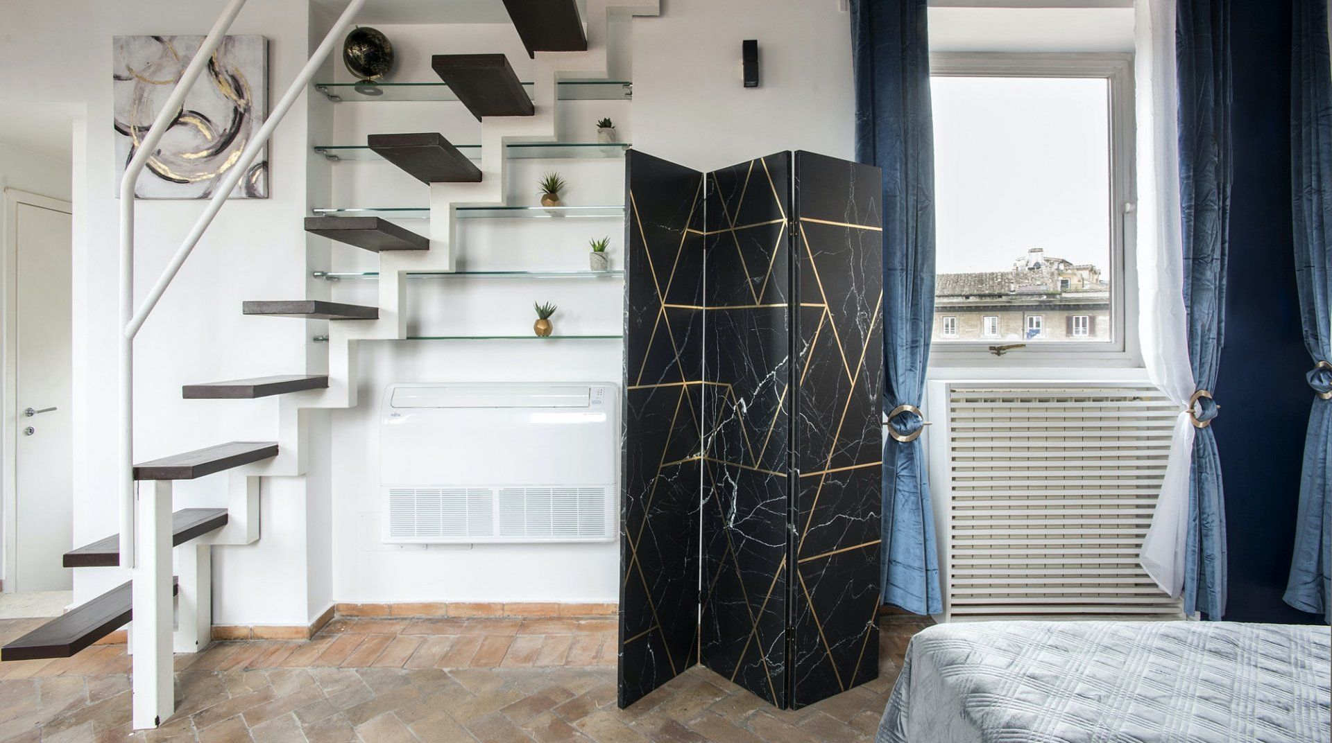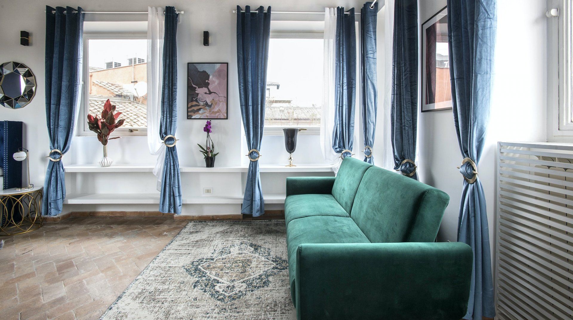 An apartment in the palace of one of Rome’s greatest aristocratic families – even if we set aside the location – it’s a special place. Four floors stacked on top of each other form the backbone of the flat. The bedrooms are all beautiful, done up to modern standards, but without losing their sense of history or many of their original features. There’s a balcony and a terrace, along with panoramic views from the shower that crowns the flat. It’s a stroke of genius, one of many that elevate this apartment above the rest. Once you've had your morning shower looking out over Rome's rooftops, it's time to hit the streets. The apartment is neatly sandwiched between the stunning baroque beauty of Piazza Navona and the bustling Campo de' Fiori market – with both within a couple of minutes' walk – and close to a host of other Roman sights. Cross over Ponte Garibaldi, and you'll find yourself in trendy Trastevere in a little over ten minutes, while Vatican City lies twenty-five minutes in the opposite direction.
