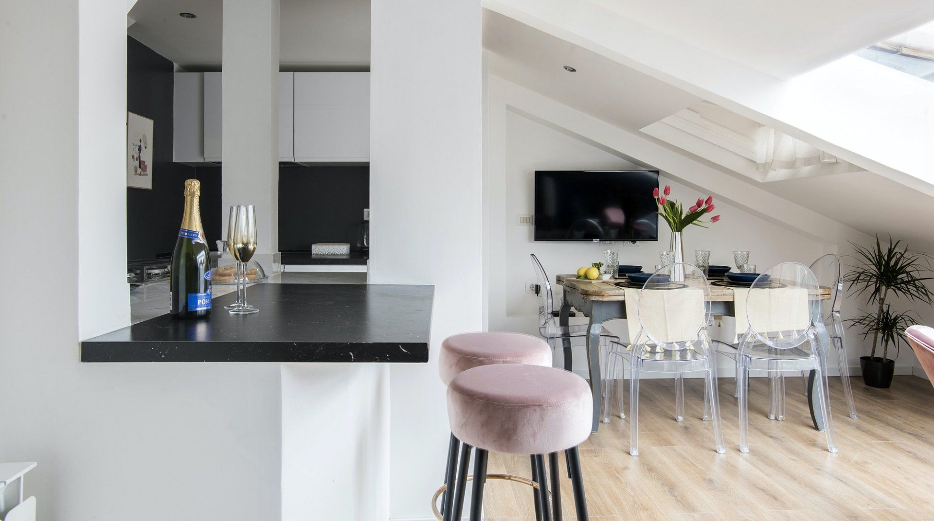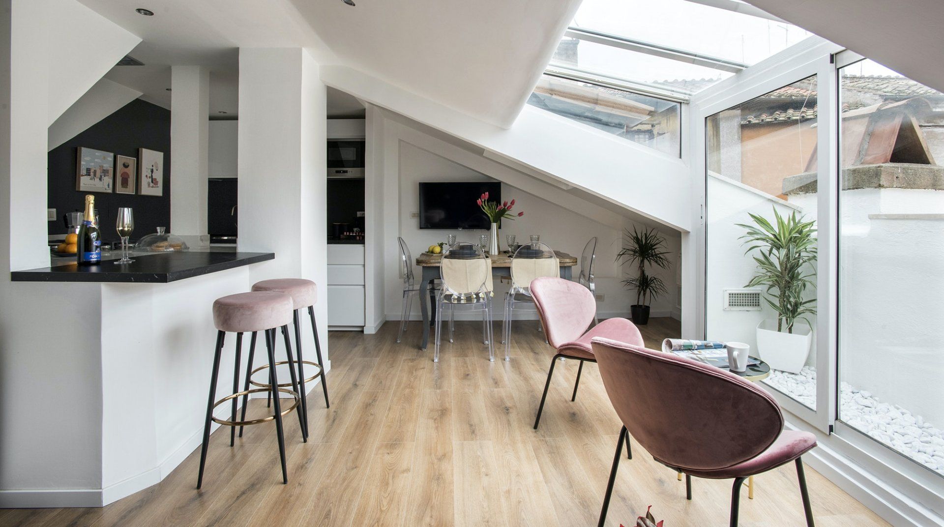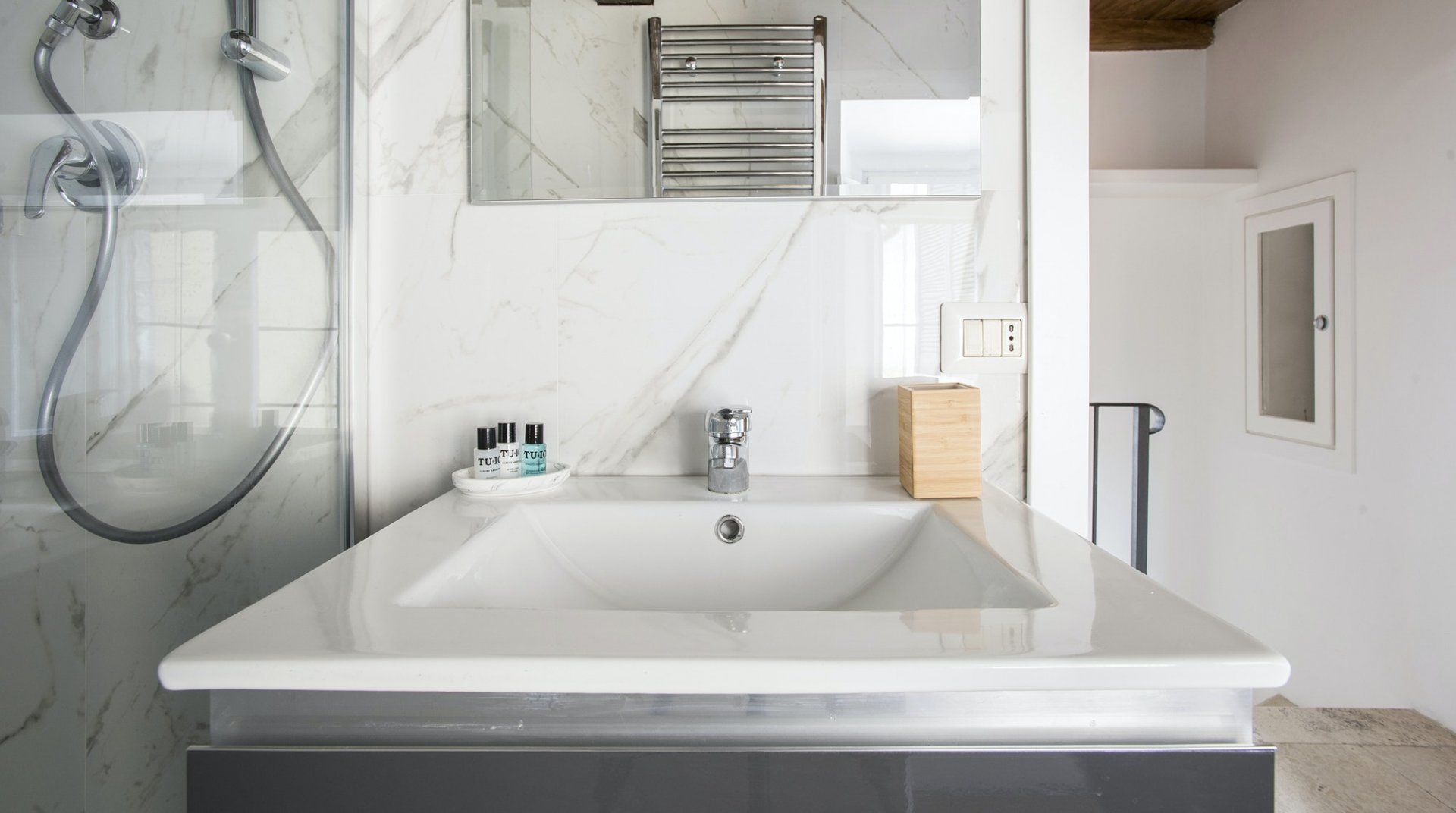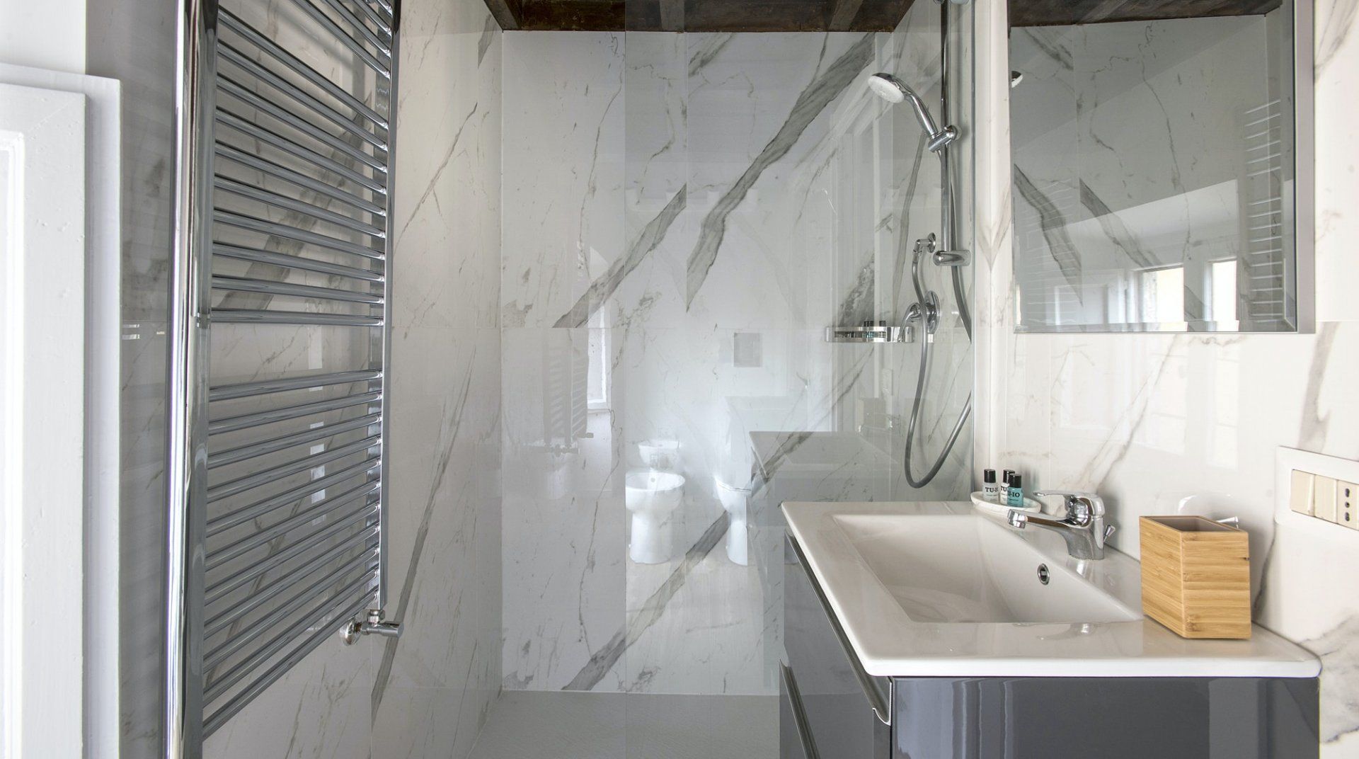 An apartment in the palace of one of Rome’s greatest aristocratic families – even if we set aside the location – it’s a special place. Four floors stacked on top of each other form the backbone of the flat. The bedrooms are all beautiful, done up to modern standards, but without losing their sense of history or many of their original features. There’s a balcony and a terrace, along with panoramic views from the shower that crowns the flat. It’s a stroke of genius, one of many that elevate this apartment above the rest. Once you've had your morning shower looking out over Rome's rooftops, it's time to hit the streets. The apartment is neatly sandwiched between the stunning baroque beauty of Piazza Navona and the bustling Campo de' Fiori market – with both within a couple of minutes' walk – and close to a host of other Roman sights. Cross over Ponte Garibaldi, and you'll find yourself in trendy Trastevere in a little over ten minutes, while Vatican City lies twenty-five minutes in the opposite direction.
