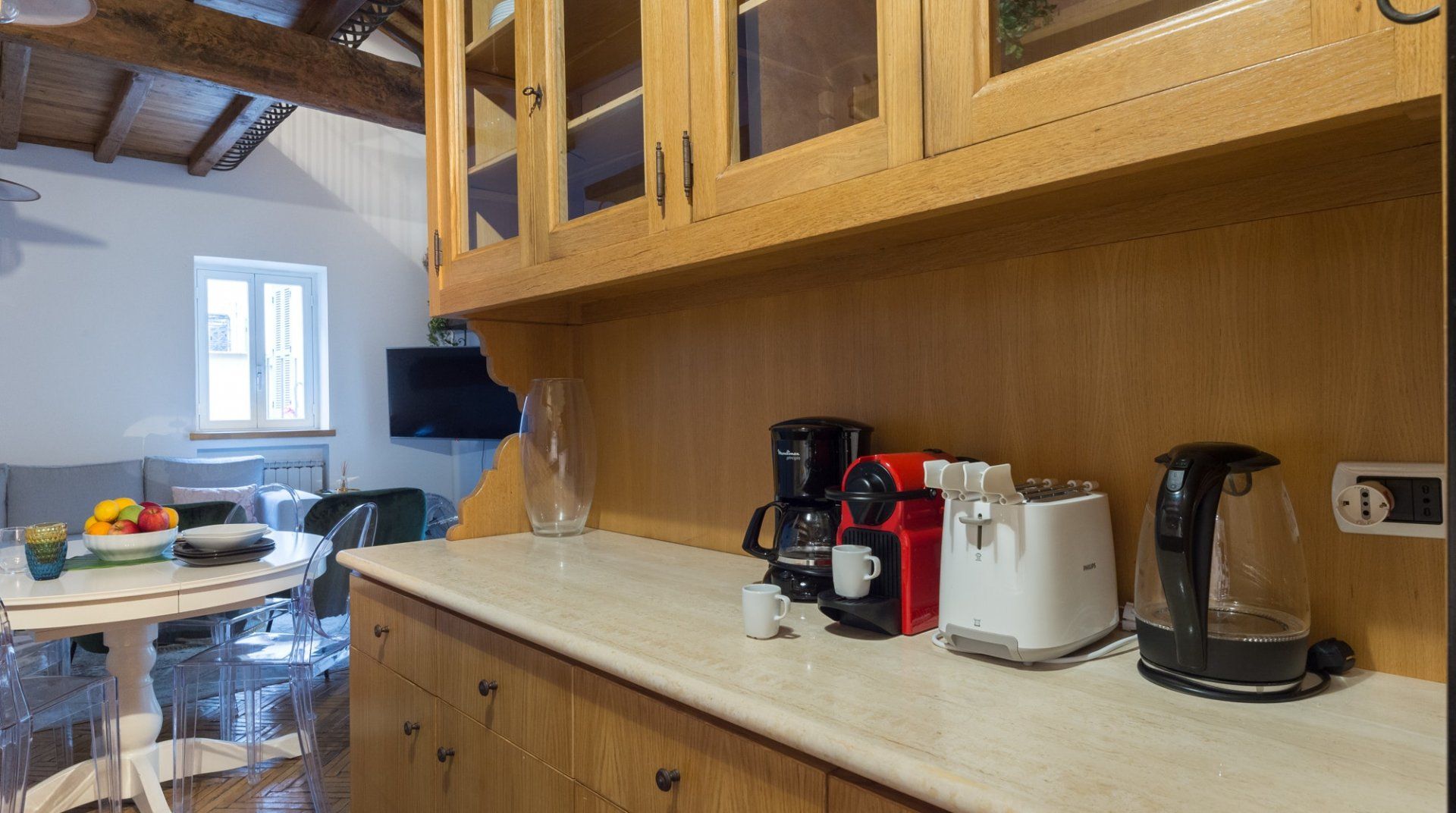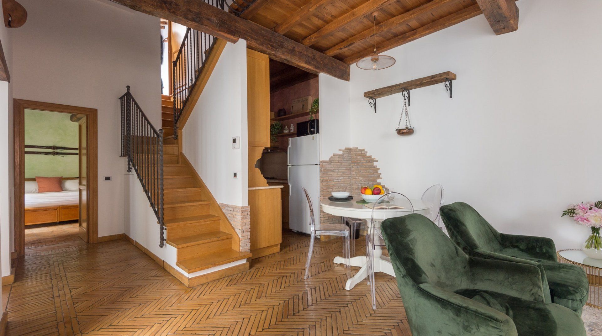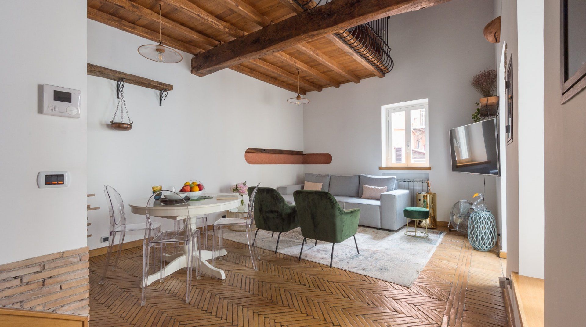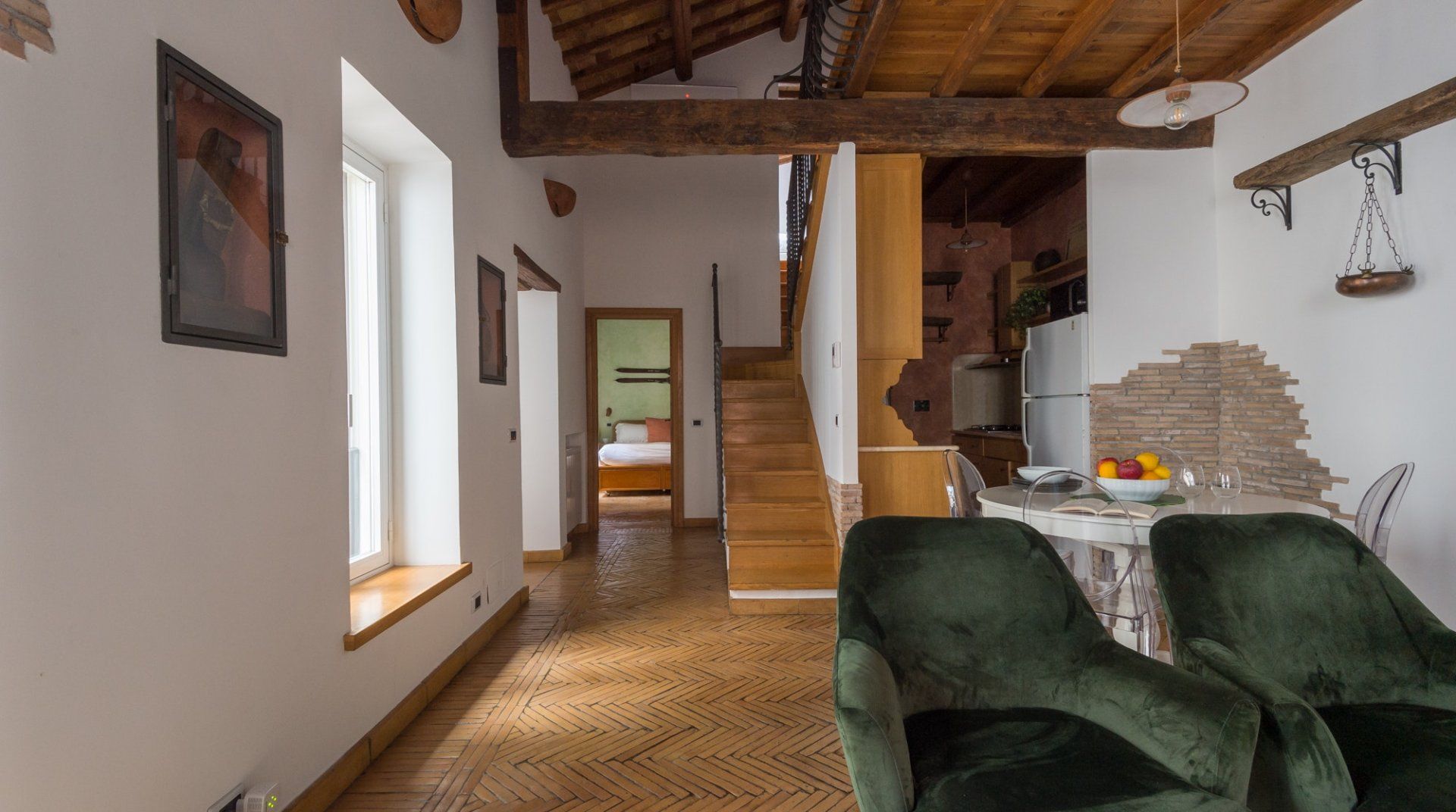 The living room of this central Rome apartment is an instantly welcoming space, with the building's historical features, such as the double-height ceilings, herringbone terracotta tiles, and exposed brickwork, cleverly incorporated into what is otherwise a modern interior. We appreciated some of the hi-tech features, like the accent lighting and the video projector in the loft space that's perfect for a movie marathon. It’s the kind of home that could keep you occupied even if you were housebound, so it almost doesn’t seem fair that so many of the Eternal City's most iconic sights are within such easy reach and will no doubt occupy much of your time. Trevi Foutain, for instance, can be walked to in eight minutes, while the Pantheon is half that distance in the opposite direction.
