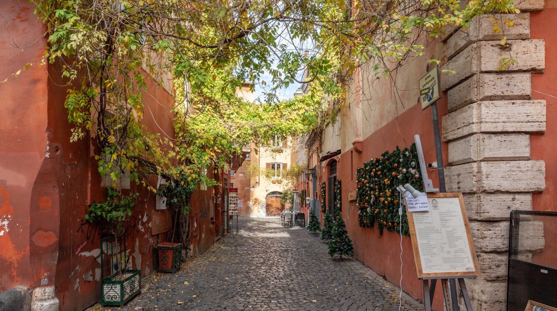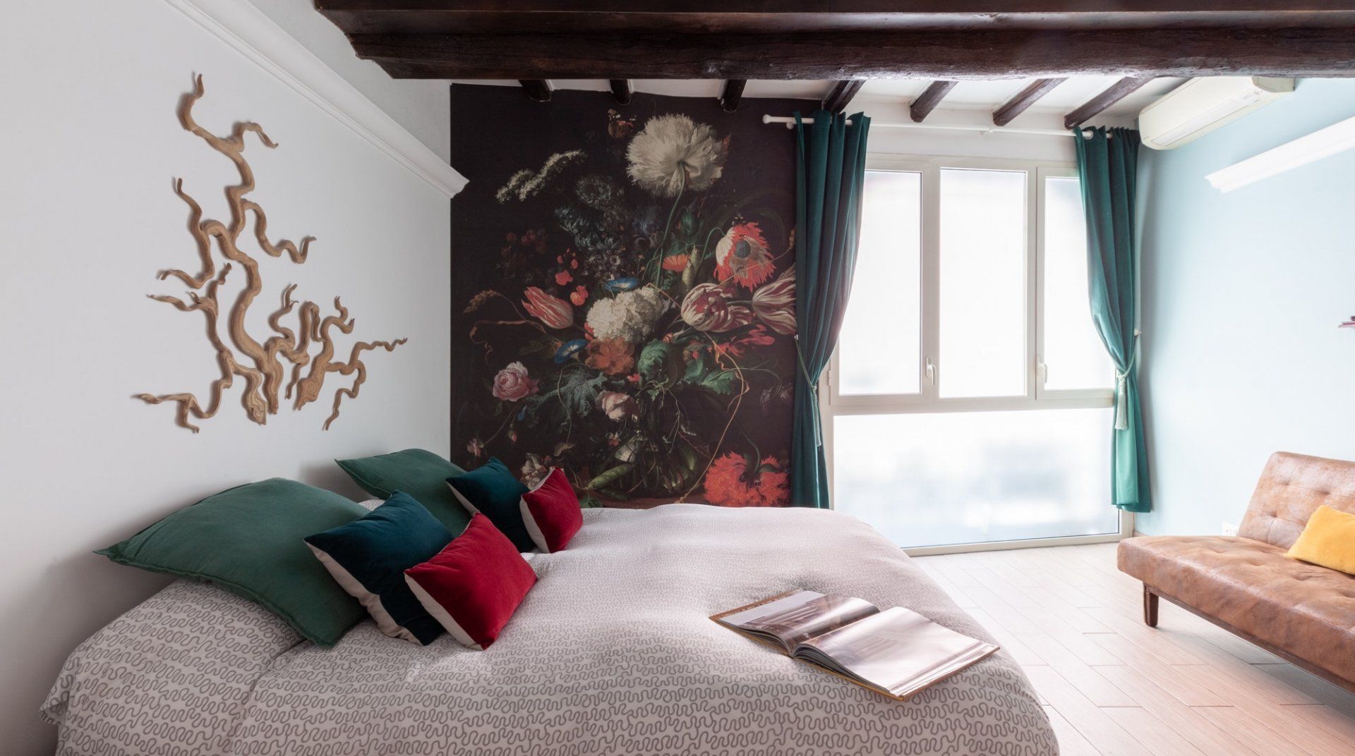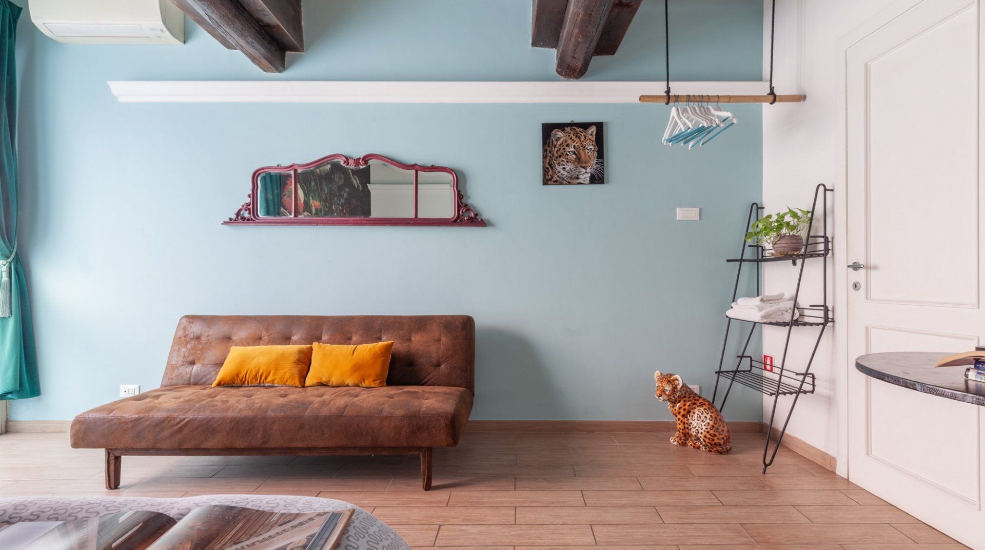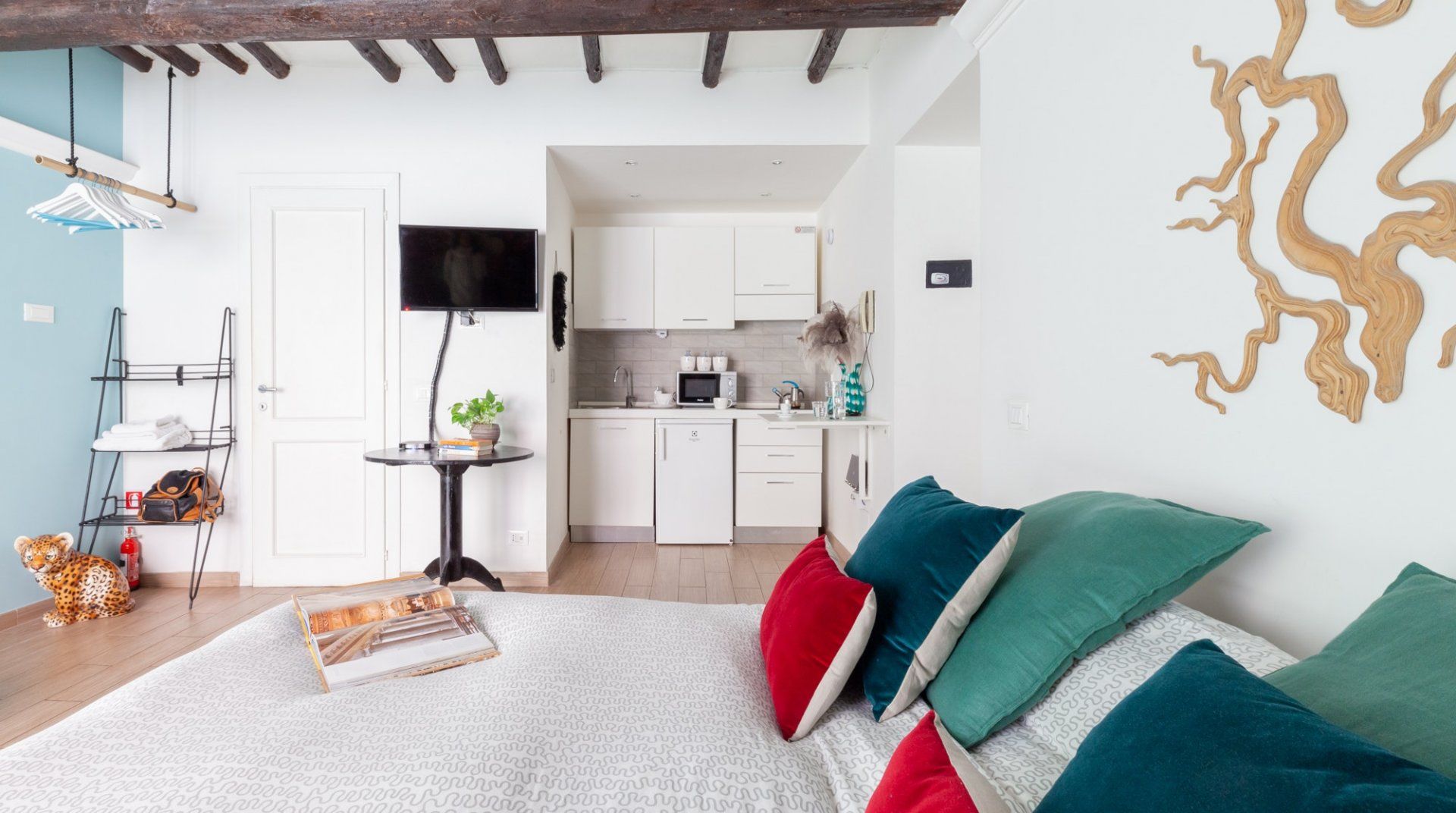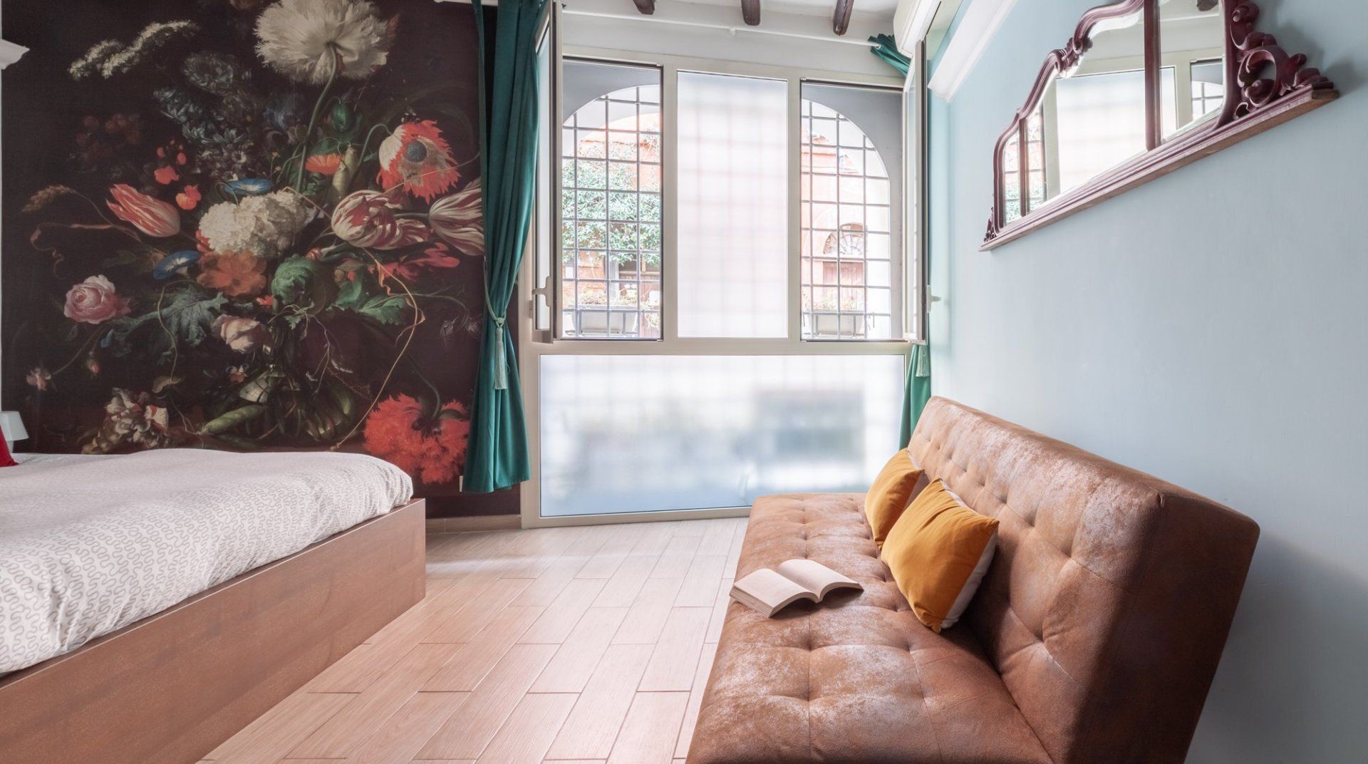 Known as one of the most picturesque neighbourhoods in Rome, Trastevere is overflowing with trendy bars, mouth-watering restaurants, and artisan shops. Vibrant, bohemian and steeped in authenticity, this is the place to be if you want to live like a local, and it's where you'll find this studio apartment. It's about a twenty-minute walk to the Pantheon, and though other landmarks like the Trevi Fountain and the Colosseum are around a half-an-hour away, this excellent location is well worth it. Spend afternoons roaming the pretty-as-a-postcard alleyways and people-watching in the piazzas, then grab an alfresco aperitif in the evenings at one of the world-class trattorias. After a busy day, come home to this snug apartment and relax in style. It has plenty of details that set it apart from the crowd, from the bold wallpaper to the ceramic leopard that greets you as you enter. The wooden beams and large windows hark back to Trastevere's history, and though it may be small, it feels like a cosy home-from-home, perfect for a couple wanting a romantic getaway in the heart of Rome.