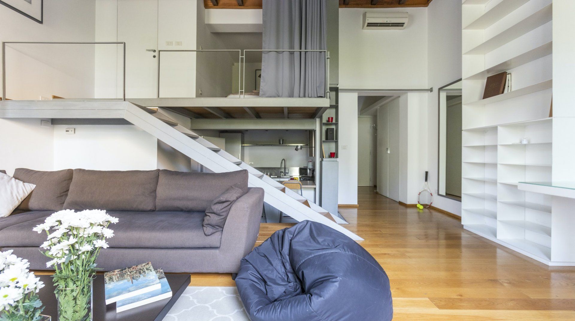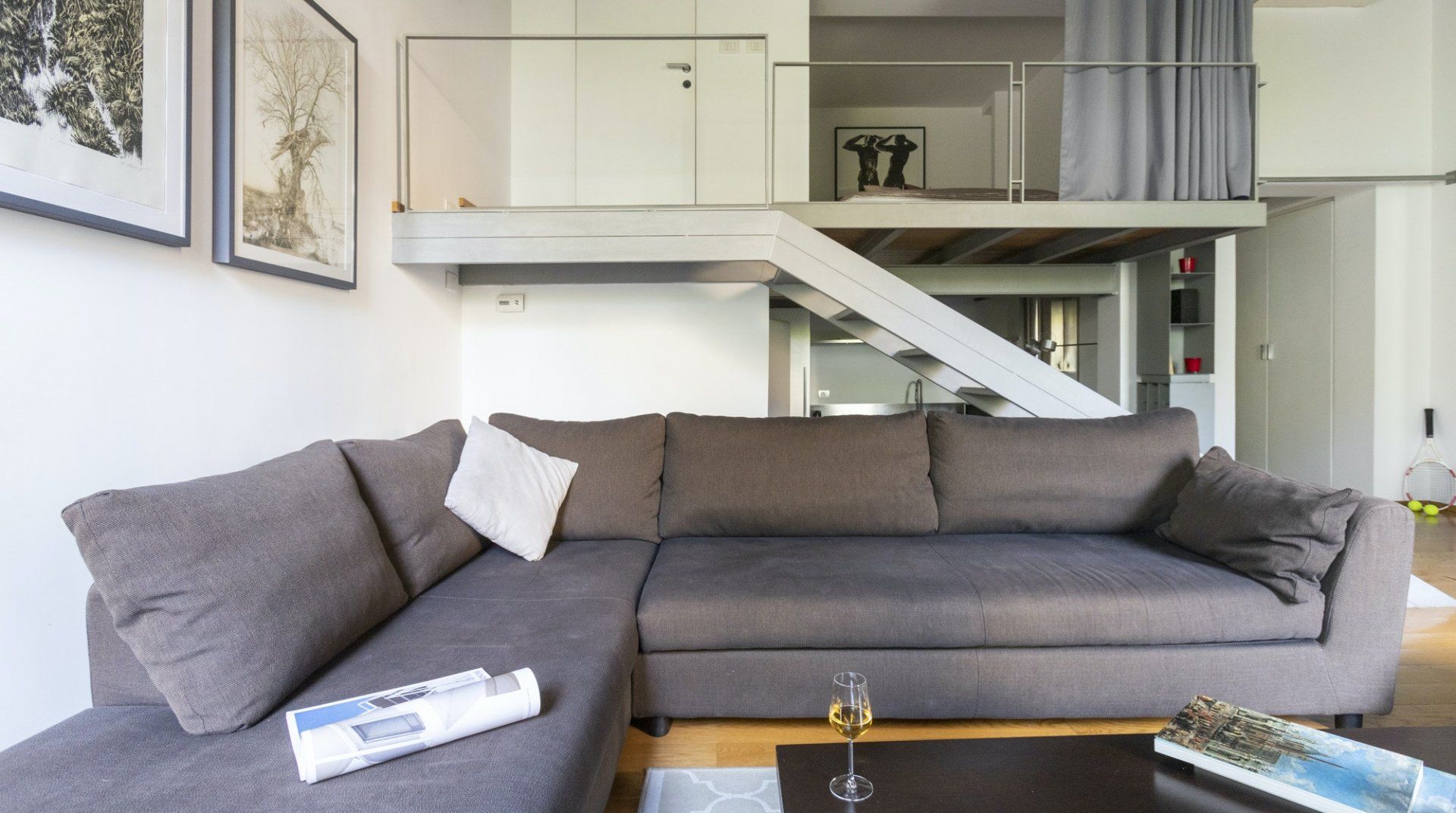 The double-height ceiling and the large windows make this place bright and breezy, which is surprisingly rare for this neighbourhood as the narrow streets and old buildings often conspire to keep sunlight away. There's a sense of history, with beamed ceilings, and a modern twist thanks to the mezzanine bedroom floor and the floating stairs. A comfy sofa takes the prime position in the open-plan living space, with a handy desk area and a contemporary kitchen tucked away under the mezzanine.