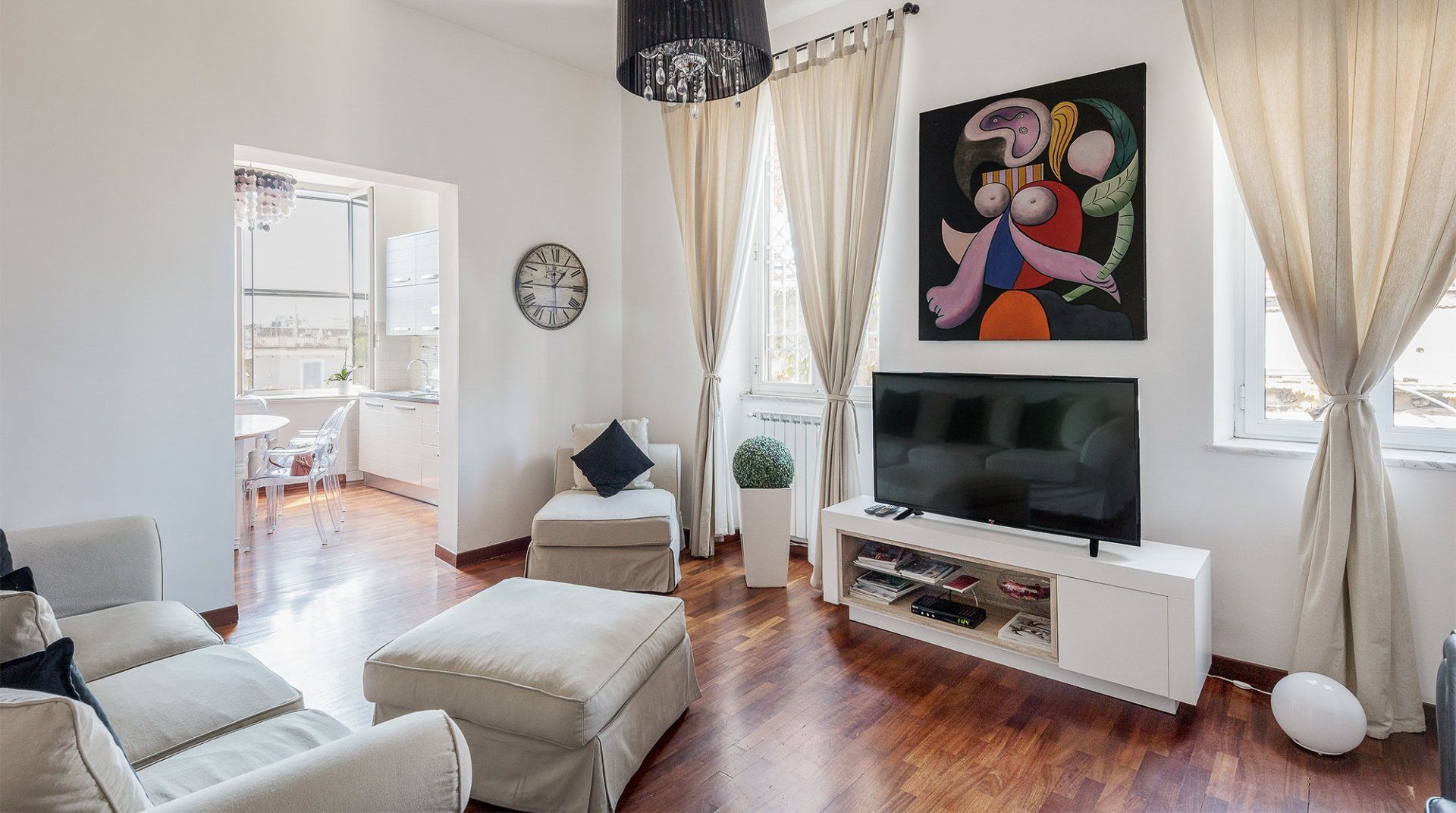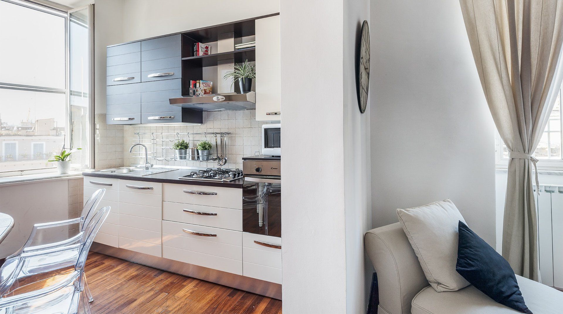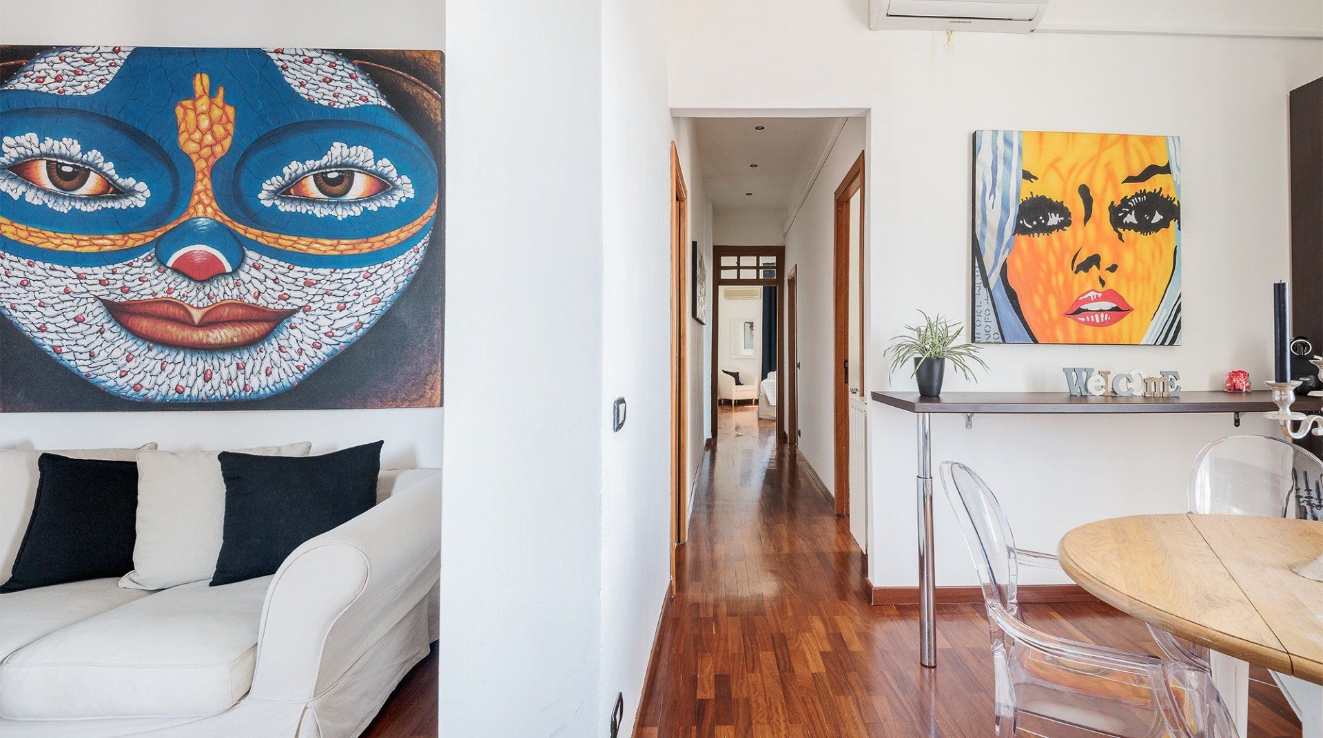 Located on historic Via del Babuino and just a three-minute walk from the Spanish Steps, this bright, colourful home in Rome’s Spagna neighbourhood is the perfect base for those looking to be in the heart of the city’s action. Decked out in vibrant pieces of art and an eclectic blend of furnishings, this apartment is full of character and creative flair. We love the Chesterfield-style sofa in the living room, the see-through dining room chairs and the large windows that proffer views over Rome’s tiled rooftops towards the Vatican. However, our favourite spot is the master bedroom’s private balcony, ready to welcome mornings over coffee while taking in the buzz of the street below. After a refreshing soak under the rainfall shower, or an at-home massage organised by your host, set out to see the sights. Aside from the Spanish Steps that are a stone’s throw away, you’re just a five-minute walk from Villa Medici, while just under a fifteen-minute stroll will bring you to the Trevi Fountain and the Piazza Navona. After a day of sightseeing, sample one of the countless trattorias along your street (the host is happy to make a booking for you) or sit down to an intimate meal at home. End the night with a spritz on the balcony, before retreating to the comfortable bedrooms for a dreamy night’s sleep.