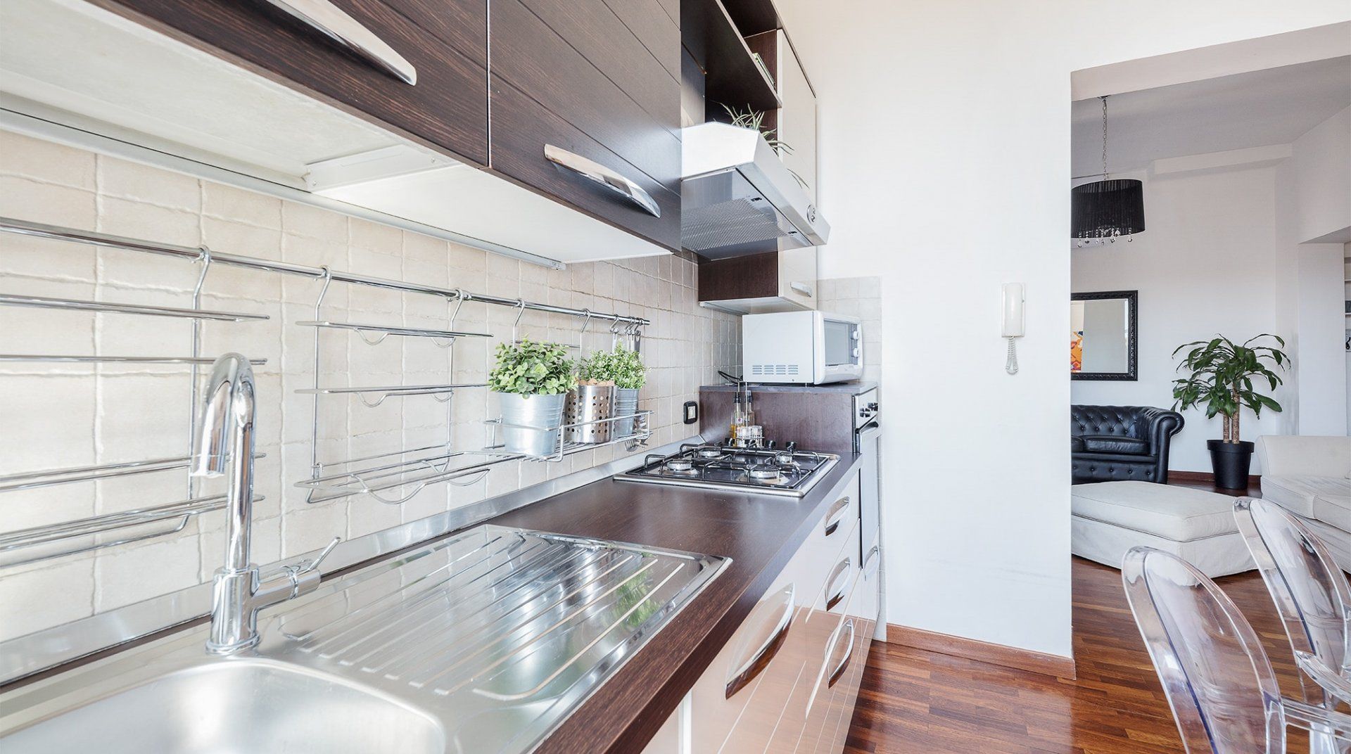*The kitchen, while sleek, is not very big