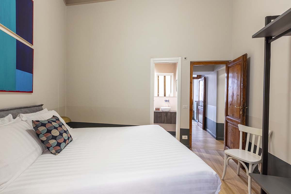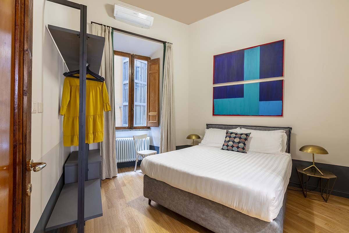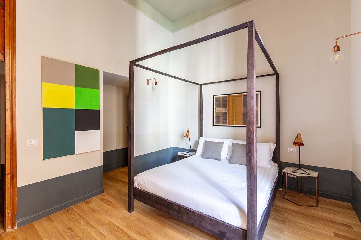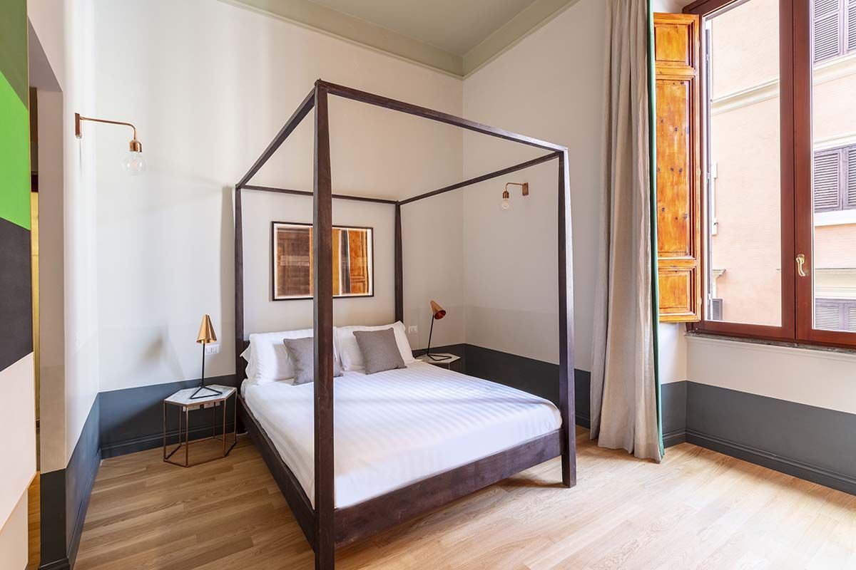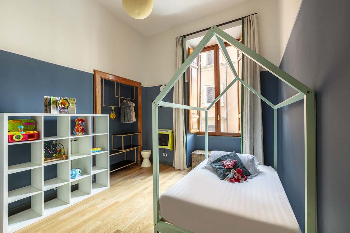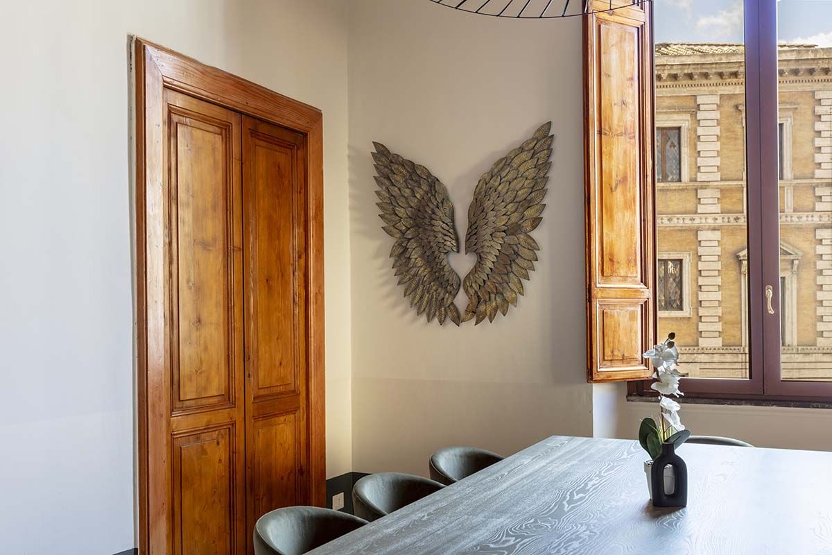 Just a few steps away from the hive of activity that is the Campo deβ Fiori square and its market lies Starry Eyes, a spread-out apartment with ample space for large groups of friends and friends. Brightly lit, the tall windows overlooking Corso Vittorio Emanuele and Piazza San Pantaleo let in plenty of light throughout the day and fill the space with fresh air. Step out onto the corner balcony as you sip your morning coffee and watch the world go by. We particularly love the antique dining table β be sure to share an Italian feast of dreams when it comes to mealtimes. Despite the home's central location, you'll find peace and quiet here, making it the perfect escape to return to after a day of pizza-fuelled sightseeing. Having said that, you won't have to venture far to discover the treasures of Rome β as you'll be stationed just 500 metres away from Piazza Navona and 600 metres away from the Pantheon.