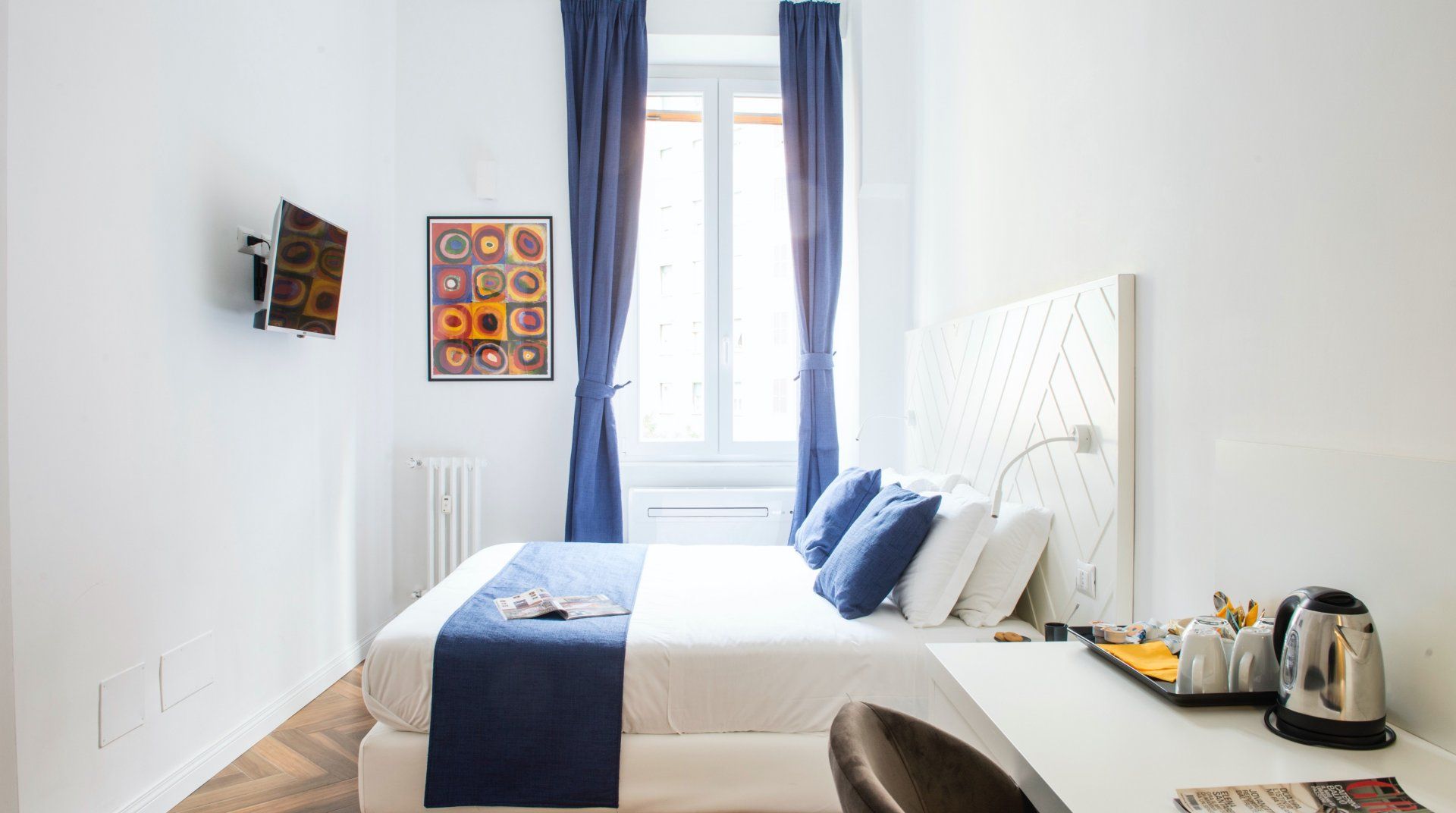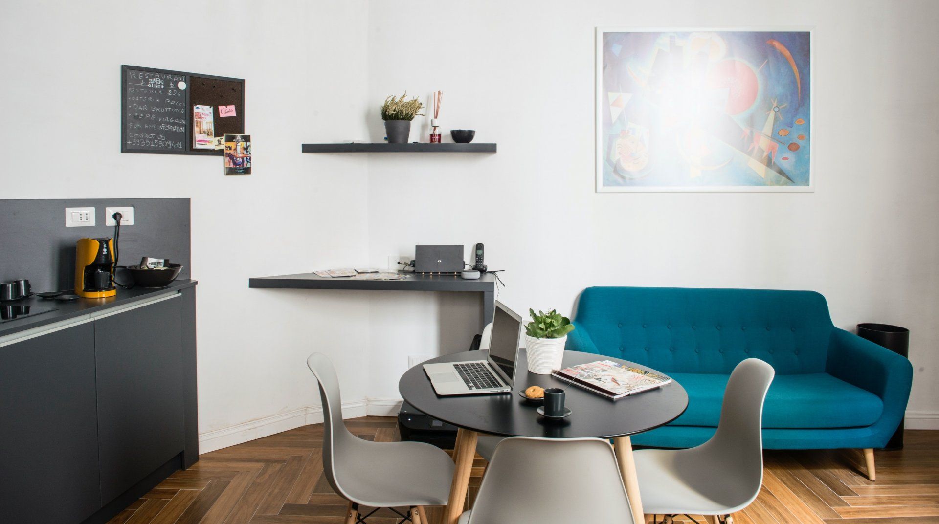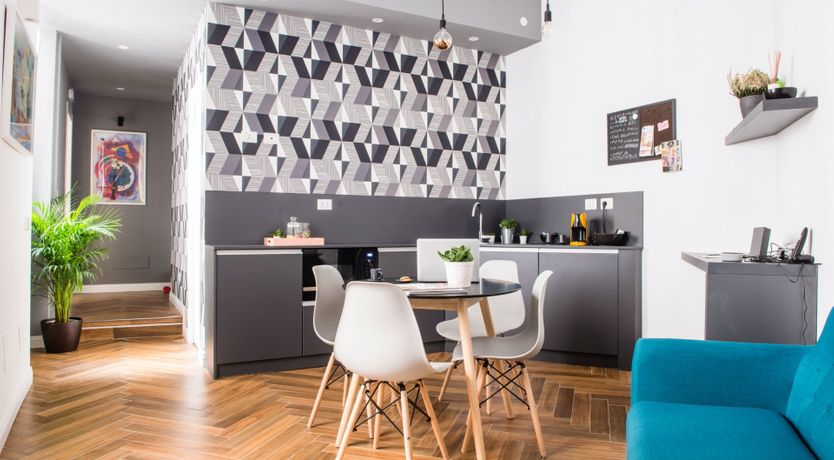 Housed in a typically Italian, early 20th-century building, this apartment is the ideal bolthole in Rome for a group or family. Designed as a guesthouse, it has hotel-level comfort, like soundproofing and en-suites in every bedroom. Each bedroom also comes with a dedicated workspace, and there’s a fifth desk in the open-plan living room. The decor has a bit of mid-century flair with parquet floor, a turquoise sofa and geometrically patterned wallpaper. You’re in a quieter suburb of Rome here, away from the hustle and bustle of the centre. Streets are filled with local trattoria and cosy bars, but the main sights of the city are an easy metro ride away from nearby Re di Roma station.
