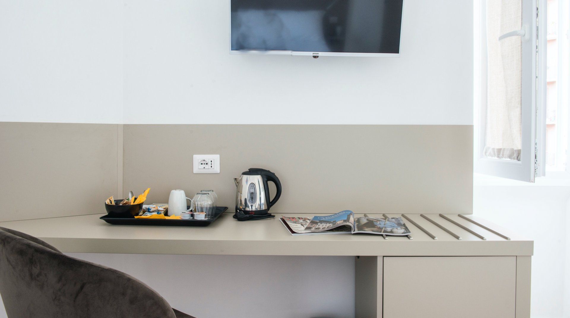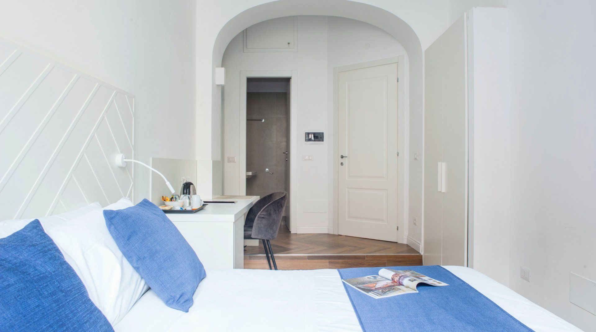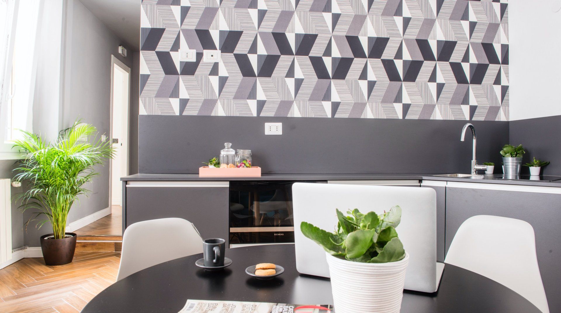 Housed in a typically Italian, early 20th-century building, this apartment is the ideal bolthole in Rome for a group or family. Designed as a guesthouse, it has hotel-level comfort, like soundproofing and en-suites in every bedroom. Each bedroom also comes with a dedicated workspace, and there’s a fifth desk in the open-plan living room. The decor has a bit of mid-century flair with parquet floor, a turquoise sofa and geometrically patterned wallpaper. You’re in a quieter suburb of Rome here, away from the hustle and bustle of the centre. Streets are filled with local trattoria and cosy bars, but the main sights of the city are an easy metro ride away from nearby Re di Roma station.