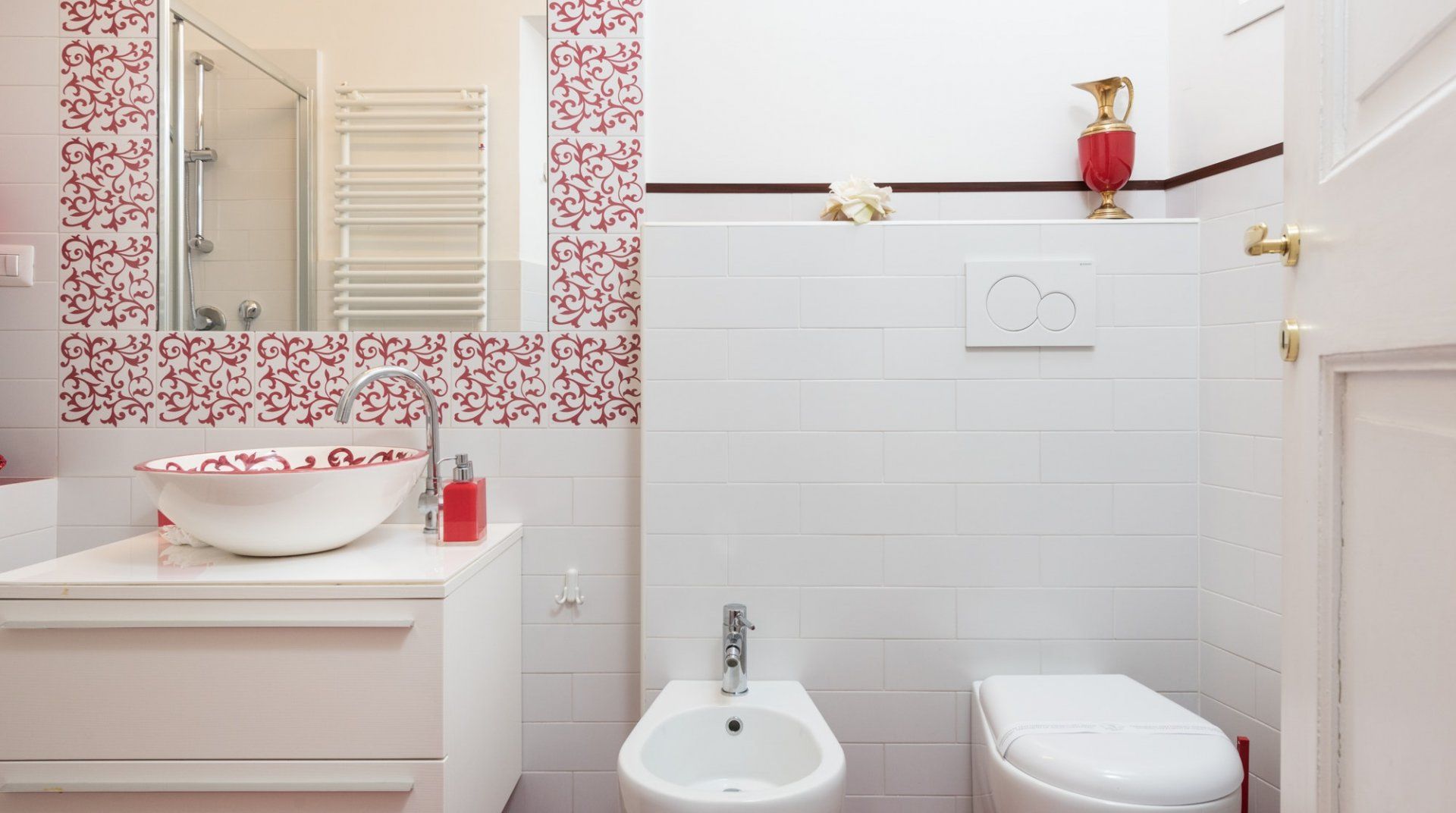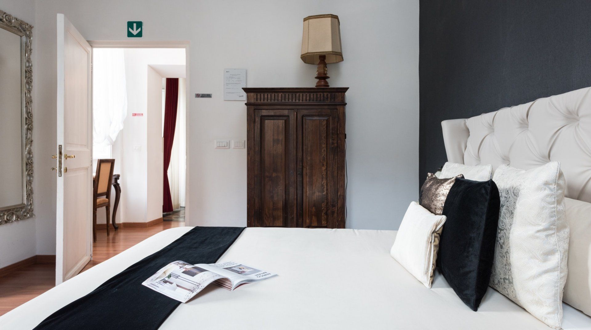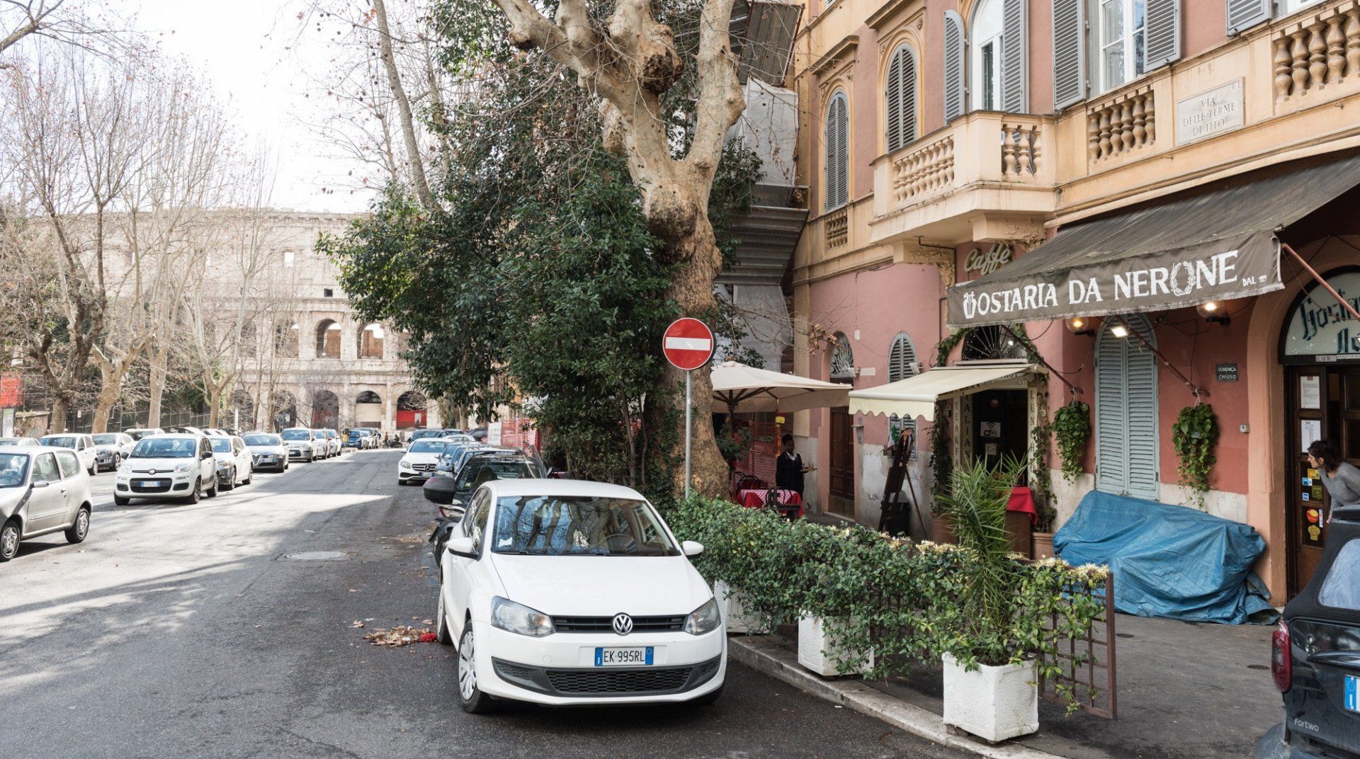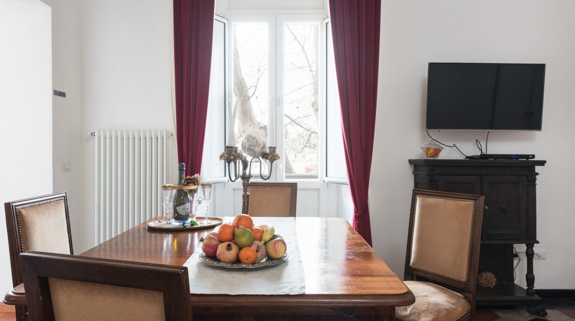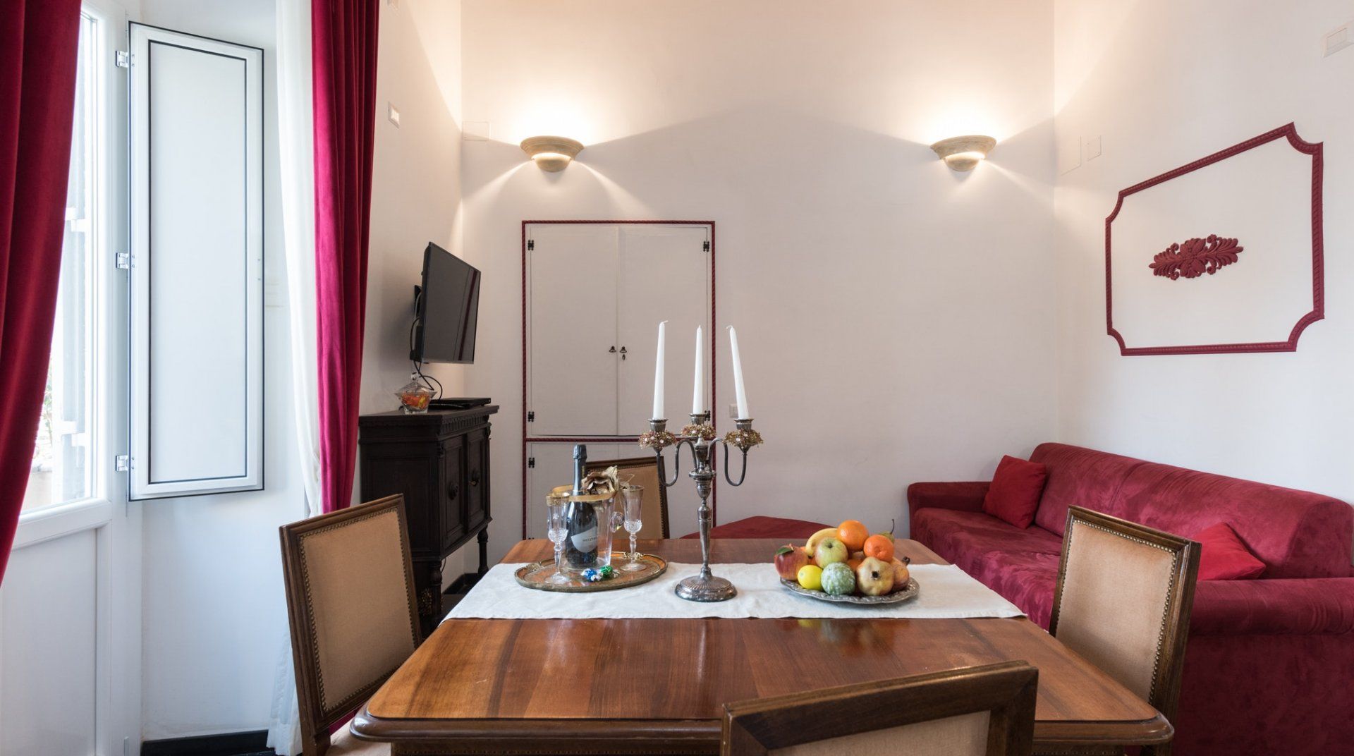 In among the original hills of Rome, The Bathhouse is completely surrounded by history. On one side, the Nero’s infamous palace – the Domus Aurea – and on the other, the Colosseum and the Imperial Forums. Its position alone would sell, but the flat itself is not underwhelming. It has lovely views, and the kitchen is pretty big for a place of its size. There’s an antique desk in the corner, which although not making as much sense as a breakfast table, is far prettier.
