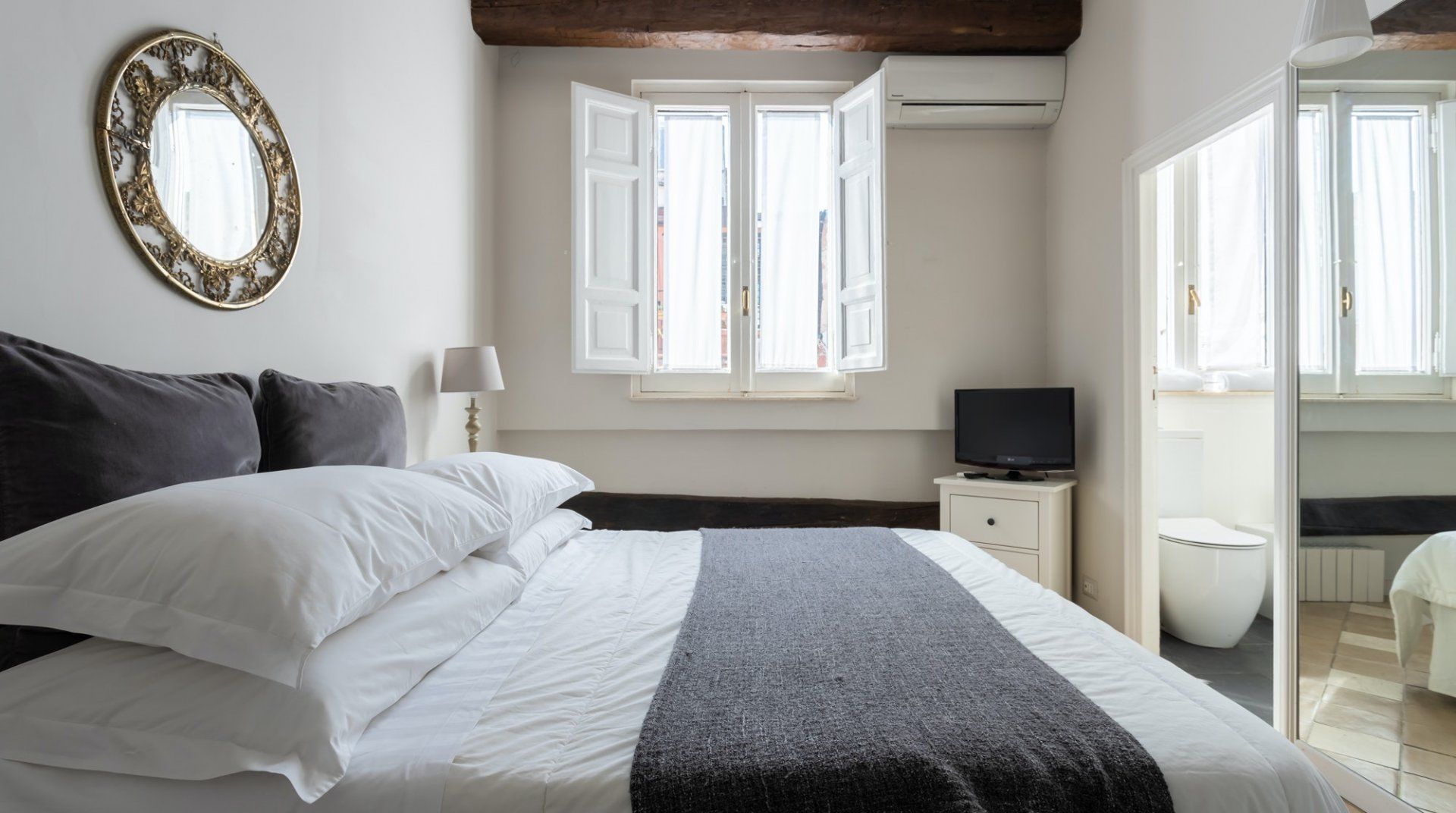 The Roman Splendor is between Piazza di Spagna and Piazza del Popolo, giving it the sort of advantage most flats can only dream of. For seeing the sights, there is no better location, but other people have noticed that, so be prepared for a lot of tourists streaming past your front door. Inside, the place is very pretty – most of the design is quite modern, but it’s juxtaposed with the original structural features, such as the fireplace or the ceiling beams. Then there’s the view from the panoramic terrace, which speaks for itself.