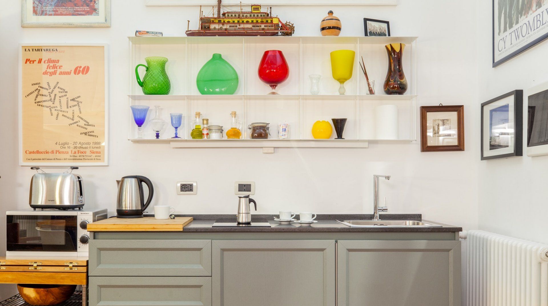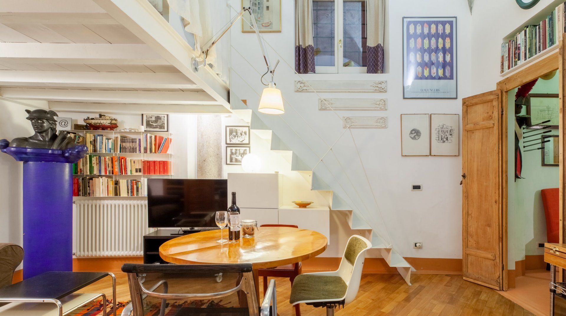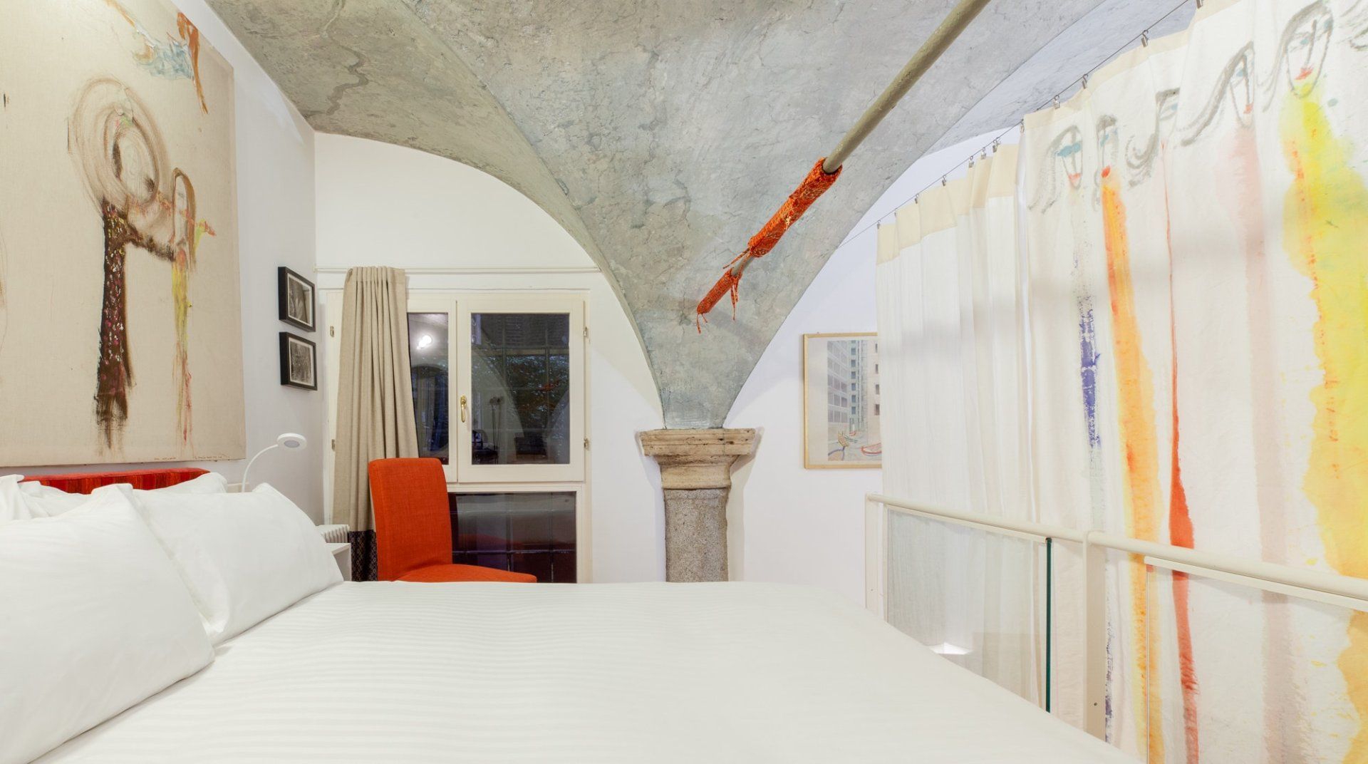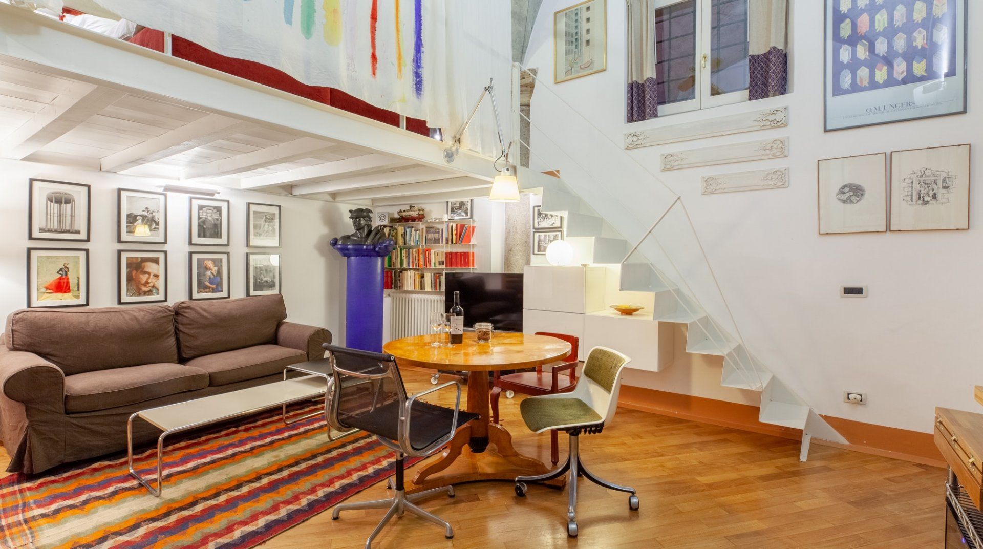 Filled to the brim with unique artwork and quirky trinkets, this playful apartment embraces maximalism like there's no tomorrow. The apartment is full of colour and a sense of fun, though it's fair to say it won't appeal to lovers of neutral tones and pared-back decor. It's in an old building on one of the more characteristic streets in the charming Regola district. Several details remind you of that, such as the stone arches, vaulted ceilings and the ornate entryway at street level. Step out onto the cobbles and you're a five-minute walk from the lively Campo de' Fiori, seven minutes from the baroque beauty of Piazza Navona, and just over twenty minutes from the labyrinthine streets of trendy Trastevere.