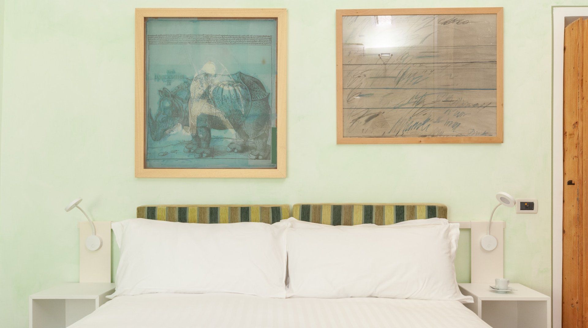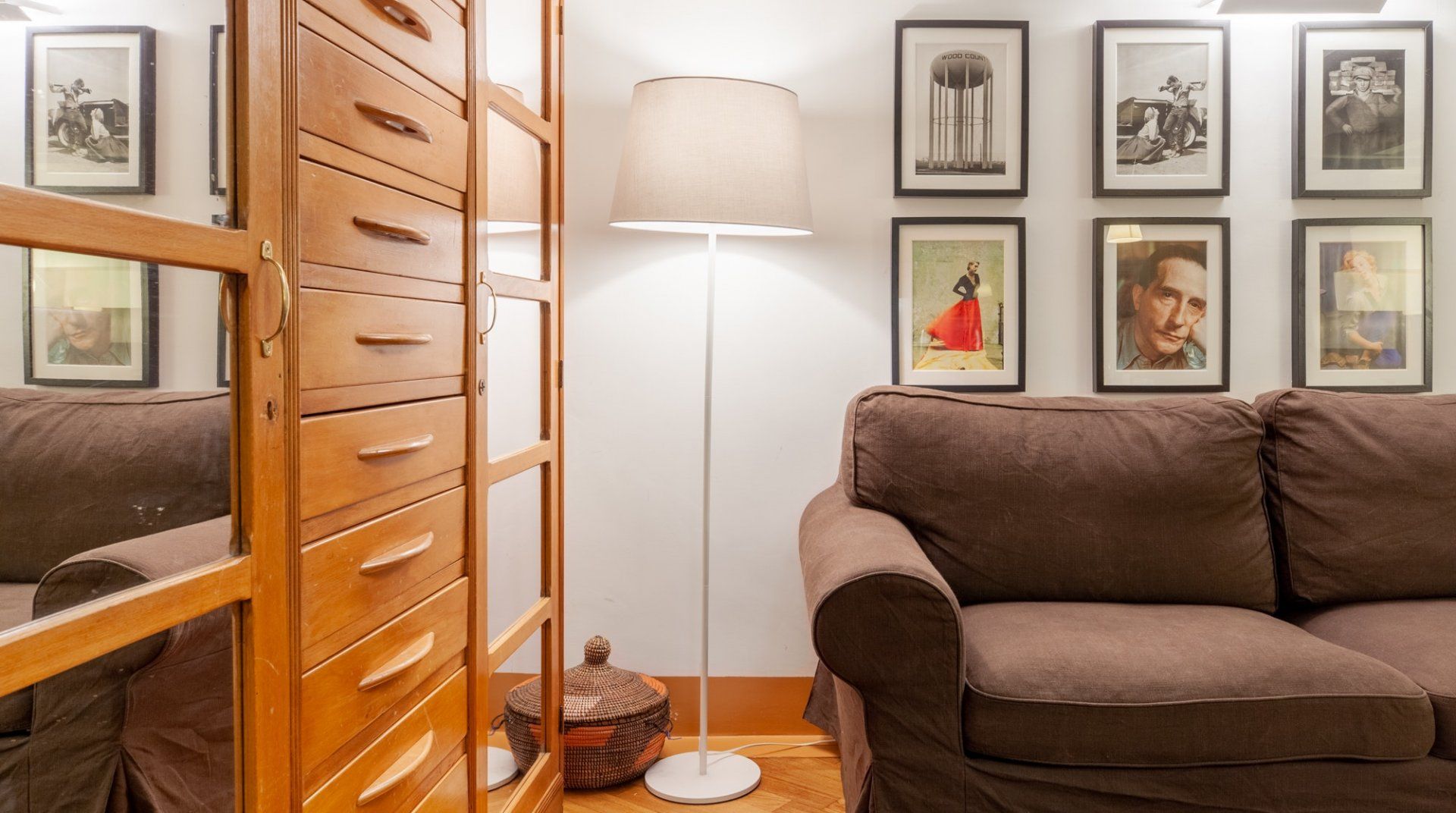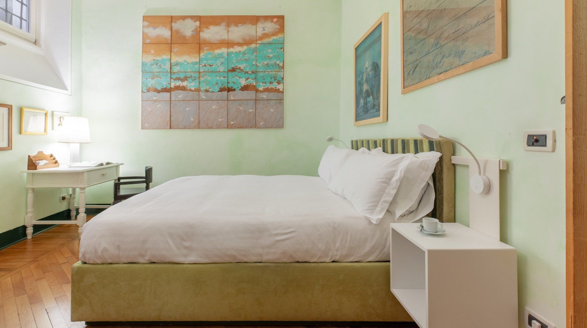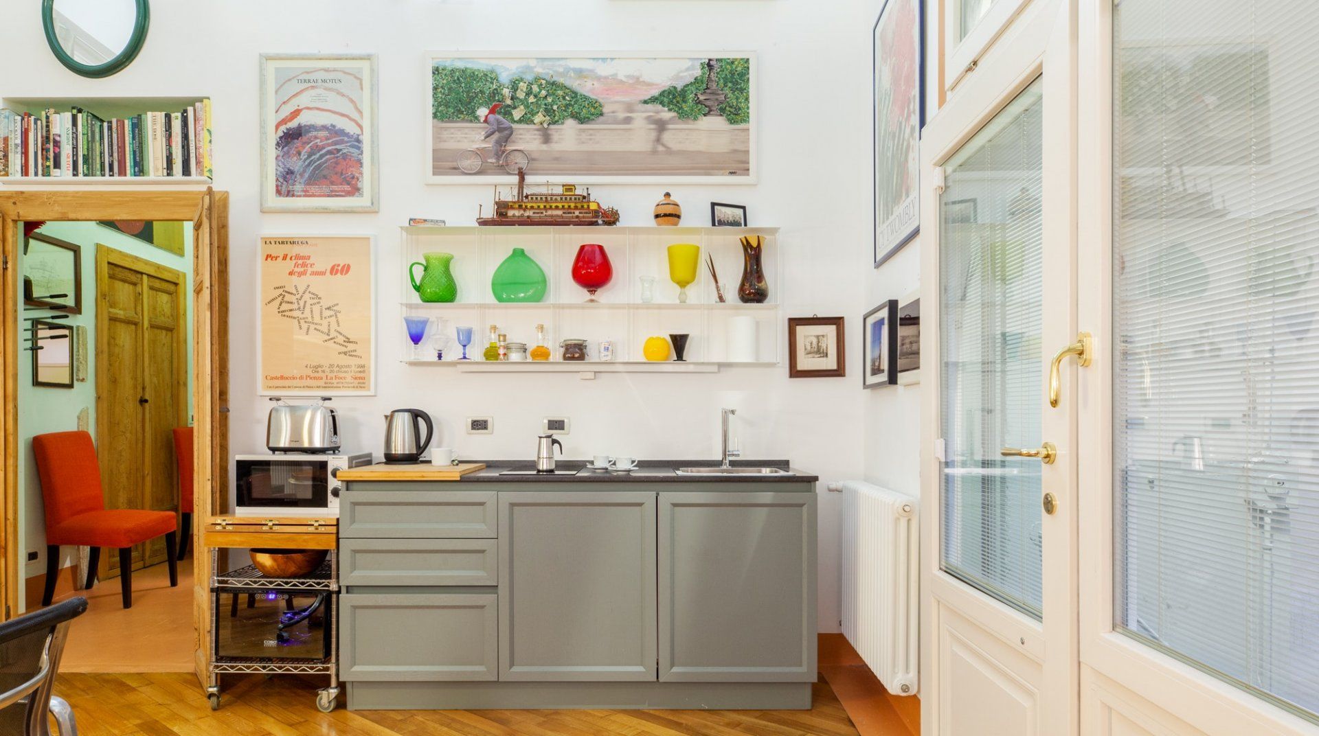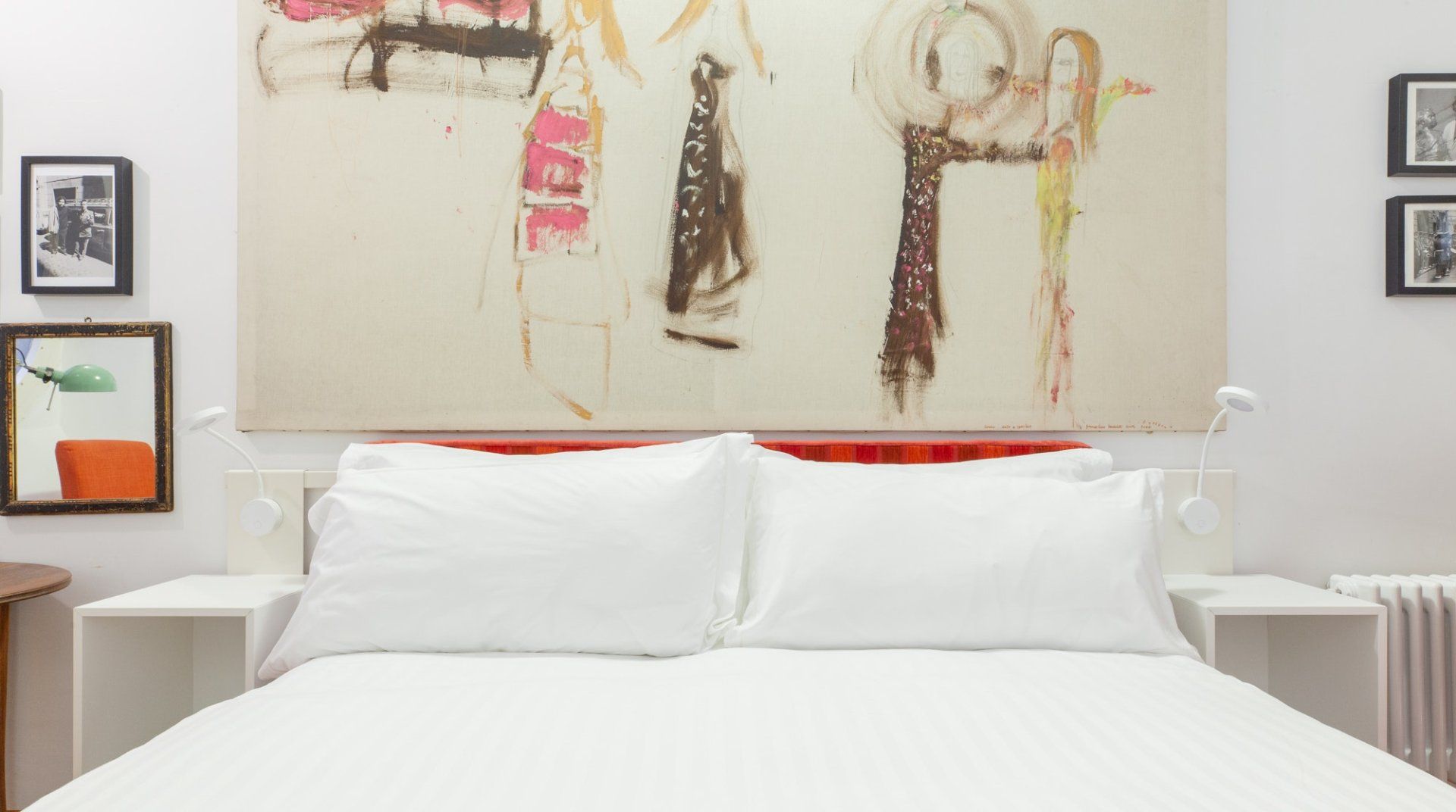 Filled to the brim with unique artwork and quirky trinkets, this playful apartment embraces maximalism like there's no tomorrow. The apartment is full of colour and a sense of fun, though it's fair to say it won't appeal to lovers of neutral tones and pared-back decor. It's in an old building on one of the more characteristic streets in the charming Regola district. Several details remind you of that, such as the stone arches, vaulted ceilings and the ornate entryway at street level. Step out onto the cobbles and you're a five-minute walk from the lively Campo de' Fiori, seven minutes from the baroque beauty of Piazza Navona, and just over twenty minutes from the labyrinthine streets of trendy Trastevere.