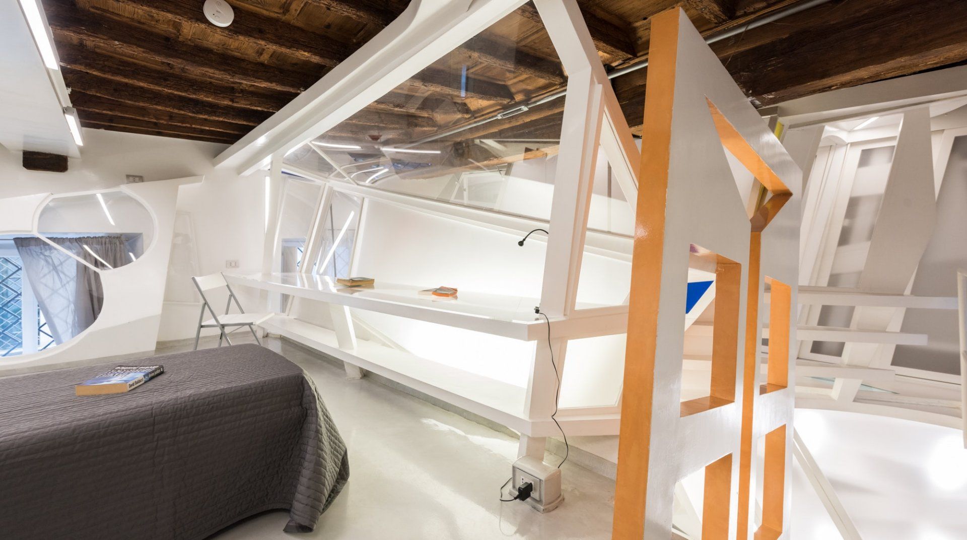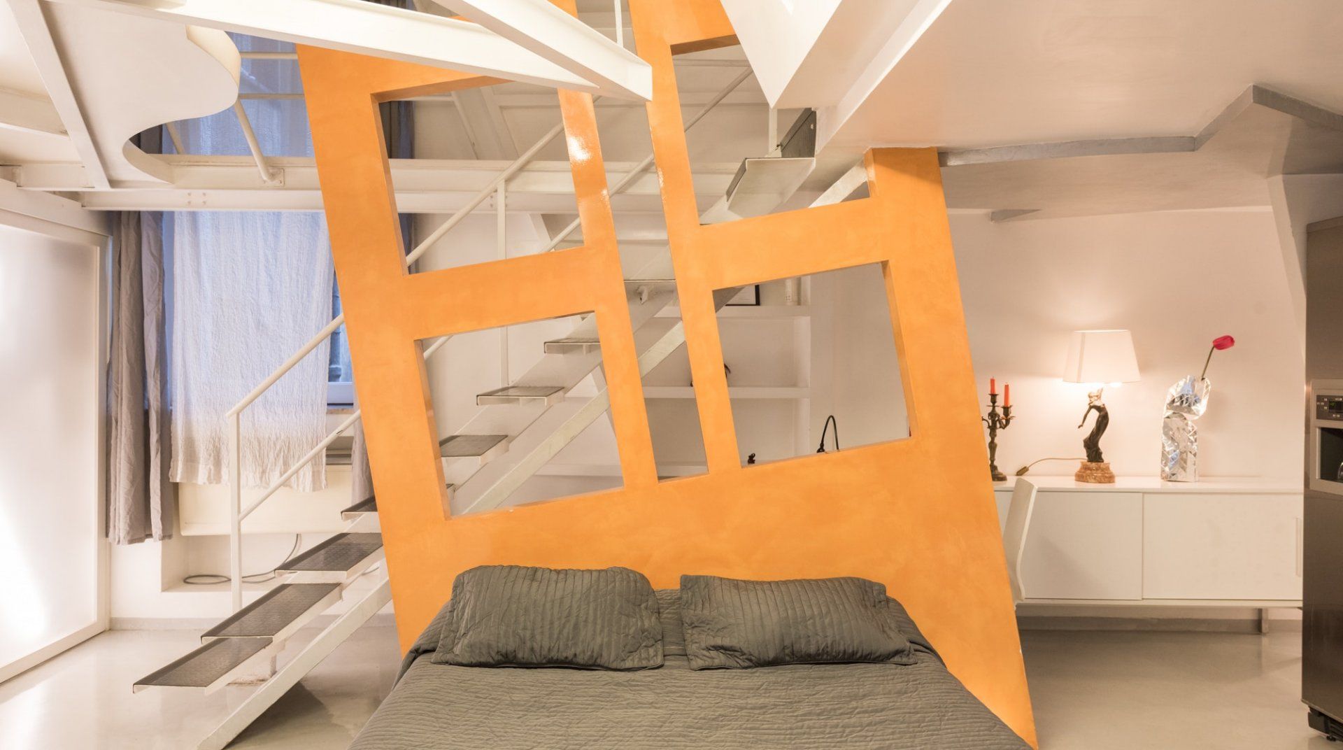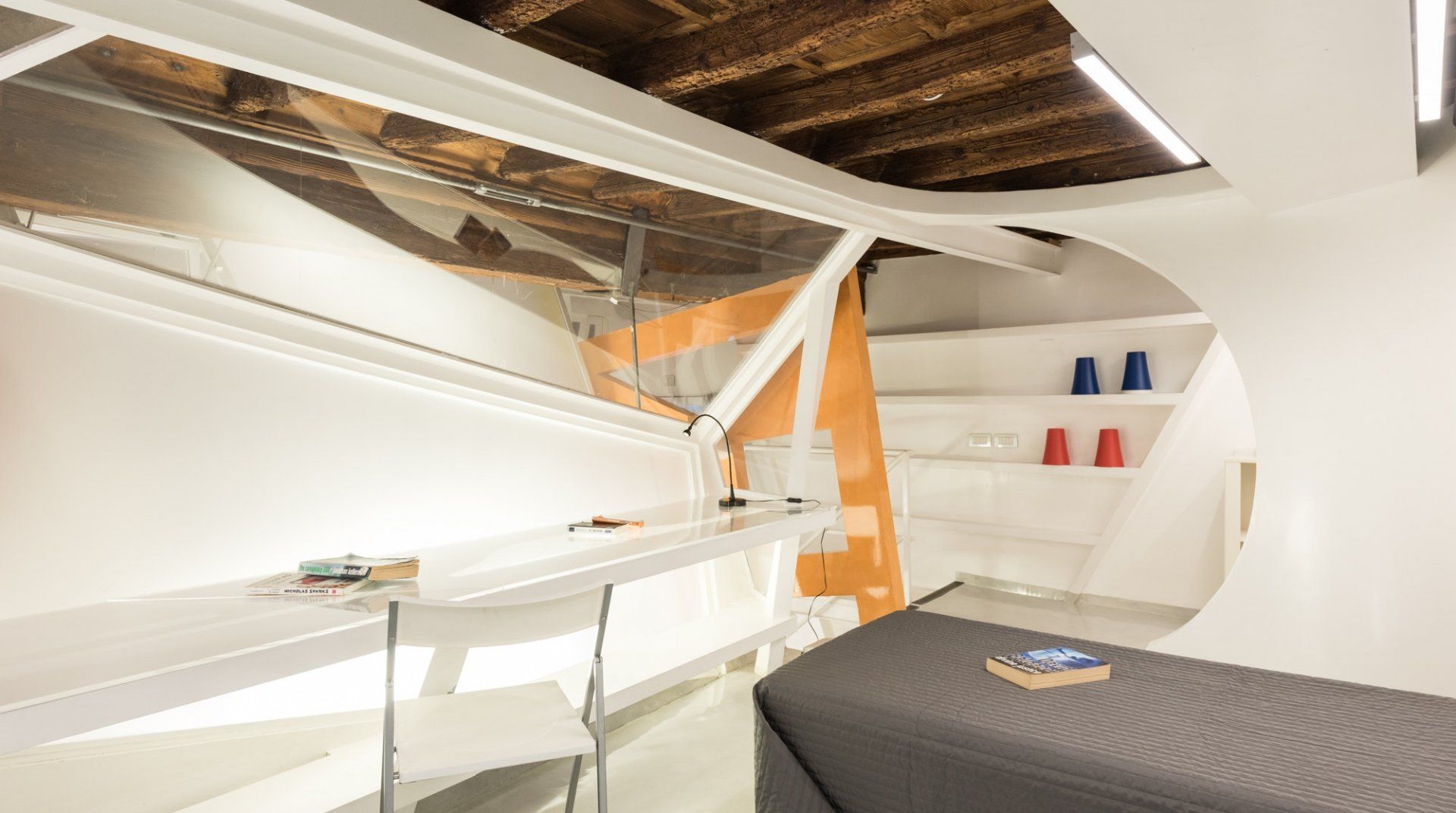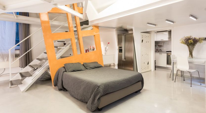 There's much more than meets the eye when it comes to this Roman retreat. Behind its historic facade lies a striking modern apartment over two levels, recently renovated and so quirky you'll want to start taking photos before you've unpacked. Location-wise, it couldn't get much better, with Piazza Navona and the Pantheon within an easy ten-minute walk. You'll enter through a traditional shared courtyard, bursting with historic features, but as soon as you open the front door you'll spot the complex, architect-designed interior – complete with structural steels, a clever mezzanine level in the building's loft and all sorts of surprising features. Think glass sections in the mezzanine floor, a metal staircase, studio workspace, angular windows and space-age lighting. But it's practical too, with everything you'll need for a comfortable stay.