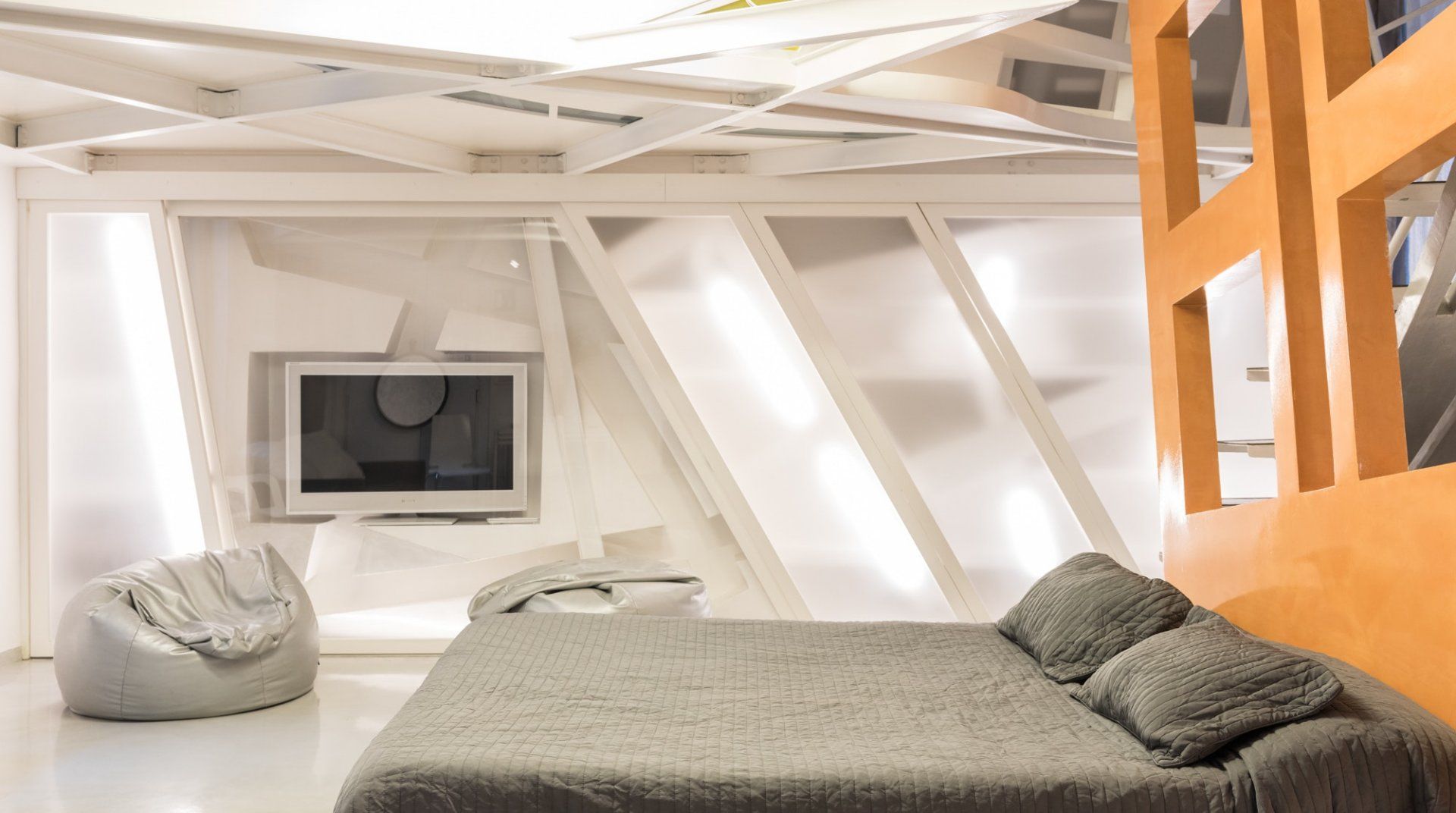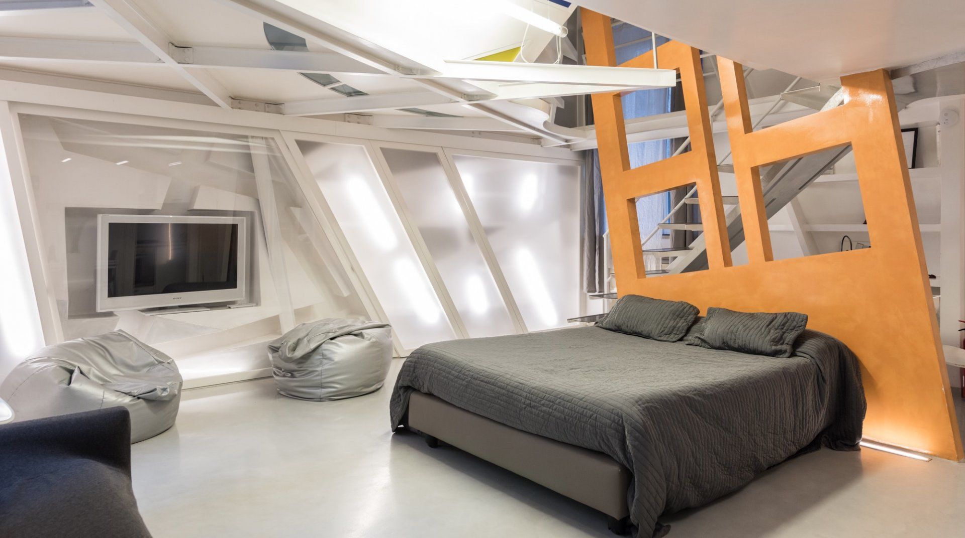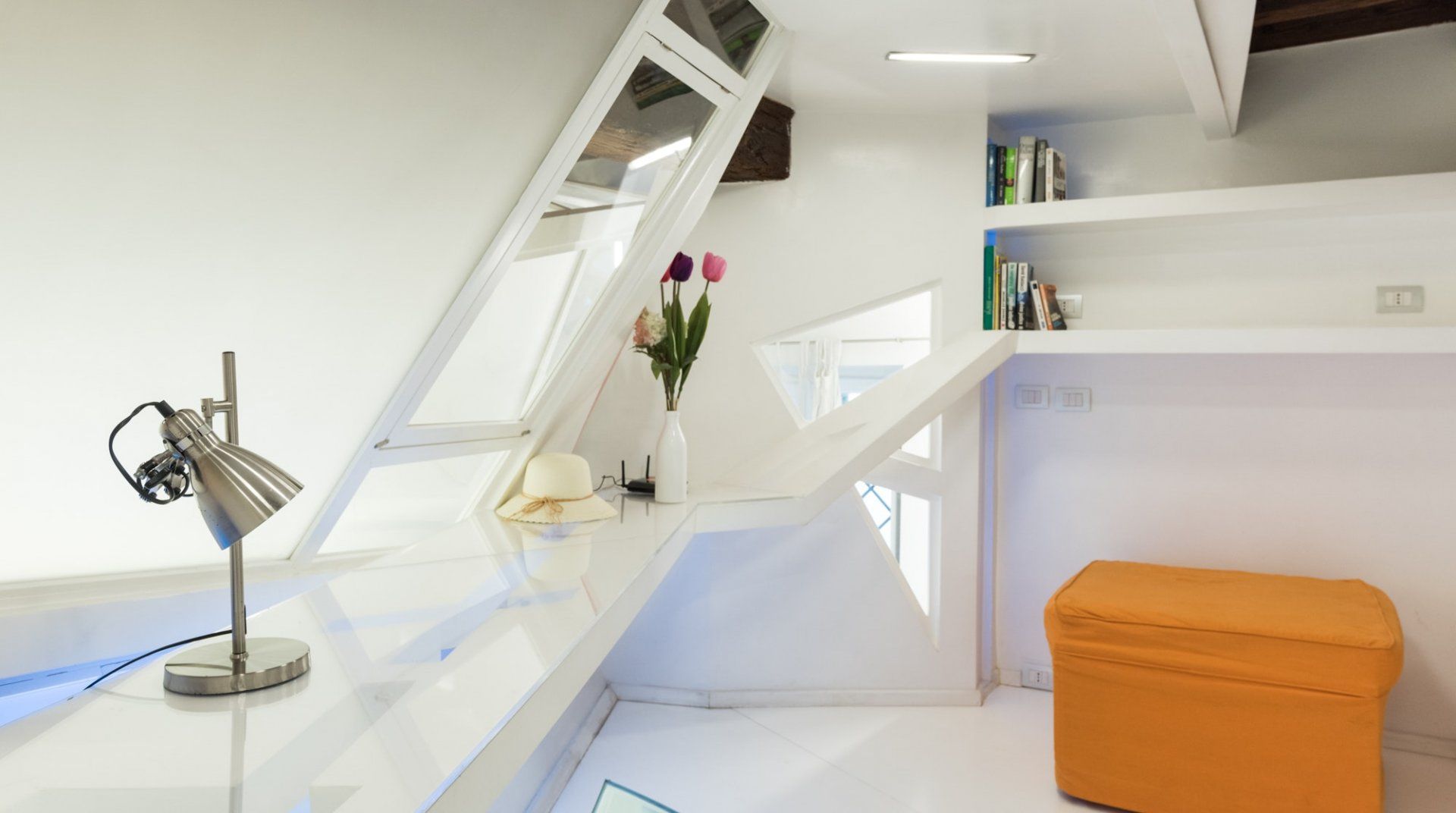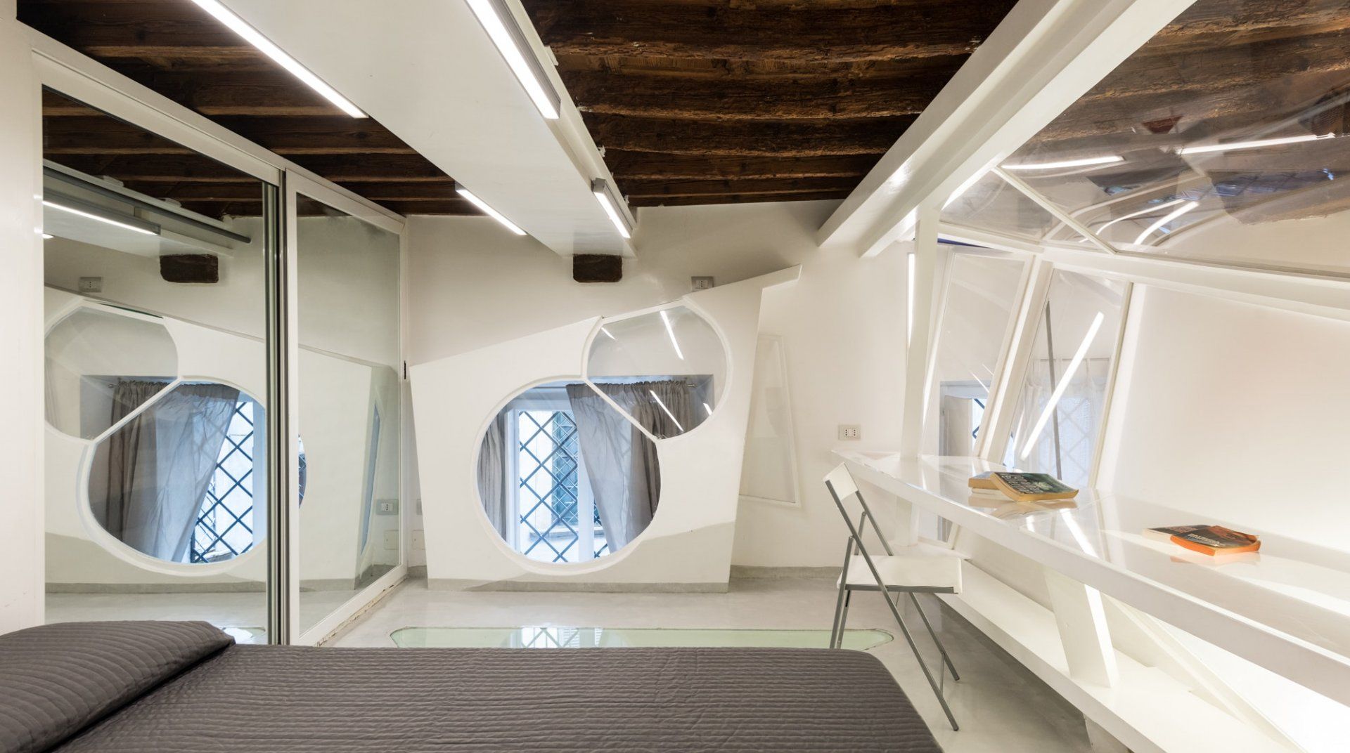 There's much more than meets the eye when it comes to this Roman retreat. Behind its historic facade lies a striking modern apartment over two levels, recently renovated and so quirky you'll want to start taking photos before you've unpacked. Location-wise, it couldn't get much better, with Piazza Navona and the Pantheon within an easy ten-minute walk. You'll enter through a traditional shared courtyard, bursting with historic features, but as soon as you open the front door you'll spot the complex, architect-designed interior – complete with structural steels, a clever mezzanine level in the building's loft and all sorts of surprising features. Think glass sections in the mezzanine floor, a metal staircase, studio workspace, angular windows and space-age lighting. But it's practical too, with everything you'll need for a comfortable stay.