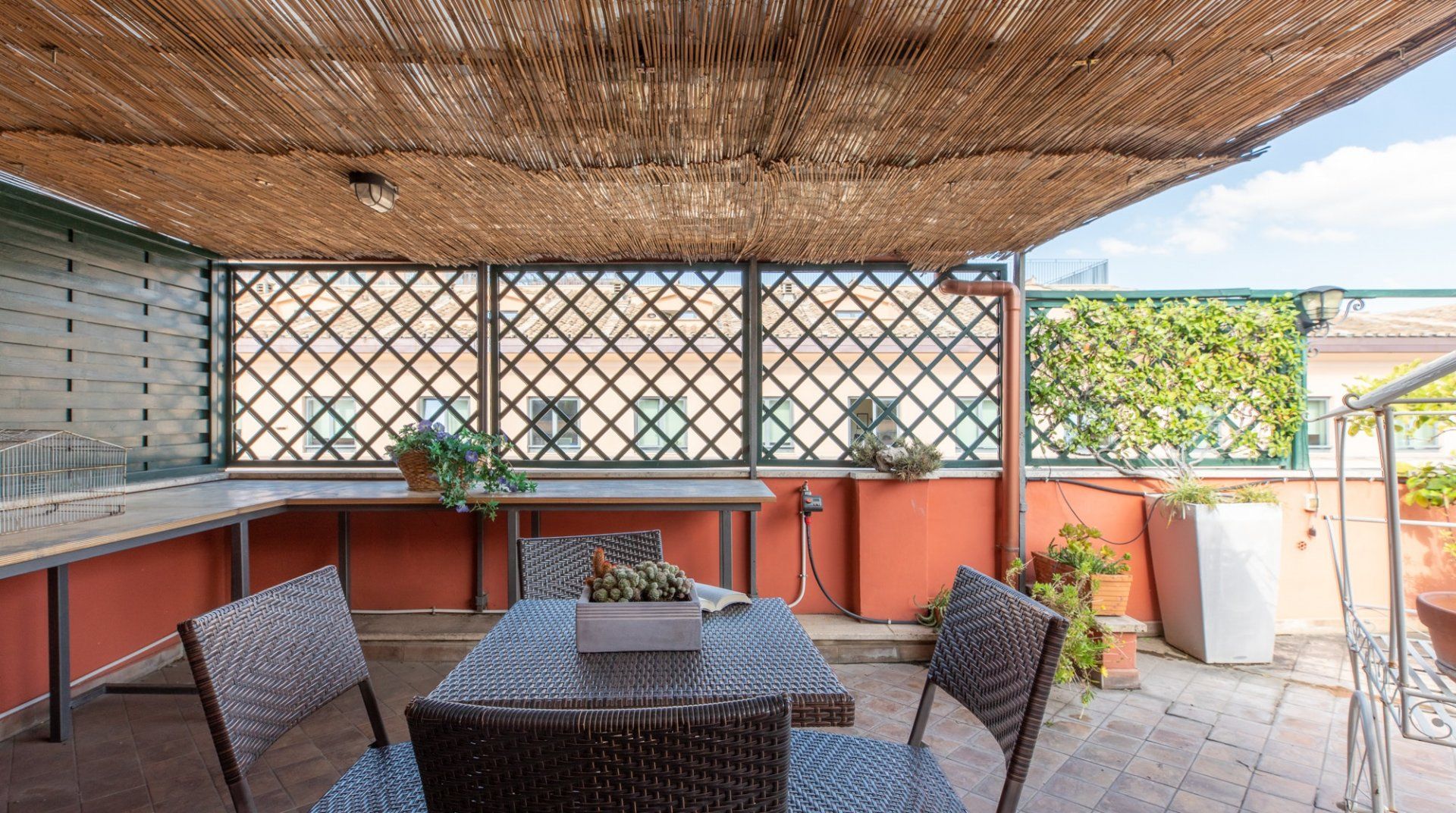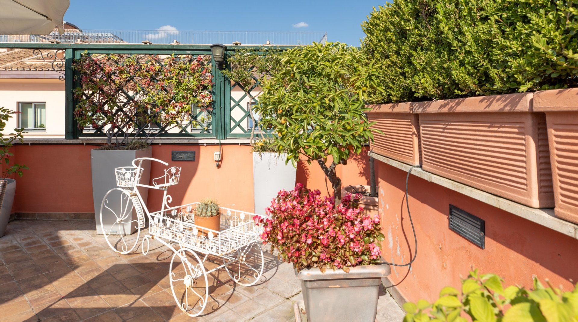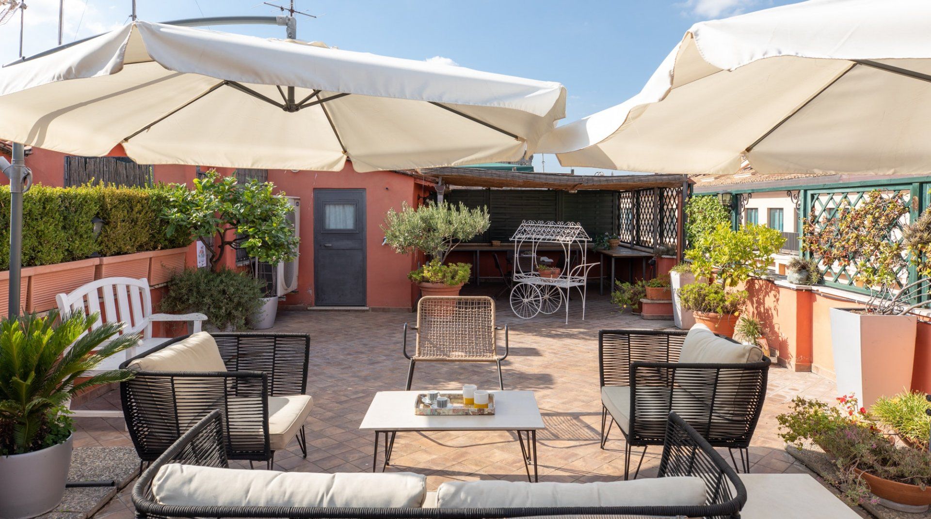 This apartment may be in the heart of Rome, but there’s something distinctly country-chic about the decor. Period pieces – dressers, doors and the kitchen table – are all rough white-washed and feel rustic. The sound system is vintage, and the armchairs in the living room are upholstered in gloriously kitsch floral patterns. The jewel in the crown of the apartment is the sprawling outdoor terrace, which has sofas in sunny spots for a dose of vitamin D, and shaded nooks under parasols for when the heat gets too much. The bamboo pergola covered a couple of outdoor gas hobs, so you can cook and dine alfresco. Flowers and pot plants bloom for every corner and climb trellises for a bit of privacy. If you want to know just how central you are, just head out to the downstairs balcony and spot the Colosseum at the end of your street.