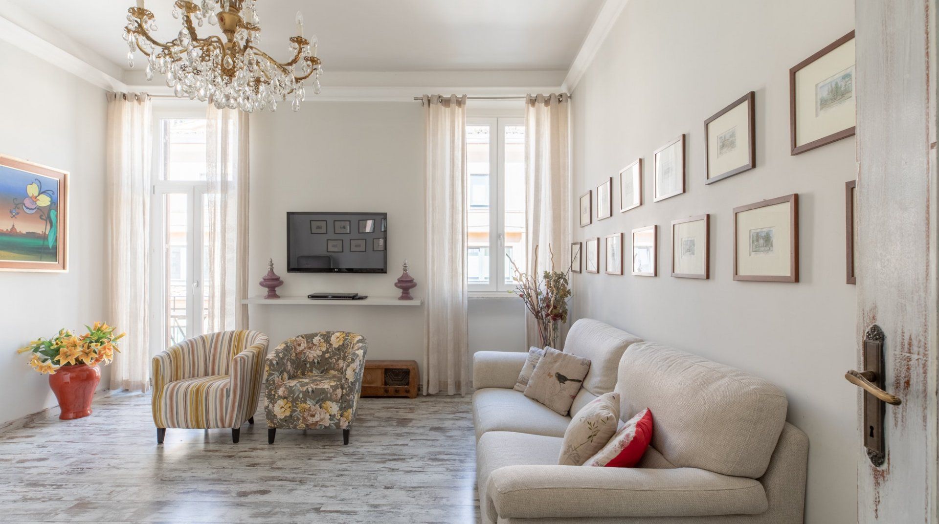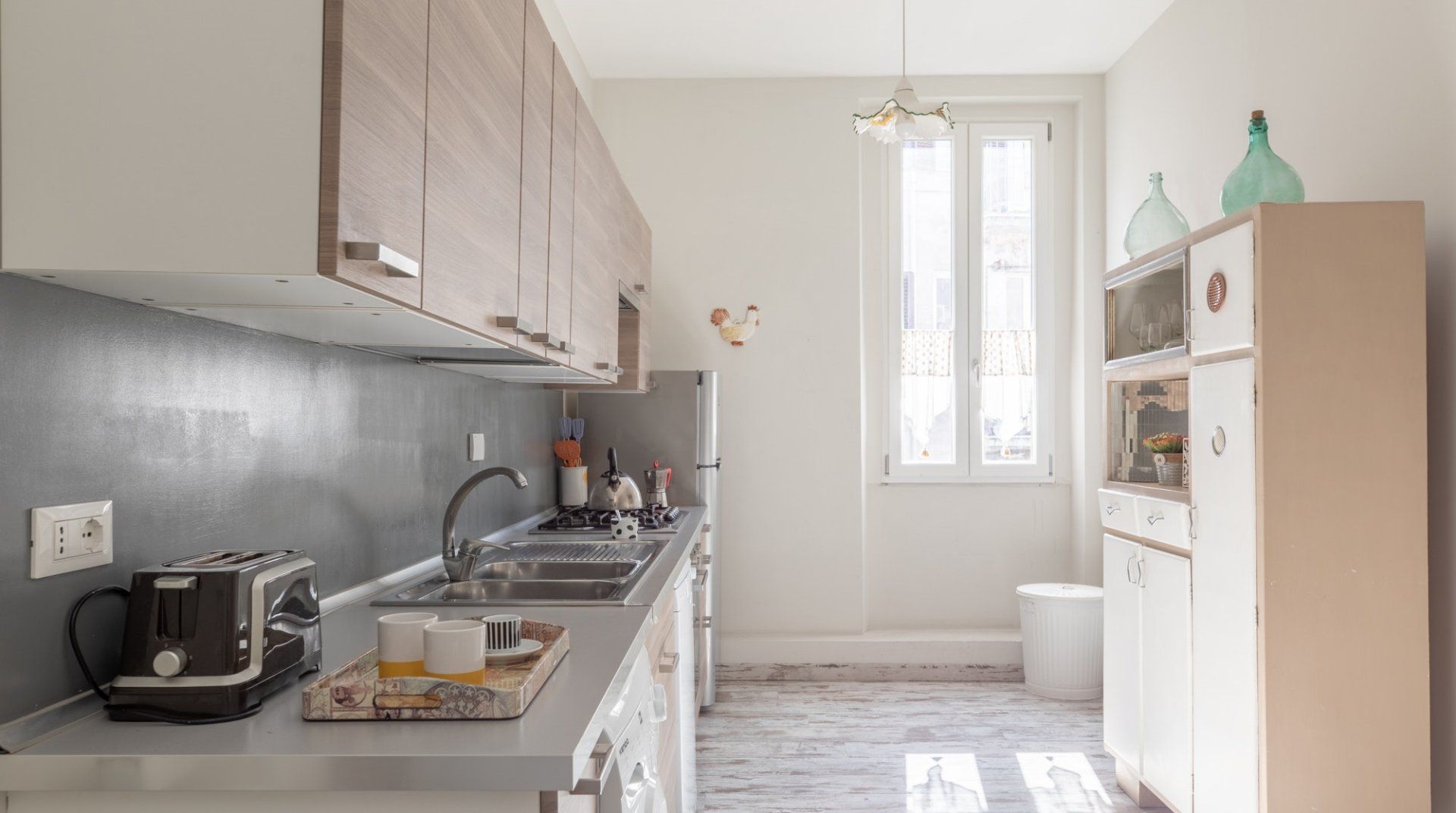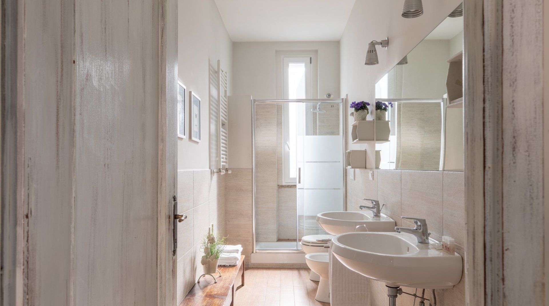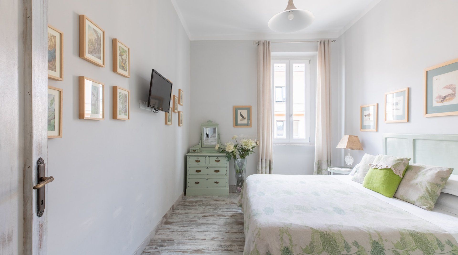 This apartment may be in the heart of Rome, but there’s something distinctly country-chic about the decor. Period pieces – dressers, doors and the kitchen table – are all rough white-washed and feel rustic. The sound system is vintage, and the armchairs in the living room are upholstered in gloriously kitsch floral patterns. The jewel in the crown of the apartment is the sprawling outdoor terrace, which has sofas in sunny spots for a dose of vitamin D, and shaded nooks under parasols for when the heat gets too much. The bamboo pergola covered a couple of outdoor gas hobs, so you can cook and dine alfresco. Flowers and pot plants bloom for every corner and climb trellises for a bit of privacy. If you want to know just how central you are, just head out to the downstairs balcony and spot the Colosseum at the end of your street.
