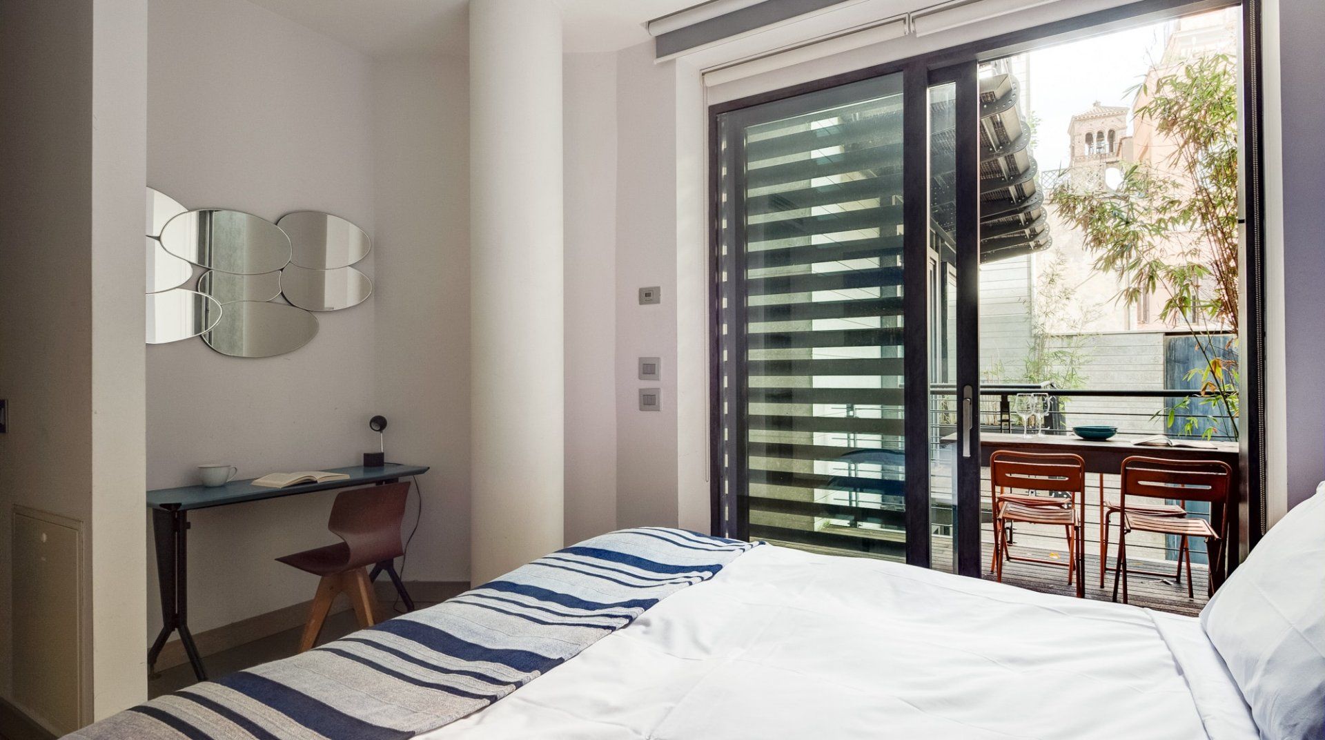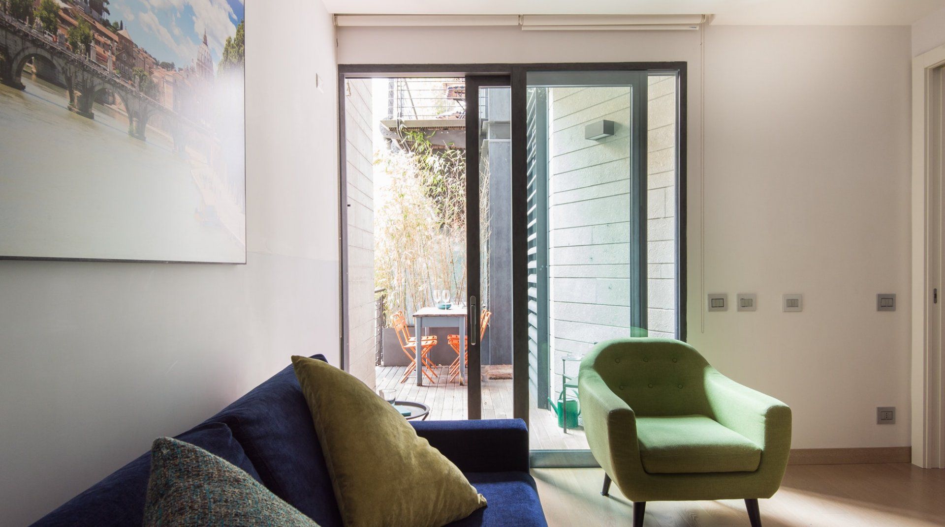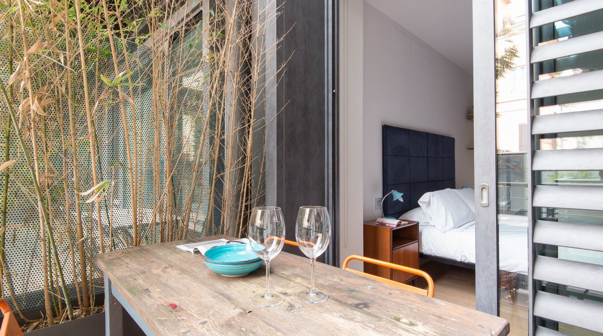 The three things that stand out about Urban Meadow are the location, the building, and the balcony. Beyond these, it’s a very comfortable, but not outstanding, place, but once you factor them in, everything changes. It’s on one of the nicest streets in Monti, and is not only impressive from the street, but also from the building’s courtyard. The steel and glass that dominate contrast well with the exterior façade, and the abundance of plants lifts the spirits of the whole area.