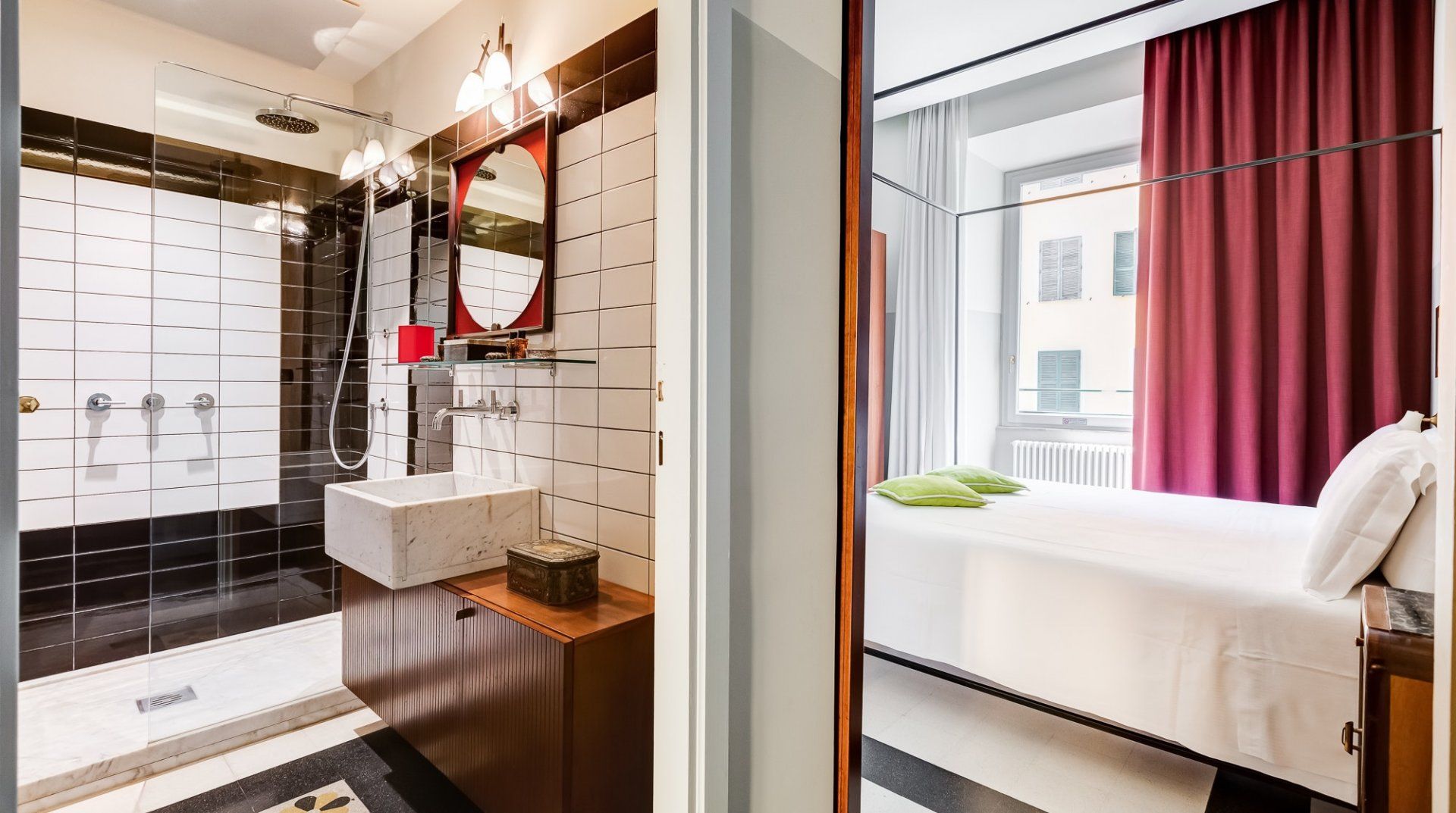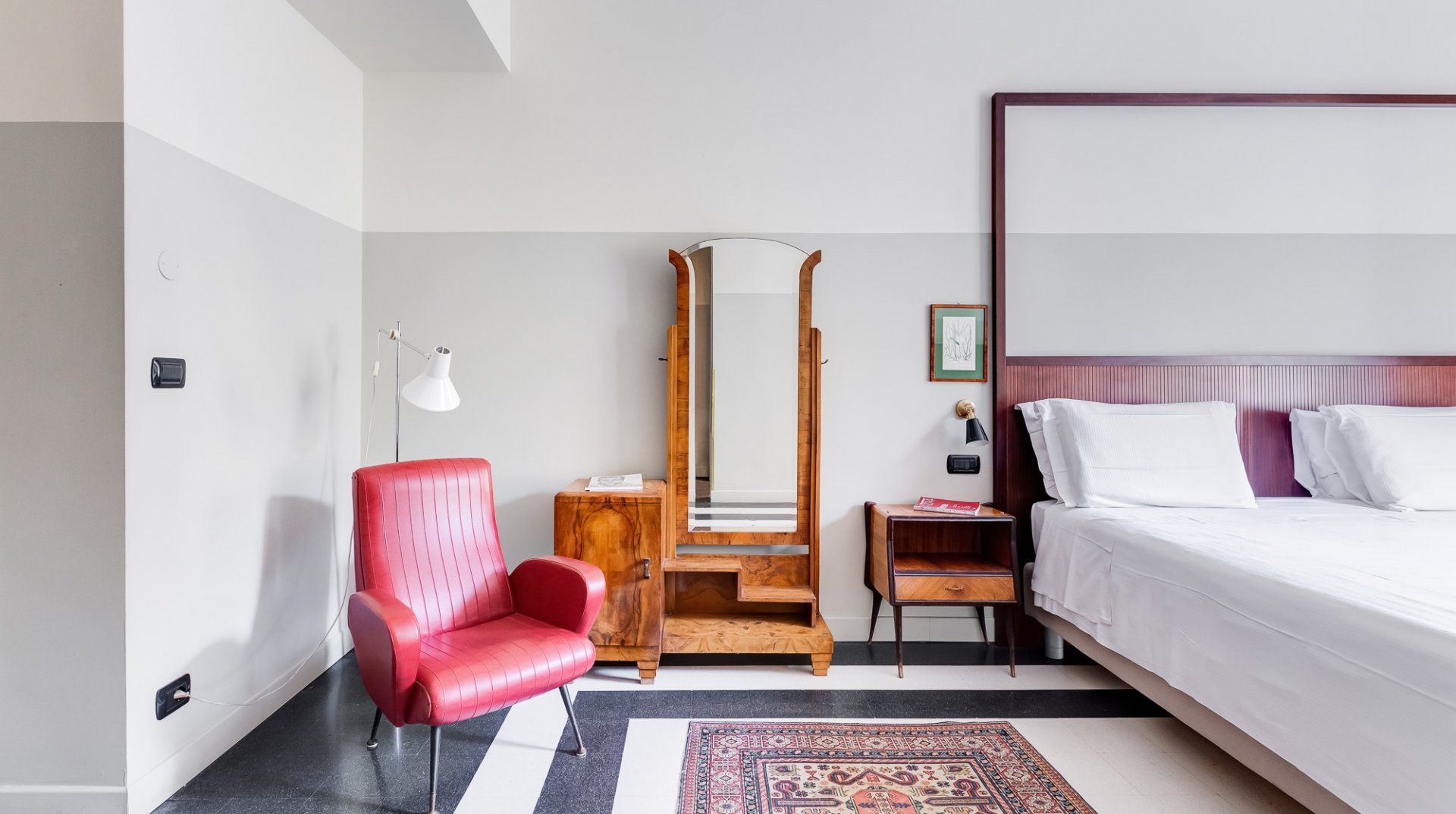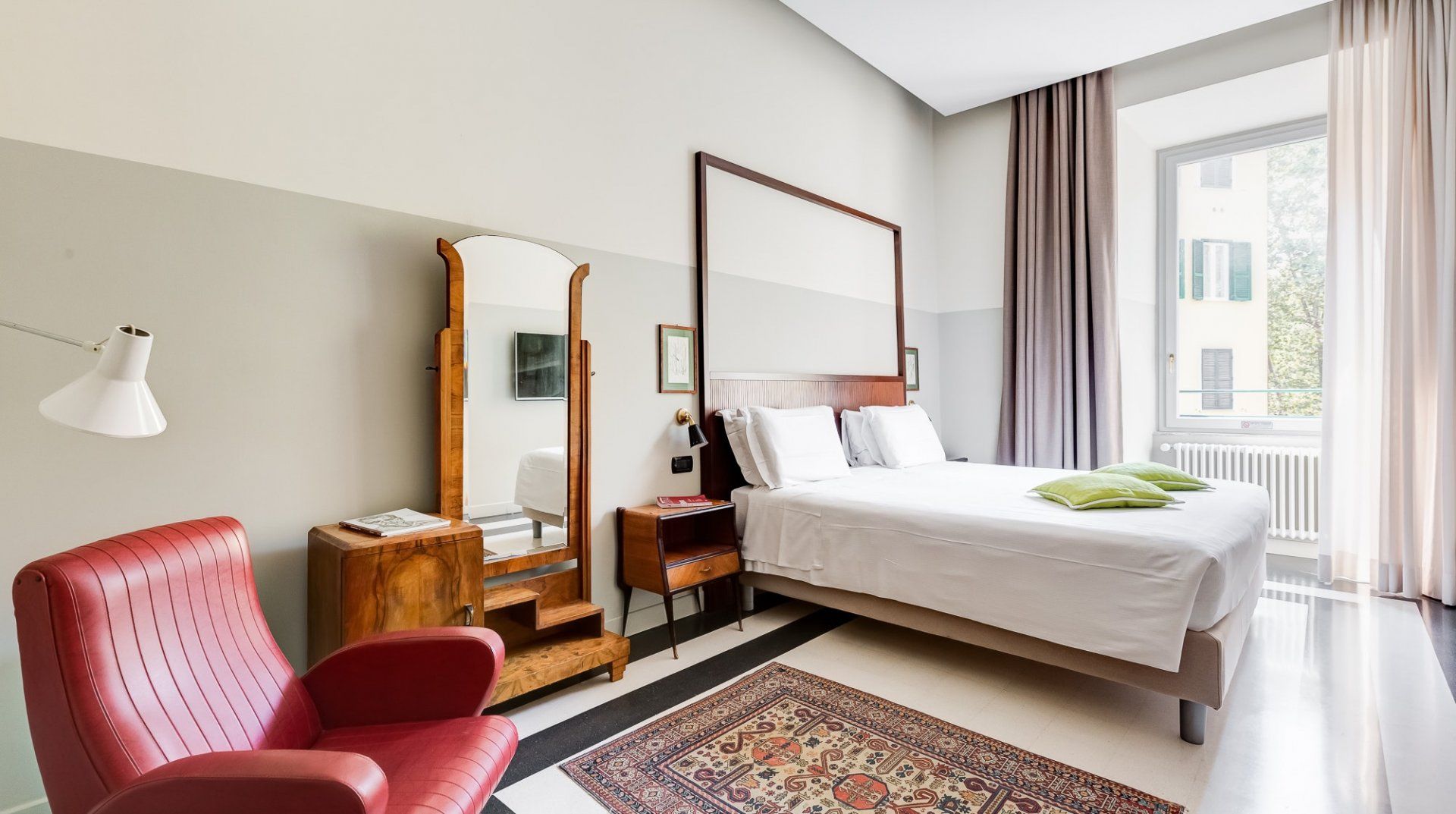 Get a taste for Rome circa 1954 in this old-school apartment. Black and white tile, red leather chairs, mahogany bureaus and vintage prints all play into Vintage Taupe's subtle retro-vintage vibes. Though you might not have panoramic views of the city from here, you'll be primely located in Prati, one of Rome's most fashionable neighbourhoods and modern epicentres.