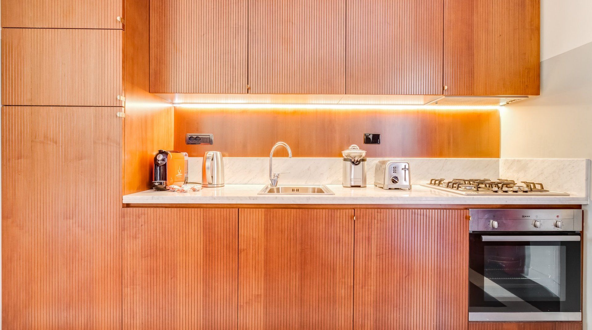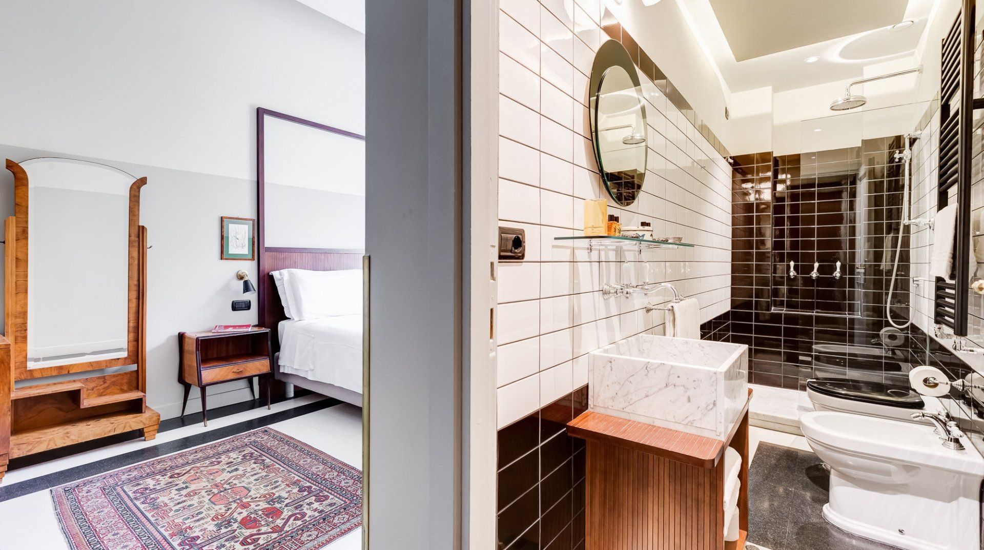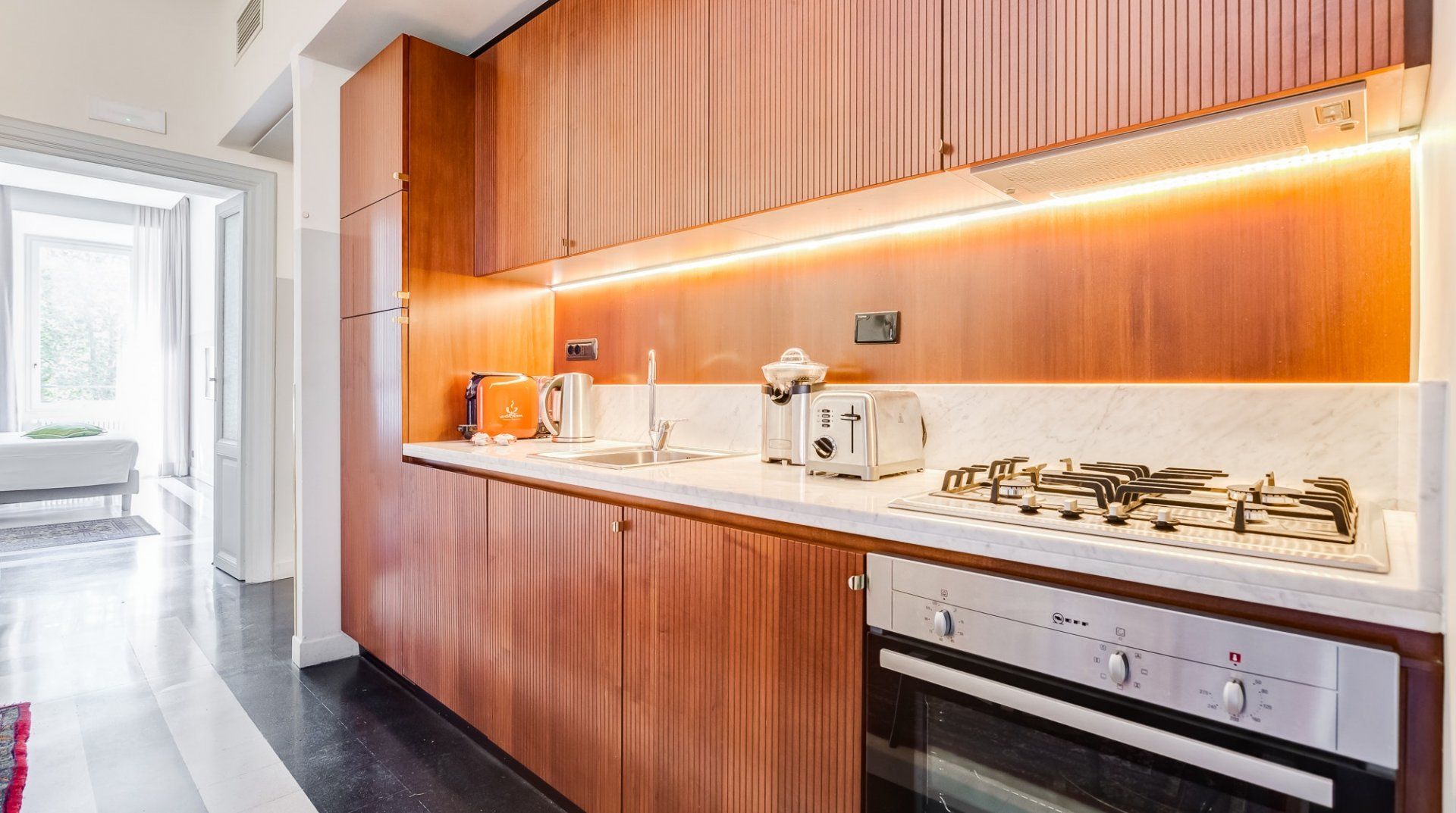Get a taste for Rome circa 1954 in this old-school apartment. Black and white tile, red leather chairs, mahogany bureaus and vintage prints all play into Vintage Taupe's subtle retro-vintage vibes. Though you might not have panoramic views of the city from here, you'll be primely located in Prati, one of Rome's most fashionable neighbourhoods and modern epicentres.