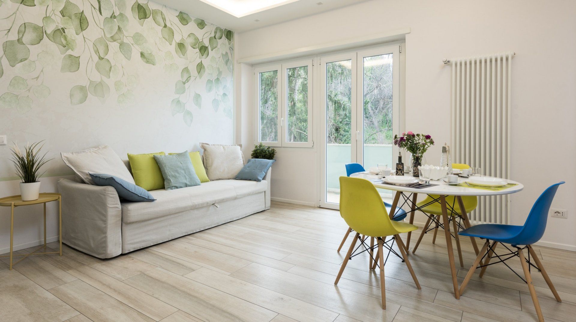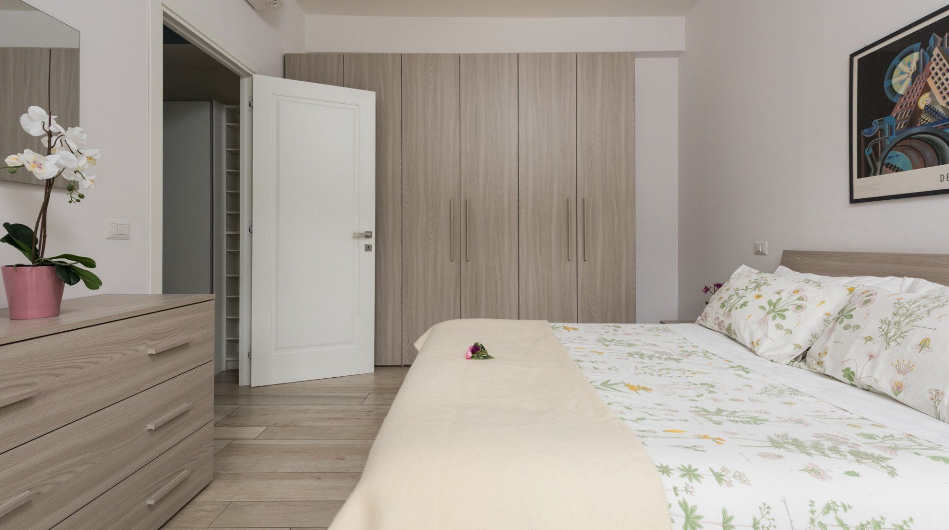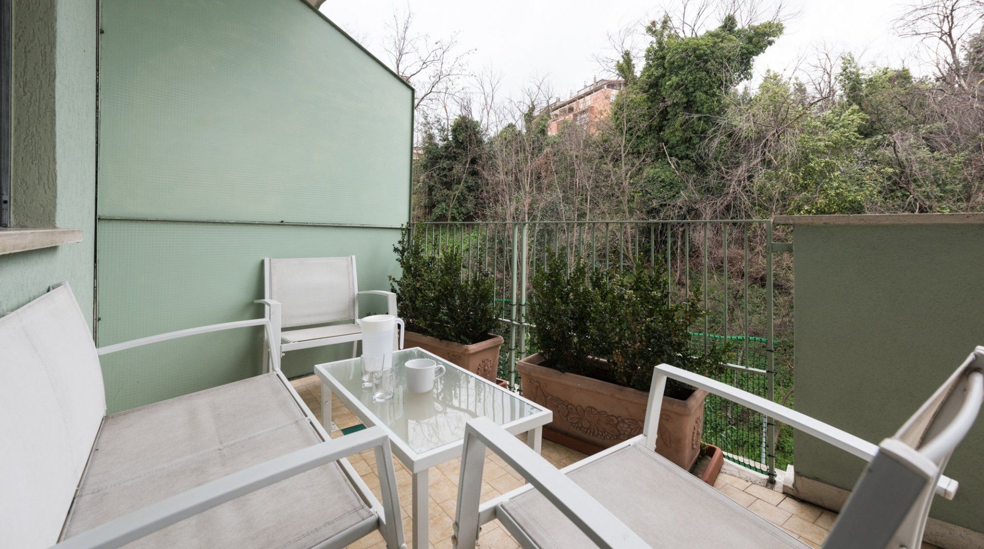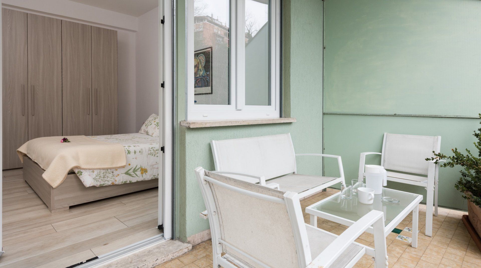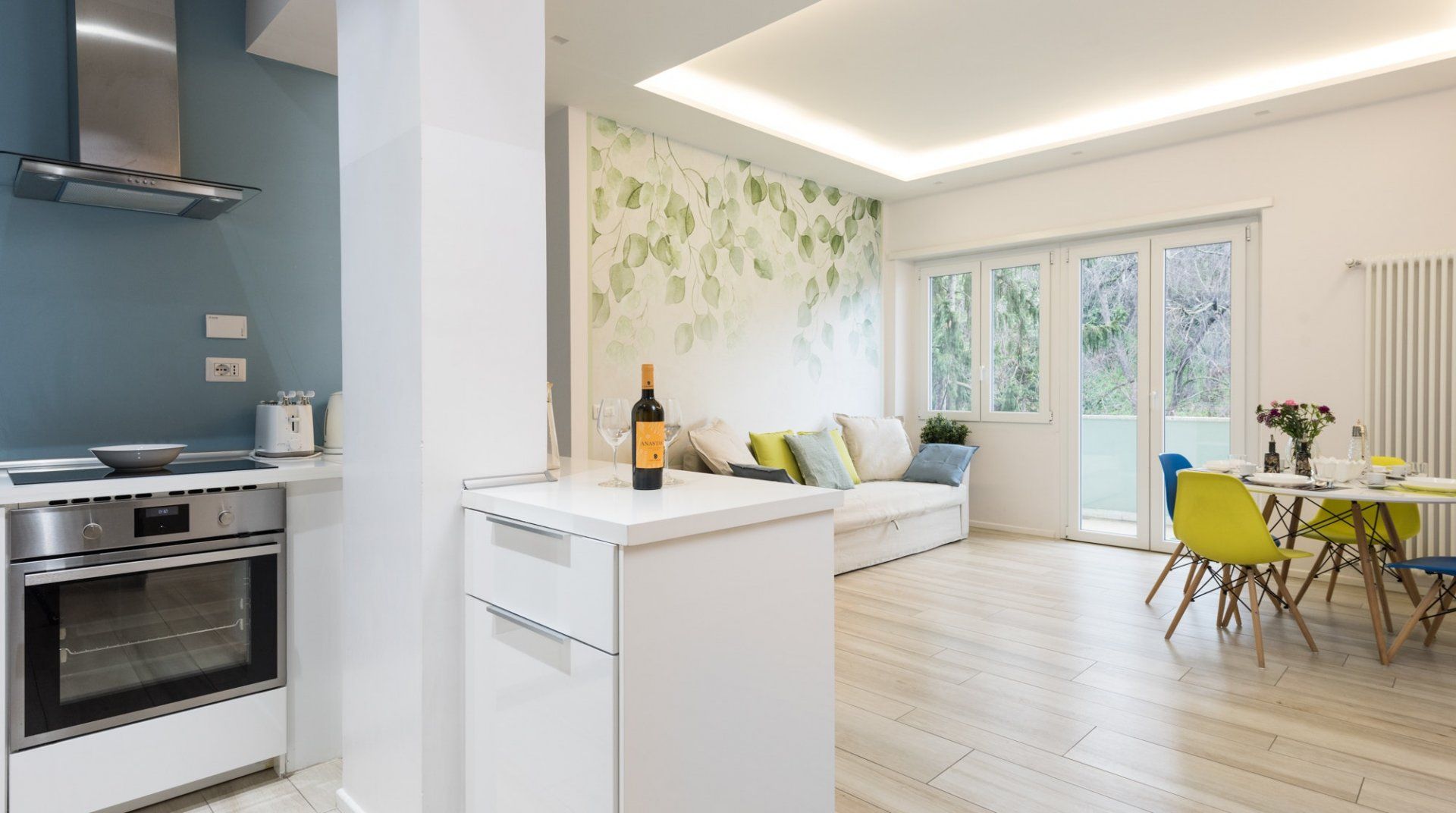The word simple is often used as a putdown, but this apartment in the Rome suburbs is a great example of pared-back design being more than the sum of its parts. The interior is dominated by muted neutrals and light pastel colours, but it feels bright and instantly welcoming. It certainly helps that there's a lot of natural light coming in through the glass doors, which in turn lead out to a long balcony. There's seating out here, as well as a view of the green hillside which is rather peaceful — especially for the Italian capital. The same could be said for the surrounding suburb of Aurelio, which feels a world away from the touristy haunts but is actually quite close when it comes down to it. You can go from your front door to the Pantheon in twenty-five minutes via public transit if you put your mind to it. The sprawling grounds of Villa Doria Pamphilj can be reached in ten minutes on foot, too.