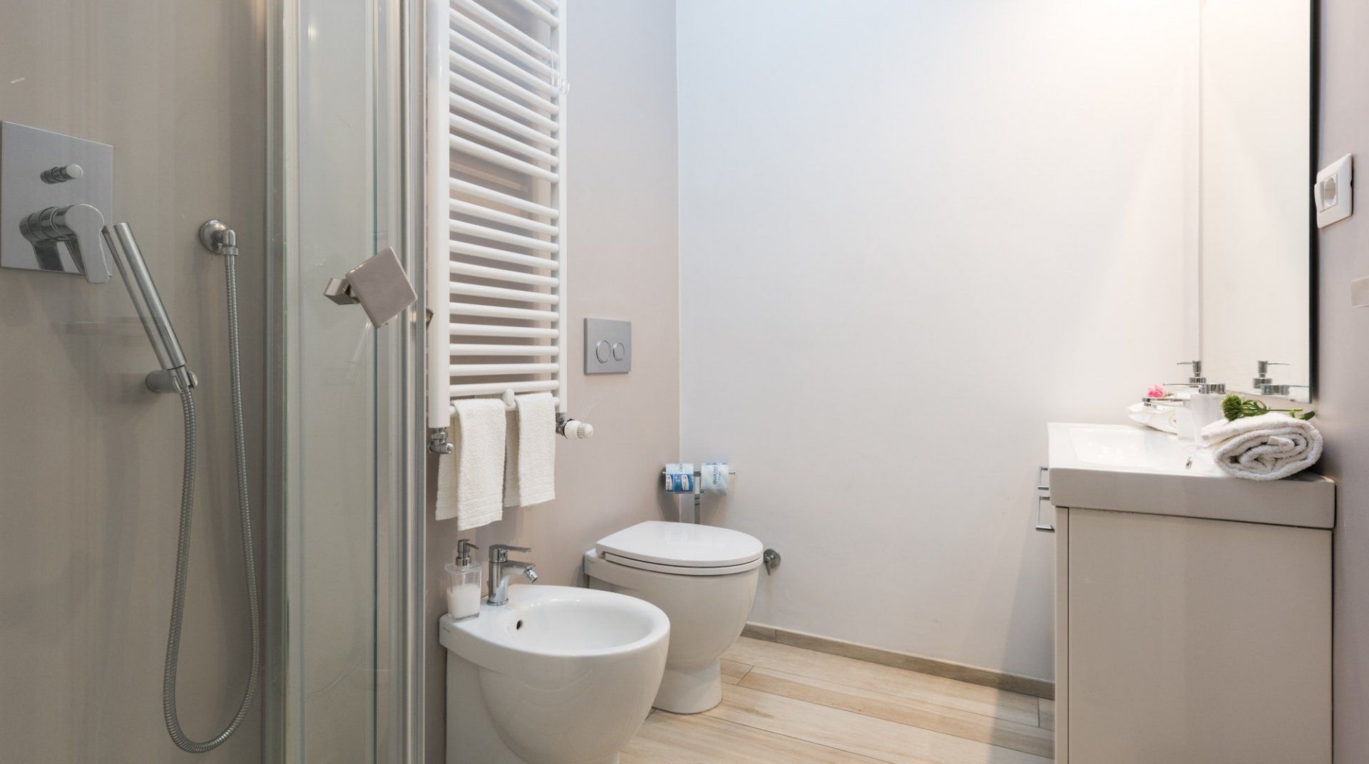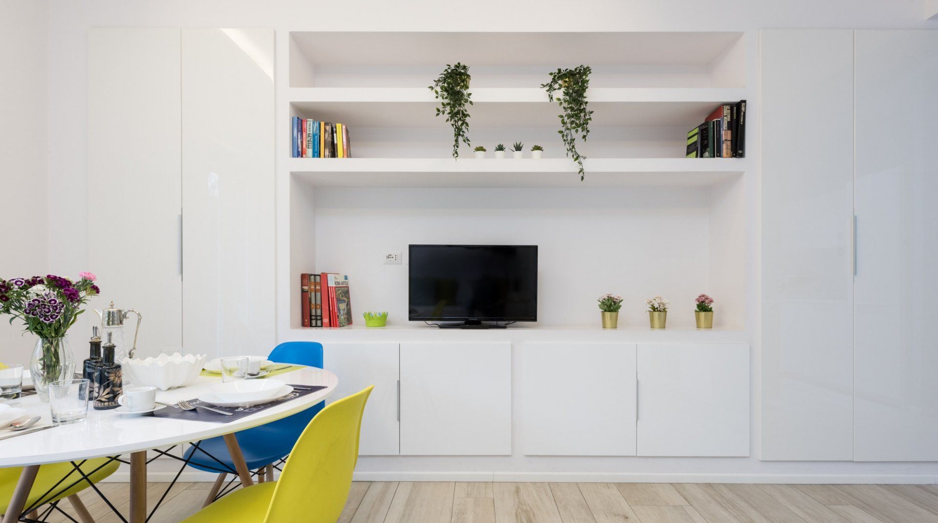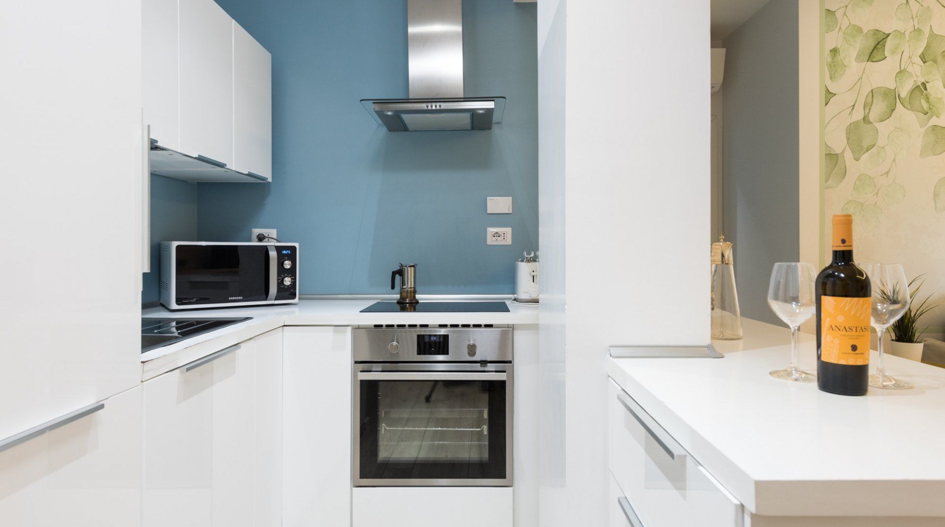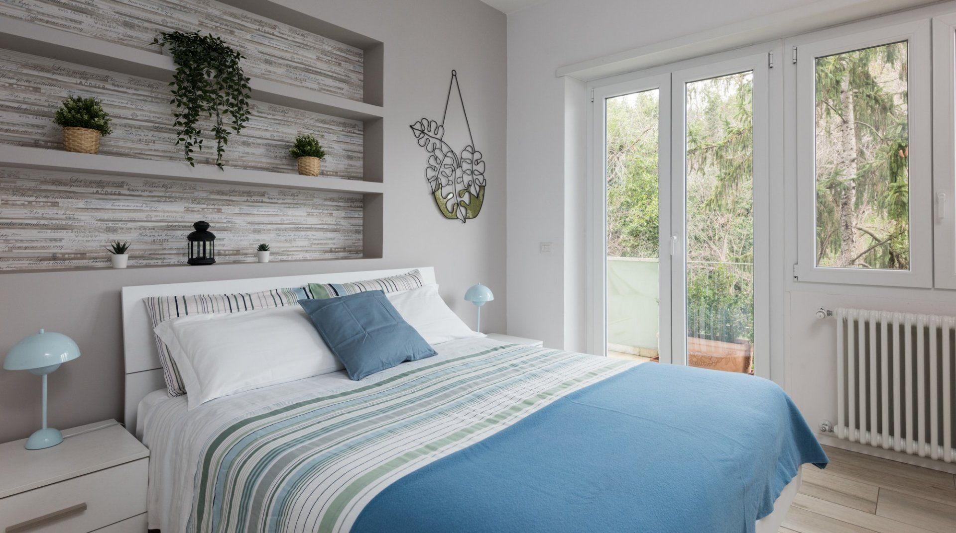 The word simple is often used as a putdown, but this apartment in the Rome suburbs is a great example of pared-back design being more than the sum of its parts. The interior is dominated by muted neutrals and light pastel colours, but it feels bright and instantly welcoming. It certainly helps that there's a lot of natural light coming in through the glass doors, which in turn lead out to a long balcony. There's seating out here, as well as a view of the green hillside which is rather peaceful — especially for the Italian capital. The same could be said for the surrounding suburb of Aurelio, which feels a world away from the touristy haunts but is actually quite close when it comes down to it. You can go from your front door to the Pantheon in twenty-five minutes via public transit if you put your mind to it. The sprawling grounds of Villa Doria Pamphilj can be reached in ten minutes on foot, too.