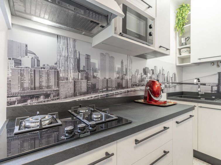 "Alda", 2-room apartment 65 m2 on 4th floor. Bright, renovated in 2022, practical and modern furnishings: living/dining room with 1 double sofabed (160 cm, length 200 cm). Exit to the balcony. 1 double bedroom with TV. Open kitchen (dishwasher, 3 gas rings, toaster, kettle, microwave, electric coffee machine) with TV.