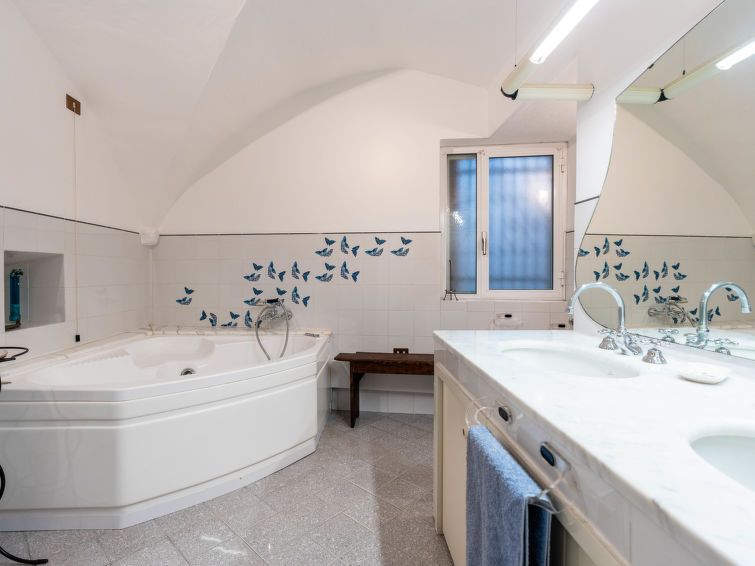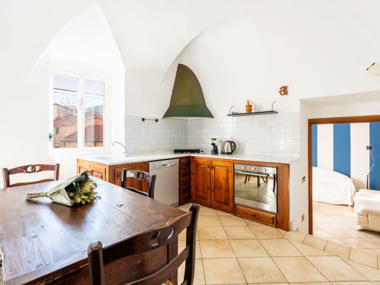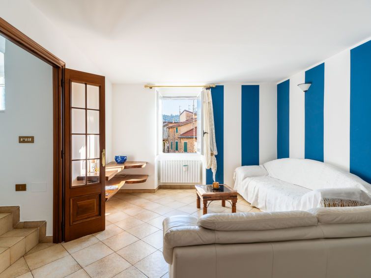"In te l'Aia", 3-room terraced house 100 m2 on 1st floor. Tasteful and cosy furnishings: living/dining room with 1 sofabed (140 cm, length 200 cm). 1 double bedroom. 1 room with 2 beds (90 cm, length 200 cm). Kitchen-/living room (oven, dishwasher, 4 gas rings, toaster, kettle). Exit to the balcony.