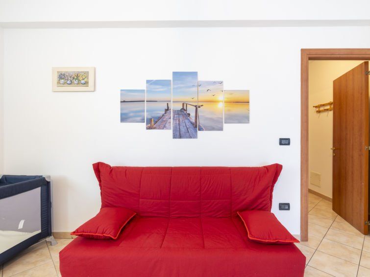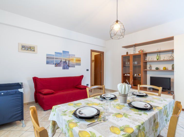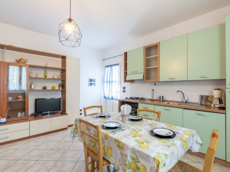 "Ulivo", 2-room apartment 50 m2, on the ground floor. Practical furnishings: living/dining room with 1 double sofabed (140 cm, length 200 cm). Exit to the balcony. 1 room. Kitchenette (dishwasher, 4 gas rings, toaster, kettle, electric coffee machine). Exit to the balcony. Shower/bidet/WC.