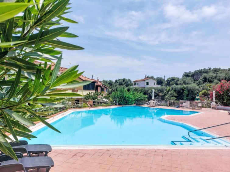 Beautiful apartment for rent. We really had a pleasant stay. The apartment is great, the rooms are quite spacious and have enough storage, as well as adjoining terraces. A large and beautiful terrace at the entrance with a sea view, ideal for meals, relaxation and evenings. The swimming pool is pleasant and really suitable for everyone, has a few deckchairs, chairs and parasols available, as a bonus the presence of a lifeguard. The sea is a 10-15 minute walk away. To recommend without hesitation!