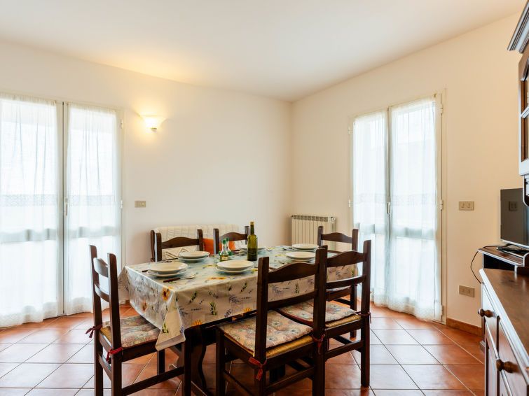 The apartment offers enough space for a family. Rustically furnished. Three balconies. Refrigerator with large freezer compartment. Basic supplies of spices, dishes and other things are there. Covered parking space near the house. A fairly steep stone staircase leads to the apartment. We were there during a hot spell, there is no air conditioning, and no fan. The pool is right next to the house, plenty of loungers and umbrellas, everything is clean. The nice landlord lives right next door.