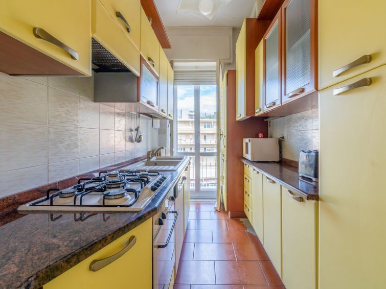 "Near the Sea", 3-room apartment 85 m2 on 4th floor. Bright, tasteful and cosy furnishings: living/dining room with TV. Exit to the balcony. 1 double bedroom. Exit to the balcony. 1 double bedroom. Kitchenette (oven, dishwasher, 4 gas rings, toaster, kettle, microwave, electric coffee machine).