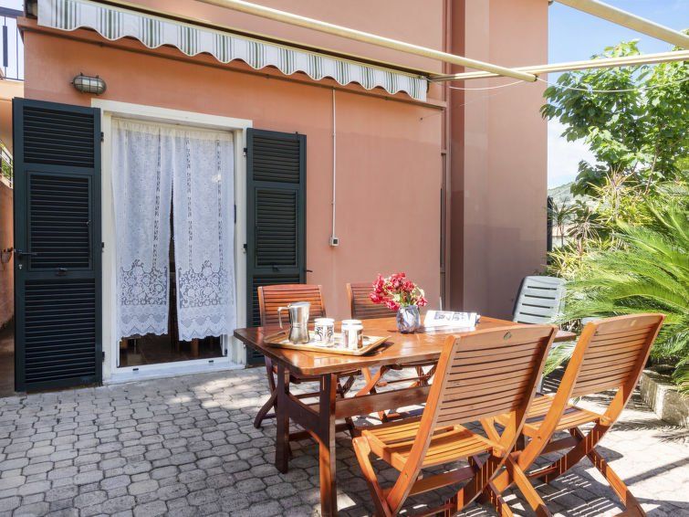 "Degli Aranci (IMP385)", 3-room apartment 60 m2 on 1st floor. Rustic and cosy furnishings: living room with satellite TV, hi-fi system, DVD and heating stove. Exit to the balcony. 1 room with 1 french bed (160 cm). 1 room with 1 x 2 bunk beds (80 cm). Kitchen (oven, 4 gas rings, toaster, microwave, freezer, electric coffee machine) with dining table.