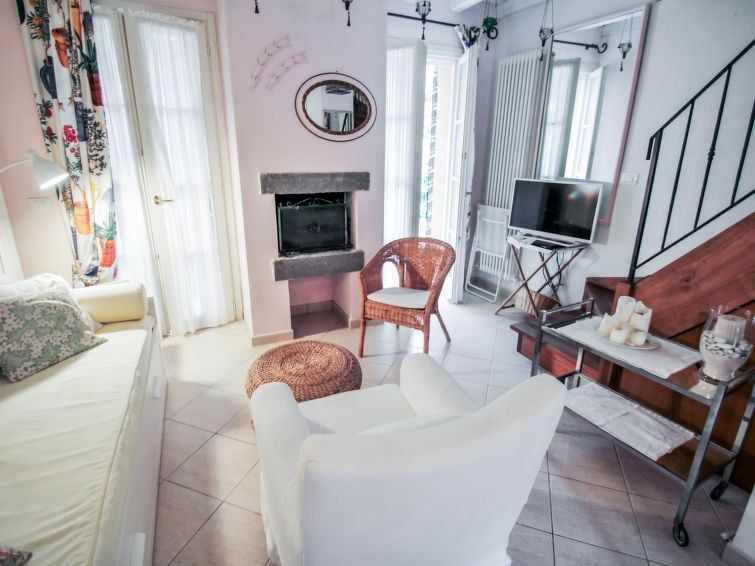 "Carlotta", 3-room terraced house 75 m2 on 2 levels. Practical and comfortable furnishings: living/dining room with TV. Exit to the patio. Kitchenette (4 hot plates, dishwasher, microwave, freezer). Shower. Upper floor: 1 double bedroom. 1 room with 1 bed and 1 double bed (140 cm).