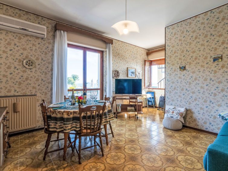 The view is beautiful. Some things in the house are outdated, and the patio furniture is mediocre. It's also outdated. The rooftop terrace could use more amenities, such as furniture and parasols. The beds are also mediocre. The bathroom is functional. Having a washing machine is very helpful. The kitchen light switch was broken.