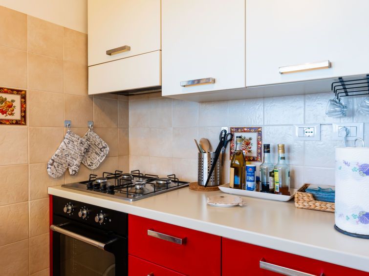 "Terrazza Bella Vista", 3-room apartment 70 m2, on the upper ground floor. Spacious and bright, fully renovated in 2025, tasteful and cosy furnishings: 1 room with 1 double bed (1 x 160 cm, length 200 cm). 1 room with 1 bed (80 cm, length 200 cm), 1 x 2 bunk beds (80 cm, length 200 cm).