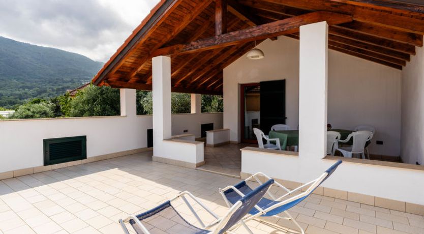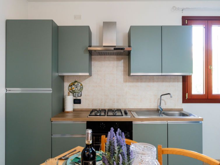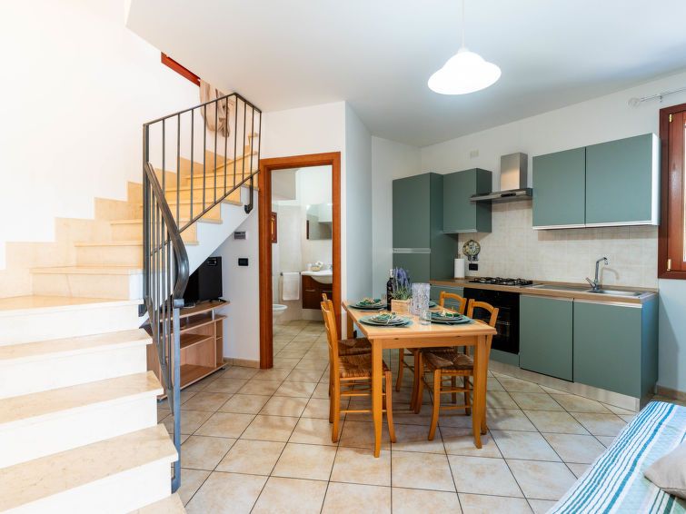 "Rosmarino", 2-room apartment 70 m2 on 2 levels, on the ground floor. Practical and cosy furnishings: living/dining room with 1 double sofabed (140 cm, length 200 cm). Exit to the balcony. Kitchenette (oven, dishwasher, 4 gas rings, toaster, kettle). Shower/bidet/WC. Upper floor: 1 double bedroom with sloping ceilings.