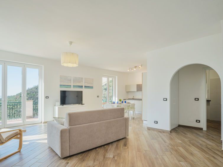A beautifully furnished house with a large balcony and a sensational view. Everything was very clean and well-equipped. The path to the house is very narrow, winding, and steep. It's about a 15-minute walk to the train station and into town. Unfortunately, the tunnels were closed and the roads over the mountain were very narrow, so we traveled a lot by train.