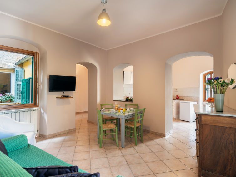 a beautiful large apartment, nice and cool and sparsely furnished. Everything you need. Neighborhood is close but we had our privacy. Italian life is included, Italian volume too. Wonderful mountain village, very old, very lively. Lots of flowers everywhere, natural stone terrace walls everywhere. Narrow, winding driveway.