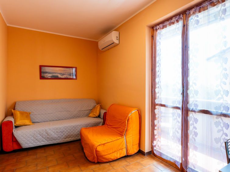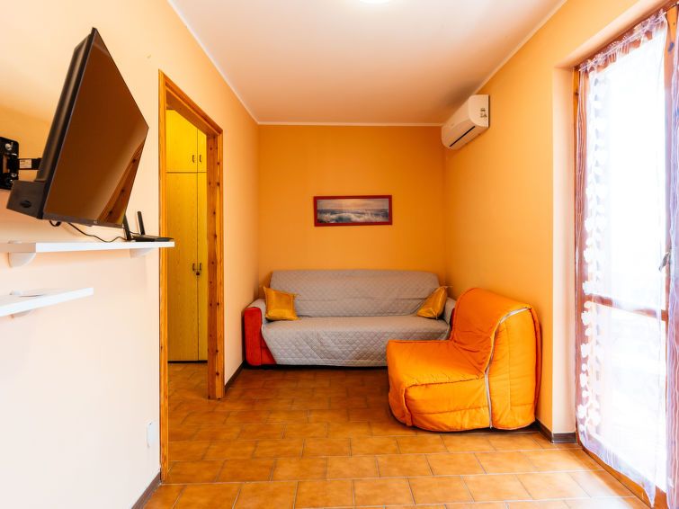 "Casa Anna", 2-room apartment 70 m2, on the ground floor. Practical and cosy furnishings: living/dining room with 1 sofabed (90 cm, length 200 cm), 1 double sofabed (110 cm, length 200 cm), TV. Exit to the garden, to the balcony. 1 double bedroom. Kitchenette (mini-oven, 4 gas rings, toaster, kettle).